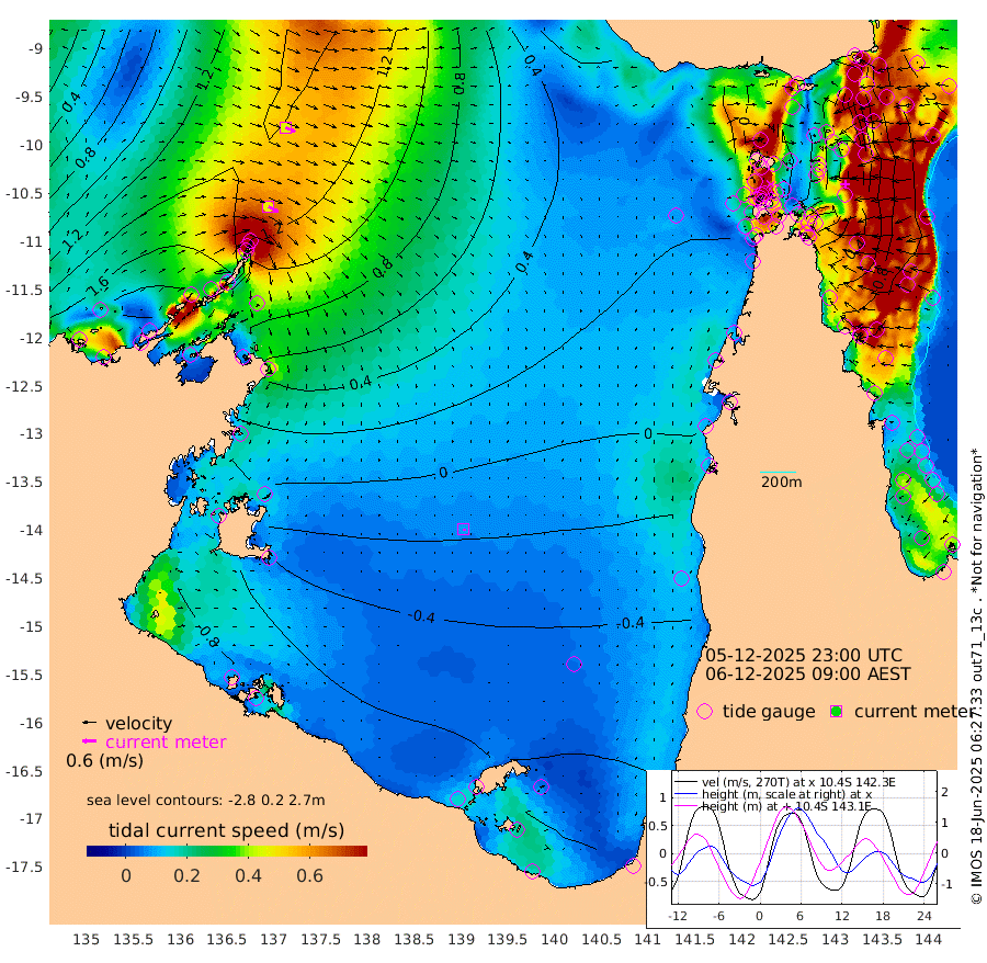 48cm/s 119T +3cm/s rms + 7cm/s -42T. ARA-GOC87 57m 8cm/s 153T +3cm/s rms + 2cm/s -2T. ARA-GOC87 60m 46cm/s 113T +2cm/s rms + 3cm/s 61T. ARA-GOC87 47m 50cm Daru 70cm Bobo Island 97cm Meer Island Barge 100cm Bramble Cay 77cm Unnamed Cay 90cm Pearce Cay 90cm Stephens Island 83cm Merrie England Shoals 52cm Mutacomal Reef 85cm Darnley Island Barge 105cm East Cay 65cm Yorke Island Barge 68cm Rennel Island 63cm Aureed Island 42cm Dungeness Reef -5cm Zagai Island -7cm Yam Island -44cm Dauan Island -50cm Saibai Island -36cm Phipi Reef -15cm Warrior Reef - West -26cm Mabuiag Island Barge 67cm Half Way Island 50cm Coconut Island 51cm Dugong Islet 20cm Poll Island 25cm Kirkcaldie Reef -11cm Suarji Island 6cm Sue Islet 62cm Hawkesbury Island 4cm Alert Patches 8cm Twin Island 47cm Badu Island -12cm St Pauls (Moa Island) 41cm Kubin (Moa Island) 6cm Ince Point 13cm Thursday Island 10cm Nardana Patches 35cm Turtle Head 41cm Round Island 69cm Goods Island 73cm Booby Island 72cm White Rocks Area 53cm Carpentaria 8cm Papou Point 86cm Bampfield Head 61cm Crab Island 64cm Red Wallis Island 51cm Packe Island 54cm Harrington Reef 46cm Herald Camp -26cm Sharp Point 35cm Red Island Point 19cm Possession Island -1cm Alpha Rock 26cm Frederick Point 54cm Wyborn Reef Light 43cm Tetley Island 78cm Triangle Reef 80cm Turtle Head Island 90cm Maclennan Cay 99cm Raine Island 74cm Mcsweeny Reef 76cm Collette Reef 83cm Shadwell Reef 89cm Hannibal Island 106cm Round Point 53cm Vrilya Point 92cm Cape Grenville 98cm Hicks Island 97cm Sir Charles Hardy Island 28cm Harvey Island 103cm Kay Reef 98cm Rocky Island 102cm Chapman Island 97cm Ham Reef 99cm Jubilee Reef 87cm Night Island 100cm Unnamed Reef No. 3 106cm Morris Island 102cm 1st 3 Mile Opening 101cm Creech Reef 98cm Fife Island 129cm Eden Reef 105cm Stanley Island 118cm Normanby River 194cm Yabooma Island 244cm Hutchison River 200cm Elcho Island 181cm North West Crocodile Island 147cm Cape Wessel 180cm Stevens Island 151cm Guluwuru Island 161cm Hopeful Bay 157cm Auster Point 158cm Two Island Bay 214cm Cadell Strait 124cm Mallison Island 126cm Melville Bay (Gove Harbour) 140cm Truant Island 81cm Cape Arnhem 29cm Cape Grey 0cm Hawk Island -58cm Milner Bay (Groote Eylandt) -68cm Cape Beatrice -138cm West Island -136cm Centre Island -133cm Mornington Island -138cm West Wellesley Islands -156cm Bountiful Island -166cm Albert River Mouth -188cm Sweers Island -168cm Karumba -92cm Nassau River Offshore -43cm Christmas Creek 15cm Archer River 27cm Boyd Point 33cm Weipa (Humbug Point) 36cm Pennefather River 36cm Cullen Point