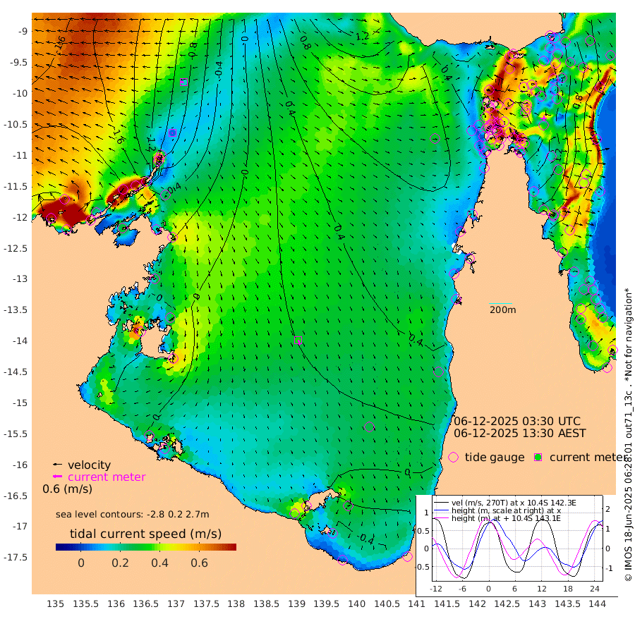 5cm/s -134T +3cm/s rms + 7cm/s -42T. ARA-GOC87 57m 35cm/s 162T +3cm/s rms + 2cm/s -2T. ARA-GOC87 60m 17cm/s -99T +2cm/s rms + 3cm/s 61T. ARA-GOC87 47m 149cm Daru 132cm Bobo Island 60cm Meer Island Barge 79cm Bramble Cay 122cm Unnamed Cay 120cm Pearce Cay 109cm Stephens Island 114cm Merrie England Shoals 145cm Mutacomal Reef 105cm Darnley Island Barge 60cm East Cay 128cm Yorke Island Barge 132cm Rennel Island 133cm Aureed Island 153cm Dungeness Reef 167cm Zagai Island 169cm Yam Island 173cm Dauan Island 164cm Saibai Island 169cm Phipi Reef 179cm Warrior Reef - West 140cm Mabuiag Island Barge 132cm Half Way Island 152cm Coconut Island 151cm Dugong Islet 161cm Poll Island 165cm Kirkcaldie Reef 178cm Suarji Island 164cm Sue Islet 103cm Hawkesbury Island 172cm Alert Patches 171cm Twin Island 113cm Badu Island 180cm St Pauls (Moa Island) 122cm Kubin (Moa Island) 155cm Ince Point 146cm Thursday Island 148cm Nardana Patches 132cm Turtle Head 108cm Round Island 99cm Goods Island 86cm Booby Island 84cm White Rocks Area 83cm Carpentaria 148cm Papou Point 100cm Bampfield Head 72cm Crab Island 90cm Red Wallis Island 117cm Packe Island 160cm Harrington Reef 110cm Herald Camp 57cm Sharp Point 106cm Red Island Point 138cm Possession Island 157cm Alpha Rock 165cm Frederick Point 149cm Wyborn Reef Light 154cm Tetley Island 70cm Triangle Reef 148cm Turtle Head Island 67cm Maclennan Cay 35cm Raine Island 117cm Mcsweeny Reef 104cm Collette Reef 67cm Shadwell Reef 105cm Hannibal Island 80cm Round Point 69cm Vrilya Point 76cm Cape Grenville 68cm Hicks Island 78cm Sir Charles Hardy Island 25cm Harvey Island 56cm Kay Reef 44cm Rocky Island 37cm Chapman Island 37cm Ham Reef 45cm Jubilee Reef 46cm Night Island 39cm Unnamed Reef No. 3 43cm Morris Island 47cm 1st 3 Mile Opening 48cm Creech Reef 44cm Fife Island 35cm Eden Reef 46cm Stanley Island 40cm Normanby River -200cm Yabooma Island -218cm Hutchison River -210cm Elcho Island -208cm North West Crocodile Island -104cm Cape Wessel -171cm Stevens Island -52cm Guluwuru Island -167cm Hopeful Bay -127cm Auster Point -132cm Two Island Bay -156cm Cadell Strait 56cm Mallison Island -64cm Melville Bay (Gove Harbour) -60cm Truant Island -32cm Cape Arnhem -35cm Cape Grey -38cm Hawk Island -51cm Milner Bay (Groote Eylandt) -43cm Cape Beatrice -30cm West Island -28cm Centre Island -17cm Mornington Island -9cm West Wellesley Islands -46cm Bountiful Island -104cm Albert River Mouth -125cm Sweers Island -91cm Karumba 18cm Nassau River Offshore 58cm Christmas Creek 52cm Archer River 68cm Boyd Point 58cm Weipa (Humbug Point) 57cm Pennefather River 69cm Cullen Point