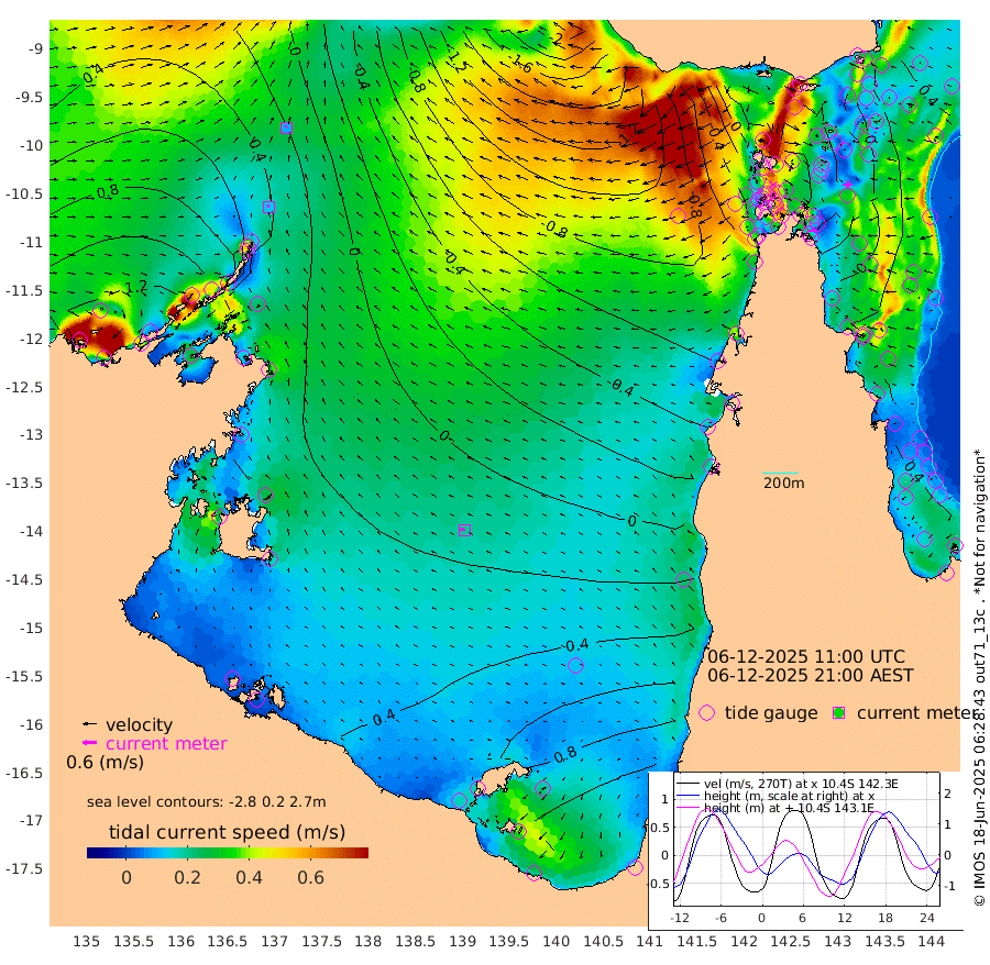 12cm/s -55T +3cm/s rms + 7cm/s -42T. ARA-GOC87 57m 20cm/s -77T +3cm/s rms + 2cm/s -2T. ARA-GOC87 60m 10cm/s -13T +2cm/s rms + 3cm/s 61T. ARA-GOC87 47m -18cm Daru -8cm Bobo Island 19cm Meer Island Barge 21cm Bramble Cay -1cm Unnamed Cay 2cm Pearce Cay 5cm Stephens Island 2cm Merrie England Shoals -16cm Mutacomal Reef 3cm Darnley Island Barge 26cm East Cay -11cm Yorke Island Barge -11cm Rennel Island -9cm Aureed Island -21cm Dungeness Reef -49cm Zagai Island -49cm Yam Island -57cm Dauan Island -65cm Saibai Island -26cm Phipi Reef -41cm Warrior Reef - West -79cm Mabuiag Island Barge -15cm Half Way Island -31cm Coconut Island -26cm Dugong Islet -43cm Poll Island -44cm Kirkcaldie Reef -55cm Suarji Island -55cm Sue Islet -87cm Hawkesbury Island -73cm Alert Patches -70cm Twin Island -80cm Badu Island -78cm St Pauls (Moa Island) -74cm Kubin (Moa Island) -78cm Ince Point -84cm Thursday Island -81cm Nardana Patches -73cm Turtle Head -72cm Round Island -75cm Goods Island -96cm Booby Island -85cm White Rocks Area -130cm Carpentaria -69cm Papou Point -106cm Bampfield Head -87cm Crab Island -93cm Red Wallis Island -71cm Packe Island -33cm Harrington Reef -77cm Herald Camp -25cm Sharp Point -65cm Red Island Point -68cm Possession Island -67cm Alpha Rock -54cm Frederick Point -30cm Wyborn Reef Light -39cm Tetley Island 7cm Triangle Reef -40cm Turtle Head Island 14cm Maclennan Cay 24cm Raine Island -6cm Mcsweeny Reef 1cm Collette Reef 12cm Shadwell Reef 8cm Hannibal Island 20cm Round Point -104cm Vrilya Point 16cm Cape Grenville 21cm Hicks Island 20cm Sir Charles Hardy Island 5cm Harvey Island 24cm Kay Reef 28cm Rocky Island 29cm Chapman Island 22cm Ham Reef 21cm Jubilee Reef 22cm Night Island 22cm Unnamed Reef No. 3 29cm Morris Island 19cm 1st 3 Mile Opening 22cm Creech Reef 26cm Fife Island 42cm Eden Reef 26cm Stanley Island 37cm Normanby River 125cm Yabooma Island 151cm Hutchison River 132cm Elcho Island 133cm North West Crocodile Island 47cm Cape Wessel 100cm Stevens Island 42cm Guluwuru Island 104cm Hopeful Bay 65cm Auster Point 68cm Two Island Bay 106cm Cadell Strait -25cm Mallison Island 51cm Melville Bay (Gove Harbour) 39cm Truant Island 27cm Cape Arnhem 33cm Cape Grey 48cm Hawk Island 46cm Milner Bay (Groote Eylandt) 53cm Cape Beatrice 44cm West Island 42cm Centre Island 114cm Mornington Island 104cm West Wellesley Islands 173cm Bountiful Island 216cm Albert River Mouth 221cm Sweers Island 211cm Karumba 99cm Nassau River Offshore 51cm Christmas Creek -1cm Archer River -38cm Boyd Point -17cm Weipa (Humbug Point) -65cm Pennefather River -77cm Cullen Point