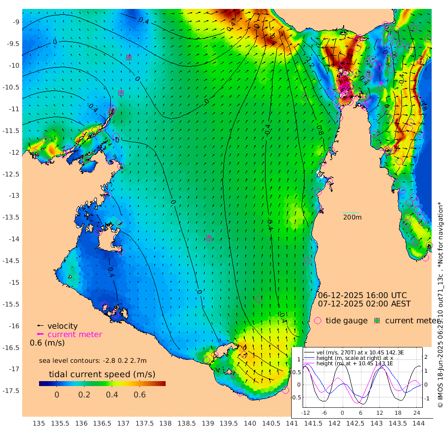 22cm/s 26T +3cm/s rms + 7cm/s -42T. ARA-GOC87 57m 27cm/s 10T +3cm/s rms + 2cm/s -2T. ARA-GOC87 60m 25cm/s 30T +2cm/s rms + 3cm/s 61T. ARA-GOC87 47m -21cm Daru -22cm Bobo Island -61cm Meer Island Barge -56cm Bramble Cay -36cm Unnamed Cay -39cm Pearce Cay -43cm Stephens Island -38cm Merrie England Shoals -22cm Mutacomal Reef -39cm Darnley Island Barge -70cm East Cay -24cm Yorke Island Barge -36cm Rennel Island -25cm Aureed Island -30cm Dungeness Reef -5cm Zagai Island -18cm Yam Island -40cm Dauan Island -22cm Saibai Island -52cm Phipi Reef -19cm Warrior Reef - West -43cm Mabuiag Island Barge -27cm Half Way Island -26cm Coconut Island -23cm Dugong Islet -17cm Poll Island -26cm Kirkcaldie Reef -23cm Suarji Island -5cm Sue Islet -161cm Hawkesbury Island -42cm Alert Patches -33cm Twin Island -144cm Badu Island -23cm St Pauls (Moa Island) -120cm Kubin (Moa Island) -59cm Ince Point -78cm Thursday Island -73cm Nardana Patches -121cm Turtle Head -132cm Round Island -170cm Goods Island -183cm Booby Island -174cm White Rocks Area -126cm Carpentaria -30cm Papou Point -188cm Bampfield Head -155cm Crab Island -171cm Red Wallis Island -148cm Packe Island -19cm Harrington Reef -172cm Herald Camp 11cm Sharp Point -109cm Red Island Point -67cm Possession Island -12cm Alpha Rock -26cm Frederick Point -17cm Wyborn Reef Light -14cm Tetley Island -56cm Triangle Reef -25cm Turtle Head Island -66cm Maclennan Cay -81cm Raine Island -35cm Mcsweeny Reef -41cm Collette Reef -59cm Shadwell Reef -43cm Hannibal Island -62cm Round Point -132cm Vrilya Point -59cm Cape Grenville -66cm Hicks Island -79cm Sir Charles Hardy Island -17cm Harvey Island -71cm Kay Reef -76cm Rocky Island -85cm Chapman Island -78cm Ham Reef -74cm Jubilee Reef -66cm Night Island -81cm Unnamed Reef No. 3 -79cm Morris Island -81cm 1st 3 Mile Opening -78cm Creech Reef -70cm Fife Island -92cm Eden Reef -78cm Stanley Island -78cm Normanby River -75cm Yabooma Island -91cm Hutchison River -69cm Elcho Island -64cm North West Crocodile Island -7cm Cape Wessel -33cm Stevens Island 1cm Guluwuru Island -40cm Hopeful Bay -20cm Auster Point -14cm Two Island Bay -38cm Cadell Strait 74cm Mallison Island 0cm Melville Bay (Gove Harbour) 1cm Truant Island 11cm Cape Arnhem 31cm Cape Grey 38cm Hawk Island 75cm Milner Bay (Groote Eylandt) 65cm Cape Beatrice 99cm West Island 95cm Centre Island 47cm Mornington Island 54cm West Wellesley Islands 35cm Bountiful Island 60cm Albert River Mouth 100cm Sweers Island 45cm Karumba -24cm Nassau River Offshore -75cm Christmas Creek -109cm Archer River -109cm Boyd Point -136cm Weipa (Humbug Point) -95cm Pennefather River -130cm Cullen Point