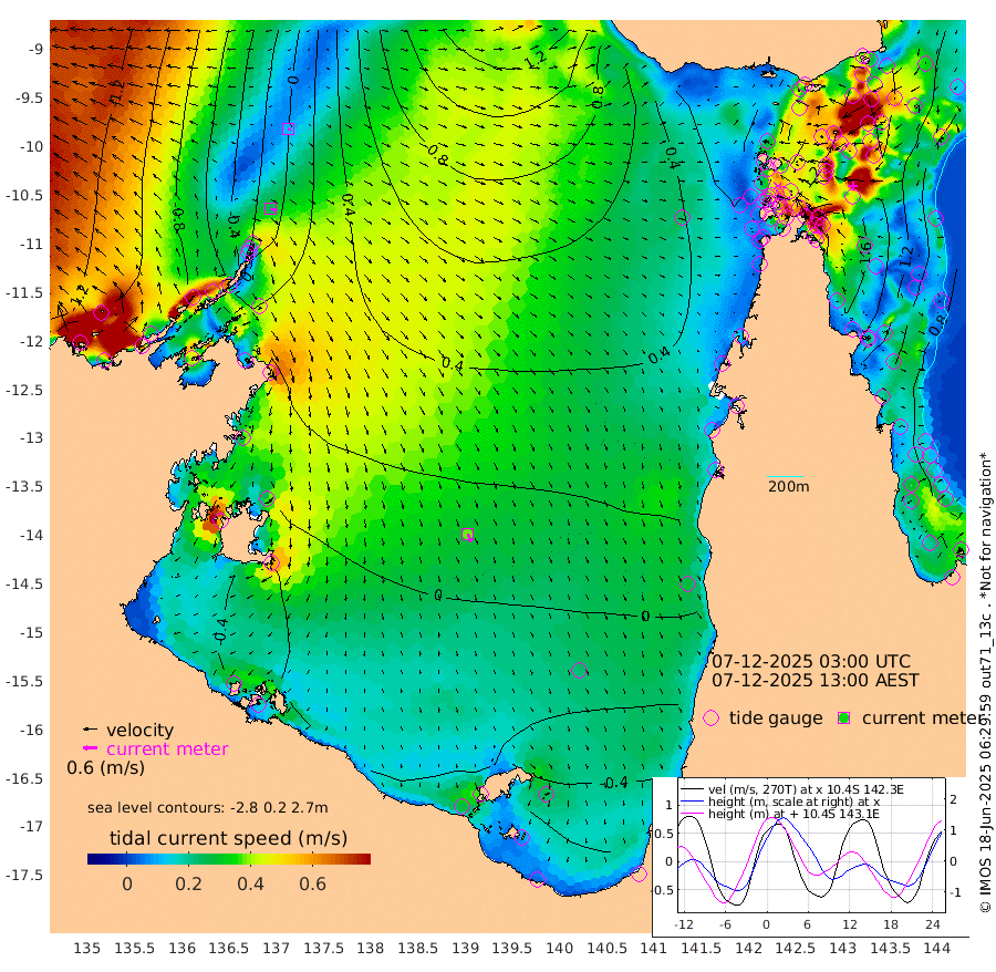 26cm/s 114T +3cm/s rms + 7cm/s -42T. ARA-GOC87 57m 37cm/s 162T +3cm/s rms + 2cm/s -2T. ARA-GOC87 60m 12cm/s 115T +2cm/s rms + 3cm/s 61T. ARA-GOC87 47m 174cm Daru 171cm Bobo Island 108cm Meer Island Barge 130cm Bramble Cay 160cm Unnamed Cay 168cm Pearce Cay 155cm Stephens Island 154cm Merrie England Shoals 170cm Mutacomal Reef 150cm Darnley Island Barge 113cm East Cay 163cm Yorke Island Barge 164cm Rennel Island 167cm Aureed Island 170cm Dungeness Reef 160cm Zagai Island 159cm Yam Island 140cm Dauan Island 131cm Saibai Island 138cm Phipi Reef 169cm Warrior Reef - West 107cm Mabuiag Island Barge 165cm Half Way Island 170cm Coconut Island 175cm Dugong Islet 165cm Poll Island 169cm Kirkcaldie Reef 157cm Suarji Island 163cm Sue Islet 90cm Hawkesbury Island 153cm Alert Patches 158cm Twin Island 93cm Badu Island 157cm St Pauls (Moa Island) 108cm Kubin (Moa Island) 133cm Ince Point 122cm Thursday Island 124cm Nardana Patches 111cm Turtle Head 87cm Round Island 85cm Goods Island 66cm Booby Island 67cm White Rocks Area 57cm Carpentaria 136cm Papou Point 79cm Bampfield Head 52cm Crab Island 71cm Red Wallis Island 101cm Packe Island 183cm Harrington Reef 85cm Herald Camp 41cm Sharp Point 93cm Red Island Point 120cm Possession Island 145cm Alpha Rock 167cm Frederick Point 172cm Wyborn Reef Light 172cm Tetley Island 107cm Triangle Reef 183cm Turtle Head Island 109cm Maclennan Cay 80cm Raine Island 153cm Mcsweeny Reef 141cm Collette Reef 105cm Shadwell Reef 150cm Hannibal Island 132cm Round Point 48cm Vrilya Point 120cm Cape Grenville 116cm Hicks Island 125cm Sir Charles Hardy Island 39cm Harvey Island 104cm Kay Reef 91cm Rocky Island 85cm Chapman Island 83cm Ham Reef 91cm Jubilee Reef 87cm Night Island 85cm Unnamed Reef No. 3 93cm Morris Island 90cm 1st 3 Mile Opening 94cm Creech Reef 94cm Fife Island 98cm Eden Reef 95cm Stanley Island 100cm Normanby River -83cm Yabooma Island -75cm Hutchison River -92cm Elcho Island -97cm North West Crocodile Island -7cm Cape Wessel -57cm Stevens Island 51cm Guluwuru Island -65cm Hopeful Bay -28cm Auster Point -27cm Two Island Bay -13cm Cadell Strait 169cm Mallison Island 23cm Melville Bay (Gove Harbour) 33cm Truant Island 26cm Cape Arnhem -5cm Cape Grey -23cm Hawk Island -67cm Milner Bay (Groote Eylandt) -65cm Cape Beatrice -88cm West Island -89cm Centre Island -70cm Mornington Island -63cm West Wellesley Islands -101cm Bountiful Island -161cm Albert River Mouth -187cm Sweers Island -151cm Karumba -22cm Nassau River Offshore 29cm Christmas Creek 36cm Archer River 54cm Boyd Point 44cm Weipa (Humbug Point) 40cm Pennefather River 46cm Cullen Point