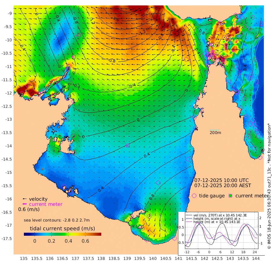39cm/s -87T +3cm/s rms + 7cm/s -42T. ARA-GOC87 57m 19cm/s -106T +3cm/s rms + 2cm/s -2T. ARA-GOC87 60m 35cm/s -93T +2cm/s rms + 3cm/s 61T. ARA-GOC87 47m -63cm Daru -68cm Bobo Island -29cm Meer Island Barge -37cm Bramble Cay -56cm Unnamed Cay -60cm Pearce Cay -55cm Stephens Island -54cm Merrie England Shoals -61cm Mutacomal Reef -55cm Darnley Island Barge -25cm East Cay -65cm Yorke Island Barge -57cm Rennel Island -63cm Aureed Island -52cm Dungeness Reef -57cm Zagai Island -47cm Yam Island -11cm Dauan Island -25cm Saibai Island 12cm Phipi Reef -41cm Warrior Reef - West -21cm Mabuiag Island Barge -63cm Half Way Island -64cm Coconut Island -66cm Dugong Islet -59cm Poll Island -56cm Kirkcaldie Reef -43cm Suarji Island -67cm Sue Islet 18cm Hawkesbury Island -43cm Alert Patches -52cm Twin Island 21cm Badu Island -52cm St Pauls (Moa Island) 2cm Kubin (Moa Island) -29cm Ince Point -19cm Thursday Island -20cm Nardana Patches 8cm Turtle Head 14cm Round Island 31cm Goods Island 33cm Booby Island 31cm White Rocks Area -14cm Carpentaria -48cm Papou Point 12cm Bampfield Head 29cm Crab Island 29cm Red Wallis Island 23cm Packe Island -76cm Harrington Reef 35cm Herald Camp -16cm Sharp Point 8cm Red Island Point -26cm Possession Island -59cm Alpha Rock -62cm Frederick Point -74cm Wyborn Reef Light -75cm Tetley Island -27cm Triangle Reef -88cm Turtle Head Island -24cm Maclennan Cay -6cm Raine Island -57cm Mcsweeny Reef -47cm Collette Reef -24cm Shadwell Reef -50cm Hannibal Island -37cm Round Point 11cm Vrilya Point -31cm Cape Grenville -27cm Hicks Island -23cm Sir Charles Hardy Island -11cm Harvey Island -21cm Kay Reef -10cm Rocky Island -5cm Chapman Island -11cm Ham Reef -16cm Jubilee Reef -13cm Night Island -9cm Unnamed Reef No. 3 -12cm Morris Island -12cm 1st 3 Mile Opening -14cm Creech Reef -17cm Fife Island -10cm Eden Reef -15cm Stanley Island -18cm Normanby River 25cm Yabooma Island 23cm Hutchison River 28cm Elcho Island 36cm North West Crocodile Island -58cm Cape Wessel -14cm Stevens Island -81cm Guluwuru Island 4cm Hopeful Bay -38cm Auster Point -42cm Two Island Bay -36cm Cadell Strait -184cm Mallison Island -55cm Melville Bay (Gove Harbour) -72cm Truant Island -49cm Cape Arnhem -24cm Cape Grey 0cm Hawk Island 16cm Milner Bay (Groote Eylandt) 33cm Cape Beatrice 49cm West Island 50cm Centre Island 115cm Mornington Island 105cm West Wellesley Islands 168cm Bountiful Island 200cm Albert River Mouth 189cm Sweers Island 206cm Karumba 126cm Nassau River Offshore 98cm Christmas Creek 66cm Archer River 34cm Boyd Point 63cm Weipa (Humbug Point) 16cm Pennefather River 27cm Cullen Point