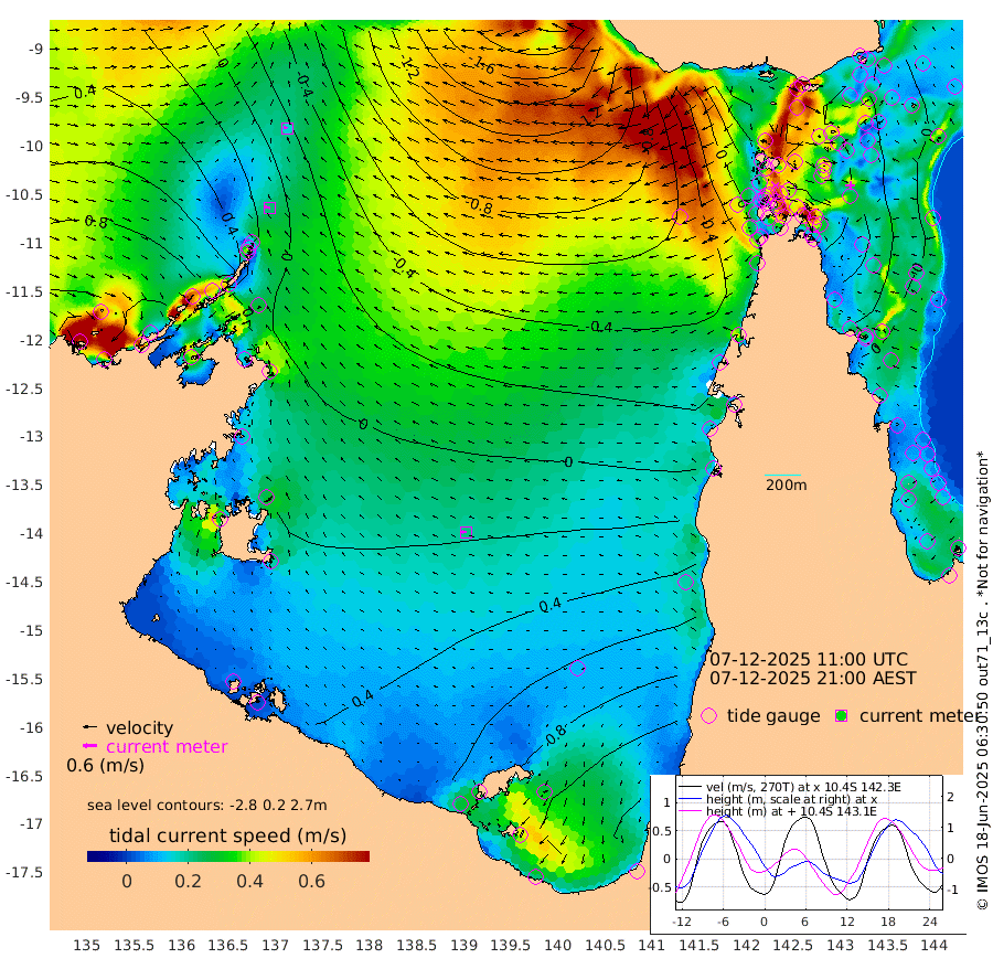 22cm/s -81T +3cm/s rms + 7cm/s -42T. ARA-GOC87 57m 21cm/s -88T +3cm/s rms + 2cm/s -2T. ARA-GOC87 60m 16cm/s -76T +2cm/s rms + 3cm/s 61T. ARA-GOC87 47m -45cm Daru -42cm Bobo Island -8cm Meer Island Barge -11cm Bramble Cay -33cm Unnamed Cay -31cm Pearce Cay -30cm Stephens Island -30cm Merrie England Shoals -43cm Mutacomal Reef -31cm Darnley Island Barge -4cm East Cay -43cm Yorke Island Barge -39cm Rennel Island -39cm Aureed Island -40cm Dungeness Reef -56cm Zagai Island -53cm Yam Island -35cm Dauan Island -48cm Saibai Island -6cm Phipi Reef -43cm Warrior Reef - West -54cm Mabuiag Island Barge -44cm Half Way Island -51cm Coconut Island -52cm Dugong Islet -55cm Poll Island -56cm Kirkcaldie Reef -53cm Suarji Island -66cm Sue Islet -41cm Hawkesbury Island -63cm Alert Patches -66cm Twin Island -32cm Badu Island -70cm St Pauls (Moa Island) -42cm Kubin (Moa Island) -58cm Ince Point -57cm Thursday Island -56cm Nardana Patches -37cm Turtle Head -36cm Round Island -27cm Goods Island -38cm Booby Island -32cm White Rocks Area -83cm Carpentaria -64cm Papou Point -58cm Bampfield Head -35cm Crab Island -38cm Red Wallis Island -29cm Packe Island -61cm Harrington Reef -32cm Herald Camp -22cm Sharp Point -34cm Red Island Point -53cm Possession Island -68cm Alpha Rock -64cm Frederick Point -57cm Wyborn Reef Light -62cm Tetley Island -12cm Triangle Reef -70cm Turtle Head Island -10cm Maclennan Cay 6cm Raine Island -36cm Mcsweeny Reef -27cm Collette Reef -9cm Shadwell Reef -25cm Hannibal Island -12cm Round Point -53cm Vrilya Point -12cm Cape Grenville -8cm Hicks Island -7cm Sir Charles Hardy Island -5cm Harvey Island -3cm Kay Reef 6cm Rocky Island 10cm Chapman Island 2cm Ham Reef -1cm Jubilee Reef 1cm Night Island 3cm Unnamed Reef No. 3 5cm Morris Island 0cm 1st 3 Mile Opening 0cm Creech Reef 0cm Fife Island 13cm Eden Reef 1cm Stanley Island 5cm Normanby River 91cm Yabooma Island 108cm Hutchison River 99cm Elcho Island 102cm North West Crocodile Island 3cm Cape Wessel 59cm Stevens Island -11cm Guluwuru Island 68cm Hopeful Bay 24cm Auster Point 22cm Two Island Bay 52cm Cadell Strait -101cm Mallison Island 7cm Melville Bay (Gove Harbour) -9cm Truant Island -6cm Cape Arnhem 9cm Cape Grey 30cm Hawk Island 35cm Milner Bay (Groote Eylandt) 48cm Cape Beatrice 47cm West Island 48cm Centre Island 122cm Mornington Island 111cm West Wellesley Islands 180cm Bountiful Island 228cm Albert River Mouth 224cm Sweers Island 224cm Karumba 118cm Nassau River Offshore 76cm Christmas Creek 32cm Archer River -6cm Boyd Point 20cm Weipa (Humbug Point) -28cm Pennefather River -31cm Cullen Point