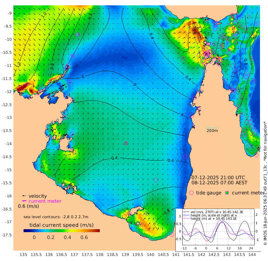 7cm/s 168T +3cm/s rms + 7cm/s -42T. ARA-GOC87 57m 30cm/s 13T +3cm/s rms + 2cm/s -2T. ARA-GOC87 60m 16cm/s 147T +2cm/s rms + 3cm/s 61T. ARA-GOC87 47m -126cm Daru -121cm Bobo Island -70cm Meer Island Barge -90cm Bramble Cay -110cm Unnamed Cay -119cm Pearce Cay -107cm Stephens Island -105cm Merrie England Shoals -119cm Mutacomal Reef -104cm Darnley Island Barge -74cm East Cay -114cm Yorke Island Barge -111cm Rennel Island -121cm Aureed Island -122cm Dungeness Reef -111cm Zagai Island -107cm Yam Island -105cm Dauan Island -90cm Saibai Island -122cm Phipi Reef -132cm Warrior Reef - West -38cm Mabuiag Island Barge -111cm Half Way Island -110cm Coconut Island -118cm Dugong Islet -109cm Poll Island -108cm Kirkcaldie Reef -102cm Suarji Island -103cm Sue Islet 42cm Hawkesbury Island -74cm Alert Patches -81cm Twin Island 18cm Badu Island -84cm St Pauls (Moa Island) -2cm Kubin (Moa Island) -49cm Ince Point -28cm Thursday Island -34cm Nardana Patches -14cm Turtle Head 24cm Round Island 35cm Goods Island 75cm Booby Island 65cm White Rocks Area 98cm Carpentaria -60cm Papou Point 90cm Bampfield Head 68cm Crab Island 62cm Red Wallis Island 6cm Packe Island -117cm Harrington Reef 38cm Herald Camp -30cm Sharp Point -1cm Red Island Point -32cm Possession Island -75cm Alpha Rock -96cm Frederick Point -108cm Wyborn Reef Light -105cm Tetley Island -68cm Triangle Reef -99cm Turtle Head Island -68cm Maclennan Cay -45cm Raine Island -104cm Mcsweeny Reef -96cm Collette Reef -68cm Shadwell Reef -104cm Hannibal Island -88cm Round Point 77cm Vrilya Point -79cm Cape Grenville -76cm Hicks Island -82cm Sir Charles Hardy Island -26cm Harvey Island -64cm Kay Reef -58cm Rocky Island -52cm Chapman Island -46cm Ham Reef -54cm Jubilee Reef -57cm Night Island -48cm Unnamed Reef No. 3 -57cm Morris Island -49cm 1st 3 Mile Opening -56cm Creech Reef -65cm Fife Island -63cm Eden Reef -57cm Stanley Island -64cm Normanby River 93cm Yabooma Island 88cm Hutchison River 95cm Elcho Island 91cm North West Crocodile Island 47cm Cape Wessel 72cm Stevens Island -10cm Guluwuru Island 69cm Hopeful Bay 60cm Auster Point 58cm Two Island Bay 33cm Cadell Strait -113cm Mallison Island -2cm Melville Bay (Gove Harbour) 4cm Truant Island -10cm Cape Arnhem -10cm Cape Grey -20cm Hawk Island -6cm Milner Bay (Groote Eylandt) -20cm Cape Beatrice -27cm West Island -22cm Centre Island -105cm Mornington Island -107cm West Wellesley Islands -127cm Bountiful Island -121cm Albert River Mouth -112cm Sweers Island -124cm Karumba -116cm Nassau River Offshore -95cm Christmas Creek -25cm Archer River -1cm Boyd Point -3cm Weipa (Humbug Point) 33cm Pennefather River 51cm Cullen Point