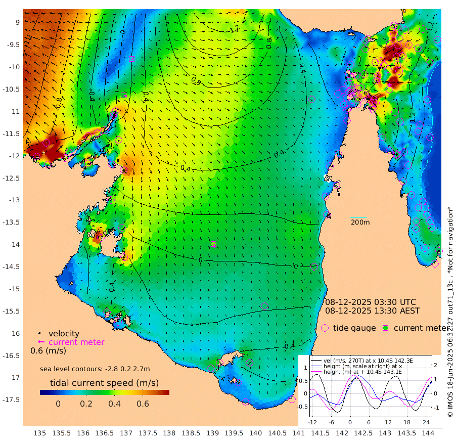29cm/s 112T +3cm/s rms + 7cm/s -42T. ARA-GOC87 57m 38cm/s 162T +3cm/s rms + 2cm/s -2T. ARA-GOC87 60m 16cm/s 108T +2cm/s rms + 3cm/s 61T. ARA-GOC87 47m 157cm Daru 157cm Bobo Island 108cm Meer Island Barge 126cm Bramble Cay 147cm Unnamed Cay 158cm Pearce Cay 147cm Stephens Island 141cm Merrie England Shoals 152cm Mutacomal Reef 143cm Darnley Island Barge 114cm East Cay 151cm Yorke Island Barge 150cm Rennel Island 154cm Aureed Island 152cm Dungeness Reef 139cm Zagai Island 139cm Yam Island 124cm Dauan Island 117cm Saibai Island 115cm Phipi Reef 148cm Warrior Reef - West 92cm Mabuiag Island Barge 150cm Half Way Island 151cm Coconut Island 158cm Dugong Islet 145cm Poll Island 148cm Kirkcaldie Reef 131cm Suarji Island 143cm Sue Islet 87cm Hawkesbury Island 128cm Alert Patches 135cm Twin Island 84cm Badu Island 133cm St Pauls (Moa Island) 98cm Kubin (Moa Island) 114cm Ince Point 104cm Thursday Island 106cm Nardana Patches 97cm Turtle Head 77cm Round Island 78cm Goods Island 61cm Booby Island 61cm White Rocks Area 51cm Carpentaria 118cm Papou Point 73cm Bampfield Head 48cm Crab Island 66cm Red Wallis Island 92cm Packe Island 162cm Harrington Reef 81cm Herald Camp 32cm Sharp Point 83cm Red Island Point 102cm Possession Island 124cm Alpha Rock 147cm Frederick Point 154cm Wyborn Reef Light 153cm Tetley Island 105cm Triangle Reef 166cm Turtle Head Island 108cm Maclennan Cay 83cm Raine Island 143cm Mcsweeny Reef 132cm Collette Reef 103cm Shadwell Reef 140cm Hannibal Island 129cm Round Point 43cm Vrilya Point 116cm Cape Grenville 115cm Hicks Island 126cm Sir Charles Hardy Island 38cm Harvey Island 104cm Kay Reef 94cm Rocky Island 91cm Chapman Island 88cm Ham Reef 95cm Jubilee Reef 88cm Night Island 90cm Unnamed Reef No. 3 96cm Morris Island 92cm 1st 3 Mile Opening 97cm Creech Reef 99cm Fife Island 104cm Eden Reef 97cm Stanley Island 105cm Normanby River -45cm Yabooma Island -37cm Hutchison River -58cm Elcho Island -64cm North West Crocodile Island 21cm Cape Wessel -25cm Stevens Island 72cm Guluwuru Island -33cm Hopeful Bay 0cm Auster Point 4cm Two Island Bay 26cm Cadell Strait 196cm Mallison Island 42cm Melville Bay (Gove Harbour) 55cm Truant Island 38cm Cape Arnhem 0cm Cape Grey -22cm Hawk Island -72cm Milner Bay (Groote Eylandt) -72cm Cape Beatrice -103cm West Island -106cm Centre Island -85cm Mornington Island -78cm West Wellesley Islands -113cm Bountiful Island -176cm Albert River Mouth -201cm Sweers Island -165cm Karumba -32cm Nassau River Offshore 21cm Christmas Creek 33cm Archer River 51cm Boyd Point 42cm Weipa (Humbug Point) 34cm Pennefather River 43cm Cullen Point