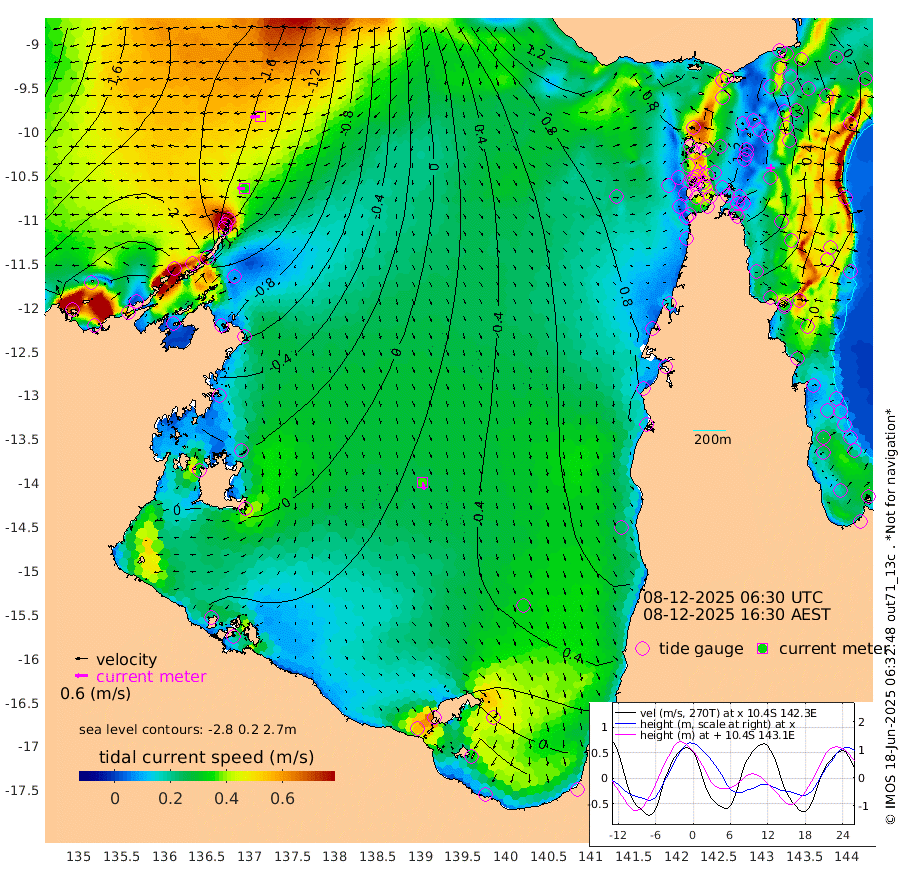35cm/s -89T +3cm/s rms + 7cm/s -42T. ARA-GOC87 57m 36cm/s 168T +3cm/s rms + 2cm/s -2T. ARA-GOC87 60m 48cm/s -96T +2cm/s rms + 3cm/s 61T. ARA-GOC87 47m 73cm Daru 49cm Bobo Island 13cm Meer Island Barge 18cm Bramble Cay 47cm Unnamed Cay 39cm Pearce Cay 39cm Stephens Island 42cm Merrie England Shoals 67cm Mutacomal Reef 37cm Darnley Island Barge 15cm East Cay 53cm Yorke Island Barge 59cm Rennel Island 53cm Aureed Island 79cm Dungeness Reef 95cm Zagai Island 110cm Yam Island 132cm Dauan Island 124cm Saibai Island 126cm Phipi Reef 115cm Warrior Reef - West 114cm Mabuiag Island Barge 61cm Half Way Island 72cm Coconut Island 77cm Dugong Islet 90cm Poll Island 103cm Kirkcaldie Reef 110cm Suarji Island 97cm Sue Islet 113cm Hawkesbury Island 118cm Alert Patches 112cm Twin Island 111cm Badu Island 123cm St Pauls (Moa Island) 111cm Kubin (Moa Island) 119cm Ince Point 121cm Thursday Island 119cm Nardana Patches 119cm Turtle Head 104cm Round Island 107cm Goods Island 112cm Booby Island 99cm White Rocks Area 106cm Carpentaria 99cm Papou Point 103cm Bampfield Head 102cm Crab Island 114cm Red Wallis Island 119cm Packe Island 79cm Harrington Reef 131cm Herald Camp 44cm Sharp Point 107cm Red Island Point 101cm Possession Island 99cm Alpha Rock 98cm Frederick Point 64cm Wyborn Reef Light 72cm Tetley Island 24cm Triangle Reef 62cm Turtle Head Island 25cm Maclennan Cay 7cm Raine Island 47cm Mcsweeny Reef 40cm Collette Reef 23cm Shadwell Reef 34cm Hannibal Island 19cm Round Point 105cm Vrilya Point 26cm Cape Grenville 21cm Hicks Island 31cm Sir Charles Hardy Island 10cm Harvey Island 13cm Kay Reef 10cm Rocky Island 4cm Chapman Island 9cm Ham Reef 11cm Jubilee Reef 14cm Night Island 10cm Unnamed Reef No. 3 8cm Morris Island 12cm 1st 3 Mile Opening 14cm Creech Reef 13cm Fife Island -7cm Eden Reef 11cm Stanley Island 1cm Normanby River -247cm Yabooma Island -291cm Hutchison River -261cm Elcho Island -247cm North West Crocodile Island -176cm Cape Wessel -238cm Stevens Island -149cm Guluwuru Island -220cm Hopeful Bay -194cm Auster Point -194cm Two Island Bay -240cm Cadell Strait -87cm Mallison Island -144cm Melville Bay (Gove Harbour) -150cm Truant Island -94cm Cape Arnhem -71cm Cape Grey -64cm Hawk Island -52cm Milner Bay (Groote Eylandt) -32cm Cape Beatrice 11cm West Island 8cm Centre Island 26cm Mornington Island 29cm West Wellesley Islands 10cm Bountiful Island -45cm Albert River Mouth -68cm Sweers Island -19cm Karumba 68cm Nassau River Offshore 98cm Christmas Creek 84cm Archer River 91cm Boyd Point 89cm Weipa (Humbug Point) 82cm Pennefather River 102cm Cullen Point