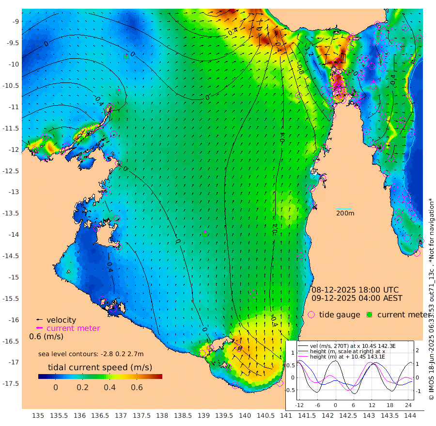 21cm/s 9T +3cm/s rms + 7cm/s -42T. ARA-GOC87 57m 32cm/s 11T +3cm/s rms + 2cm/s -2T. ARA-GOC87 60m 21cm/s 20T +2cm/s rms + 3cm/s 61T. ARA-GOC87 47m -41cm Daru -39cm Bobo Island -52cm Meer Island Barge -56cm Bramble Cay -47cm Unnamed Cay -54cm Pearce Cay -47cm Stephens Island -46cm Merrie England Shoals -44cm Mutacomal Reef -42cm Darnley Island Barge -61cm East Cay -37cm Yorke Island Barge -47cm Rennel Island -39cm Aureed Island -52cm Dungeness Reef -39cm Zagai Island -53cm Yam Island -83cm Dauan Island -64cm Saibai Island -93cm Phipi Reef -58cm Warrior Reef - West -72cm Mabuiag Island Barge -41cm Half Way Island -44cm Coconut Island -42cm Dugong Islet -45cm Poll Island -50cm Kirkcaldie Reef -50cm Suarji Island -33cm Sue Islet -169cm Hawkesbury Island -64cm Alert Patches -60cm Twin Island -156cm Badu Island -55cm St Pauls (Moa Island) -132cm Kubin (Moa Island) -80cm Ince Point -94cm Thursday Island -91cm Nardana Patches -129cm Turtle Head -132cm Round Island -166cm Goods Island -167cm Booby Island -162cm White Rocks Area -96cm Carpentaria -56cm Papou Point -157cm Bampfield Head -140cm Crab Island -161cm Red Wallis Island -153cm Packe Island -36cm Harrington Reef -165cm Herald Camp -2cm Sharp Point -120cm Red Island Point -78cm Possession Island -38cm Alpha Rock -49cm Frederick Point -38cm Wyborn Reef Light -38cm Tetley Island -55cm Triangle Reef -40cm Turtle Head Island -57cm Maclennan Cay -63cm Raine Island -41cm Mcsweeny Reef -44cm Collette Reef -52cm Shadwell Reef -47cm Hannibal Island -61cm Round Point -114cm Vrilya Point -53cm Cape Grenville -58cm Hicks Island -71cm Sir Charles Hardy Island -15cm Harvey Island -60cm Kay Reef -63cm Rocky Island -71cm Chapman Island -62cm Ham Reef -60cm Jubilee Reef -53cm Night Island -64cm Unnamed Reef No. 3 -63cm Morris Island -62cm 1st 3 Mile Opening -61cm Creech Reef -52cm Fife Island -75cm Eden Reef -61cm Stanley Island -63cm Normanby River -94cm Yabooma Island -111cm Hutchison River -84cm Elcho Island -84cm North West Crocodile Island -20cm Cape Wessel -54cm Stevens Island -14cm Guluwuru Island -55cm Hopeful Bay -32cm Auster Point -31cm Two Island Bay -70cm Cadell Strait 44cm Mallison Island -13cm Melville Bay (Gove Harbour) -11cm Truant Island 4cm Cape Arnhem 27cm Cape Grey 31cm Hawk Island 74cm Milner Bay (Groote Eylandt) 64cm Cape Beatrice 101cm West Island 100cm Centre Island 40cm Mornington Island 47cm West Wellesley Islands 20cm Bountiful Island 41cm Albert River Mouth 84cm Sweers Island 26cm Karumba -36cm Nassau River Offshore -80cm Christmas Creek -103cm Archer River -97cm Boyd Point -124cm Weipa (Humbug Point) -81cm Pennefather River -114cm Cullen Point