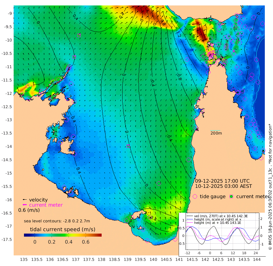 26cm/s 43T +3cm/s rms + 7cm/s -42T. ARA-GOC87 57m 22cm/s -6T +3cm/s rms + 2cm/s -2T. ARA-GOC87 60m 32cm/s 42T +2cm/s rms + 3cm/s 61T. ARA-GOC87 47m -9cm Daru 1cm Bobo Island -7cm Meer Island Barge -7cm Bramble Cay -10cm Unnamed Cay -4cm Pearce Cay -3cm Stephens Island -8cm Merrie England Shoals -16cm Mutacomal Reef 2cm Darnley Island Barge -12cm East Cay 0cm Yorke Island Barge -14cm Rennel Island 2cm Aureed Island -24cm Dungeness Reef -30cm Zagai Island -53cm Yam Island -79cm Dauan Island -69cm Saibai Island -78cm Phipi Reef -40cm Warrior Reef - West -101cm Mabuiag Island Barge -12cm Half Way Island -21cm Coconut Island -18cm Dugong Islet -34cm Poll Island -44cm Kirkcaldie Reef -52cm Suarji Island -30cm Sue Islet -219cm Hawkesbury Island -80cm Alert Patches -71cm Twin Island -189cm Badu Island -72cm St Pauls (Moa Island) -165cm Kubin (Moa Island) -105cm Ince Point -126cm Thursday Island -120cm Nardana Patches -156cm Turtle Head -177cm Round Island -202cm Goods Island -224cm Booby Island -212cm White Rocks Area -175cm Carpentaria -74cm Papou Point -225cm Bampfield Head -191cm Crab Island -213cm Red Wallis Island -185cm Packe Island -16cm Harrington Reef -221cm Herald Camp -11cm Sharp Point -150cm Red Island Point -106cm Possession Island -51cm Alpha Rock -47cm Frederick Point -17cm Wyborn Reef Light -23cm Tetley Island -18cm Triangle Reef -23cm Turtle Head Island -19cm Maclennan Cay -22cm Raine Island -4cm Mcsweeny Reef -5cm Collette Reef -12cm Shadwell Reef -1cm Hannibal Island -11cm Round Point -174cm Vrilya Point -13cm Cape Grenville -14cm Hicks Island -25cm Sir Charles Hardy Island -3cm Harvey Island -16cm Kay Reef -18cm Rocky Island -22cm Chapman Island -21cm Ham Reef -17cm Jubilee Reef -12cm Night Island -21cm Unnamed Reef No. 3 -17cm Morris Island -21cm 1st 3 Mile Opening -18cm Creech Reef -1cm Fife Island -15cm Eden Reef -16cm Stanley Island -11cm Normanby River -31cm Yabooma Island -24cm Hutchison River -16cm Elcho Island -22cm North West Crocodile Island 29cm Cape Wessel 11cm Stevens Island 57cm Guluwuru Island 6cm Hopeful Bay 18cm Auster Point 17cm Two Island Bay 24cm Cadell Strait 153cm Mallison Island 51cm Melville Bay (Gove Harbour) 52cm Truant Island 50cm Cape Arnhem 58cm Cape Grey 61cm Hawk Island 83cm Milner Bay (Groote Eylandt) 75cm Cape Beatrice 90cm West Island 86cm Centre Island 84cm Mornington Island 90cm West Wellesley Islands 85cm Bountiful Island 123cm Albert River Mouth 162cm Sweers Island 101cm Karumba 14cm Nassau River Offshore -44cm Christmas Creek -94cm Archer River -109cm Boyd Point -127cm Weipa (Humbug Point) -112cm Pennefather River -161cm Cullen Point