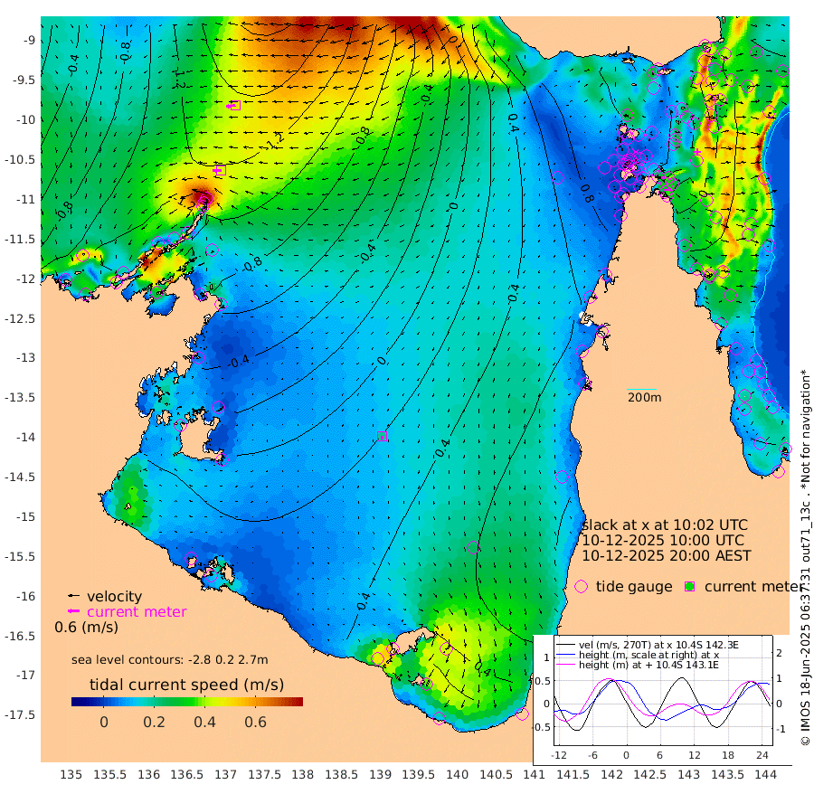 44cm/s -92T +3cm/s rms + 7cm/s -42T. ARA-GOC87 57m 19cm/s -168T +3cm/s rms + 2cm/s -2T. ARA-GOC87 60m 49cm/s -100T +2cm/s rms + 3cm/s 61T. ARA-GOC87 47m 2cm Daru -17cm Bobo Island -30cm Meer Island Barge -27cm Bramble Cay -13cm Unnamed Cay -19cm Pearce Cay -20cm Stephens Island -12cm Merrie England Shoals 4cm Mutacomal Reef -26cm Darnley Island Barge -28cm East Cay -16cm Yorke Island Barge -5cm Rennel Island -15cm Aureed Island 15cm Dungeness Reef 23cm Zagai Island 43cm Yam Island 61cm Dauan Island 50cm Saibai Island 78cm Phipi Reef 39cm Warrior Reef - West 63cm Mabuiag Island Barge 0cm Half Way Island 6cm Coconut Island 8cm Dugong Islet 24cm Poll Island 39cm Kirkcaldie Reef 41cm Suarji Island 23cm Sue Islet 99cm Hawkesbury Island 57cm Alert Patches 49cm Twin Island 91cm Badu Island 56cm St Pauls (Moa Island) 81cm Kubin (Moa Island) 67cm Ince Point 76cm Thursday Island 73cm Nardana Patches 84cm Turtle Head 80cm Round Island 92cm Goods Island 101cm Booby Island 91cm White Rocks Area 72cm Carpentaria 47cm Papou Point 69cm Bampfield Head 96cm Crab Island 100cm Red Wallis Island 95cm Packe Island 8cm Harrington Reef 104cm Herald Camp 24cm Sharp Point 87cm Red Island Point 57cm Possession Island 33cm Alpha Rock 30cm Frederick Point -6cm Wyborn Reef Light 1cm Tetley Island -19cm Triangle Reef -6cm Turtle Head Island -19cm Maclennan Cay -24cm Raine Island -16cm Mcsweeny Reef -18cm Collette Reef -22cm Shadwell Reef -23cm Hannibal Island -27cm Round Point 95cm Vrilya Point -19cm Cape Grenville -23cm Hicks Island -24cm Sir Charles Hardy Island -6cm Harvey Island -25cm Kay Reef -26cm Rocky Island -31cm Chapman Island -28cm Ham Reef -27cm Jubilee Reef -20cm Night Island -26cm Unnamed Reef No. 3 -27cm Morris Island -26cm 1st 3 Mile Opening -25cm Creech Reef -33cm Fife Island -40cm Eden Reef -27cm Stanley Island -35cm Normanby River -139cm Yabooma Island -167cm Hutchison River -143cm Elcho Island -123cm North West Crocodile Island -155cm Cape Wessel -158cm Stevens Island -164cm Guluwuru Island -142cm Hopeful Bay -149cm Auster Point -146cm Two Island Bay -176cm Cadell Strait -240cm Mallison Island -143cm Melville Bay (Gove Harbour) -159cm Truant Island -107cm Cape Arnhem -70cm Cape Grey -49cm Hawk Island -24cm Milner Bay (Groote Eylandt) 0cm Cape Beatrice 42cm West Island 43cm Centre Island 69cm Mornington Island 60cm West Wellesley Islands 76cm Bountiful Island 70cm Albert River Mouth 50cm Sweers Island 94cm Karumba 98cm Nassau River Offshore 97cm Christmas Creek 81cm Archer River 68cm Boyd Point 79cm Weipa (Humbug Point) 75cm Pennefather River 87cm Cullen Point