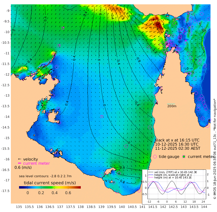 25cm/s 63T +3cm/s rms + 7cm/s -42T. ARA-GOC87 57m 16cm/s -30T +3cm/s rms + 2cm/s -2T. ARA-GOC87 60m 32cm/s 55T +2cm/s rms + 3cm/s 61T. ARA-GOC87 47m -25cm Daru -12cm Bobo Island 0cm Meer Island Barge -4cm Bramble Cay -20cm Unnamed Cay -9cm Pearce Cay -11cm Stephens Island -17cm Merrie England Shoals -32cm Mutacomal Reef -4cm Darnley Island Barge -5cm East Cay -13cm Yorke Island Barge -27cm Rennel Island -10cm Aureed Island -37cm Dungeness Reef -46cm Zagai Island -71cm Yam Island -72cm Dauan Island -69cm Saibai Island -67cm Phipi Reef -50cm Warrior Reef - West -102cm Mabuiag Island Barge -29cm Half Way Island -37cm Coconut Island -38cm Dugong Islet -52cm Poll Island -64cm Kirkcaldie Reef -70cm Suarji Island -52cm Sue Islet -192cm Hawkesbury Island -93cm Alert Patches -88cm Twin Island -158cm Badu Island -91cm St Pauls (Moa Island) -153cm Kubin (Moa Island) -111cm Ince Point -128cm Thursday Island -123cm Nardana Patches -140cm Turtle Head -166cm Round Island -171cm Goods Island -193cm Booby Island -182cm White Rocks Area -174cm Carpentaria -90cm Papou Point -208cm Bampfield Head -164cm Crab Island -185cm Red Wallis Island -163cm Packe Island -41cm Harrington Reef -204cm Herald Camp -22cm Sharp Point -136cm Red Island Point -115cm Possession Island -74cm Alpha Rock -67cm Frederick Point -36cm Wyborn Reef Light -44cm Tetley Island -11cm Triangle Reef -45cm Turtle Head Island -14cm Maclennan Cay -5cm Raine Island -14cm Mcsweeny Reef -10cm Collette Reef -6cm Shadwell Reef -6cm Hannibal Island -7cm Round Point -157cm Vrilya Point -13cm Cape Grenville -10cm Hicks Island -18cm Sir Charles Hardy Island -4cm Harvey Island -9cm Kay Reef -4cm Rocky Island -1cm Chapman Island -6cm Ham Reef -4cm Jubilee Reef -3cm Night Island -5cm Unnamed Reef No. 3 -3cm Morris Island -8cm 1st 3 Mile Opening -6cm Creech Reef 11cm Fife Island 6cm Eden Reef -5cm Stanley Island 0cm Normanby River 35cm Yabooma Island 56cm Hutchison River 52cm Elcho Island 43cm North West Crocodile Island 56cm Cape Wessel 64cm Stevens Island 82cm Guluwuru Island 58cm Hopeful Bay 54cm Auster Point 48cm Two Island Bay 87cm Cadell Strait 168cm Mallison Island 77cm Melville Bay (Gove Harbour) 76cm Truant Island 63cm Cape Arnhem 61cm Cape Grey 63cm Hawk Island 69cm Milner Bay (Groote Eylandt) 65cm Cape Beatrice 60cm West Island 56cm Centre Island 88cm Mornington Island 92cm West Wellesley Islands 105cm Bountiful Island 154cm Albert River Mouth 183cm Sweers Island 131cm Karumba 39cm Nassau River Offshore -15cm Christmas Creek -61cm Archer River -87cm Boyd Point -92cm Weipa (Humbug Point) -94cm Pennefather River -142cm Cullen Point