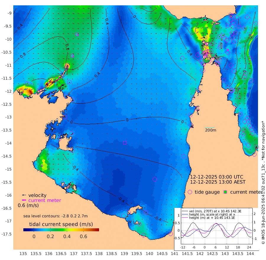 19cm/s 122T +3cm/s rms + 7cm/s -42T. ARA-GOC87 57m 2cm/s 152T +3cm/s rms + 2cm/s -2T. ARA-GOC87 60m 19cm/s 114T +2cm/s rms + 3cm/s 61T. ARA-GOC87 47m -14cm Daru -15cm Bobo Island 4cm Meer Island Barge -1cm Bramble Cay -6cm Unnamed Cay -11cm Pearce Cay -12cm Stephens Island -13cm Merrie England Shoals -10cm Mutacomal Reef -9cm Darnley Island Barge 3cm East Cay -11cm Yorke Island Barge -10cm Rennel Island -14cm Aureed Island -8cm Dungeness Reef 7cm Zagai Island 10cm Yam Island 47cm Dauan Island 42cm Saibai Island 23cm Phipi Reef 9cm Warrior Reef - West 46cm Mabuiag Island Barge -17cm Half Way Island -10cm Coconut Island -14cm Dugong Islet -2cm Poll Island -12cm Kirkcaldie Reef 9cm Suarji Island -1cm Sue Islet 95cm Hawkesbury Island 13cm Alert Patches 11cm Twin Island 84cm Badu Island 14cm St Pauls (Moa Island) 69cm Kubin (Moa Island) 30cm Ince Point 40cm Thursday Island 39cm Nardana Patches 59cm Turtle Head 81cm Round Island 86cm Goods Island 92cm Booby Island 91cm White Rocks Area 64cm Carpentaria 17cm Papou Point 119cm Bampfield Head 66cm Crab Island 84cm Red Wallis Island 70cm Packe Island -23cm Harrington Reef 99cm Herald Camp -7cm Sharp Point 42cm Red Island Point 34cm Possession Island 11cm Alpha Rock -2cm Frederick Point -2cm Wyborn Reef Light 0cm Tetley Island 10cm Triangle Reef -9cm Turtle Head Island 6cm Maclennan Cay 14cm Raine Island -10cm Mcsweeny Reef -6cm Collette Reef 6cm Shadwell Reef -9cm Hannibal Island 0cm Round Point 47cm Vrilya Point -3cm Cape Grenville 3cm Hicks Island 17cm Sir Charles Hardy Island -2cm Harvey Island 5cm Kay Reef 11cm Rocky Island 20cm Chapman Island 16cm Ham Reef 11cm Jubilee Reef 3cm Night Island 12cm Unnamed Reef No. 3 8cm Morris Island 15cm 1st 3 Mile Opening 8cm Creech Reef 2cm Fife Island 13cm Eden Reef 7cm Stanley Island 5cm Normanby River 150cm Yabooma Island 159cm Hutchison River 134cm Elcho Island 125cm North West Crocodile Island 99cm Cape Wessel 125cm Stevens Island 82cm Guluwuru Island 117cm Hopeful Bay 106cm Auster Point 105cm Two Island Bay 122cm Cadell Strait 76cm Mallison Island 75cm Melville Bay (Gove Harbour) 85cm Truant Island 46cm Cape Arnhem 13cm Cape Grey -2cm Hawk Island -34cm Milner Bay (Groote Eylandt) -47cm Cape Beatrice -90cm West Island -90cm Centre Island -97cm Mornington Island -90cm West Wellesley Islands -83cm Bountiful Island -101cm Albert River Mouth -118cm Sweers Island -108cm Karumba -67cm Nassau River Offshore -29cm Christmas Creek 10cm Archer River 30cm Boyd Point 41cm Weipa (Humbug Point) 14cm Pennefather River 54cm Cullen Point