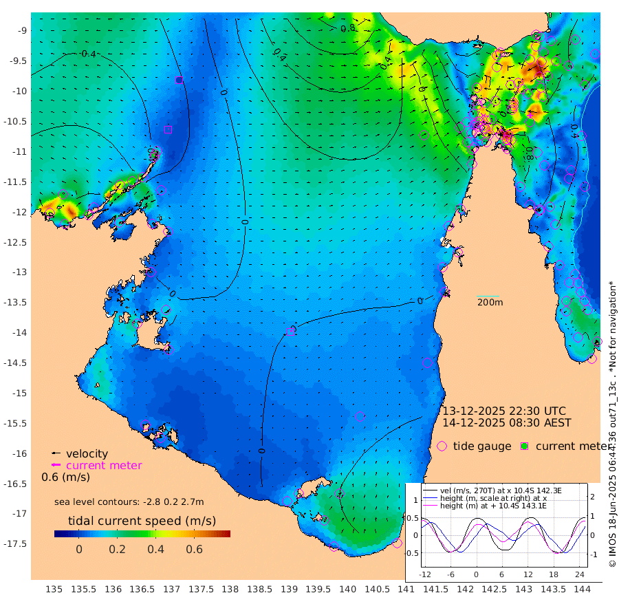 3cm/s -4T +3cm/s rms + 7cm/s -42T. ARA-GOC87 57m 10cm/s 38T +3cm/s rms + 2cm/s -2T. ARA-GOC87 60m 0cm/s -124T +2cm/s rms + 3cm/s 61T. ARA-GOC87 47m 64cm Daru 73cm Bobo Island 42cm Meer Island Barge 52cm Bramble Cay 65cm Unnamed Cay 68cm Pearce Cay 67cm Stephens Island 67cm Merrie England Shoals 65cm Mutacomal Reef 62cm Darnley Island Barge 46cm East Cay 65cm Yorke Island Barge 68cm Rennel Island 72cm Aureed Island 62cm Dungeness Reef 45cm Zagai Island 39cm Yam Island -18cm Dauan Island -9cm Saibai Island -1cm Phipi Reef 30cm Warrior Reef - West 1cm Mabuiag Island Barge 70cm Half Way Island 73cm Coconut Island 70cm Dugong Islet 57cm Poll Island 62cm Kirkcaldie Reef 60cm Suarji Island 53cm Sue Islet -27cm Hawkesbury Island 49cm Alert Patches 51cm Twin Island -19cm Badu Island 43cm St Pauls (Moa Island) -4cm Kubin (Moa Island) 29cm Ince Point 21cm Thursday Island 22cm Nardana Patches 6cm Turtle Head -5cm Round Island -11cm Goods Island -13cm Booby Island -6cm White Rocks Area 23cm Carpentaria 43cm Papou Point 7cm Bampfield Head -13cm Crab Island -13cm Red Wallis Island -7cm Packe Island 87cm Harrington Reef -22cm Herald Camp 12cm Sharp Point 6cm Red Island Point 36cm Possession Island 47cm Alpha Rock 63cm Frederick Point 67cm Wyborn Reef Light 64cm Tetley Island 36cm Triangle Reef 79cm Turtle Head Island 44cm Maclennan Cay 29cm Raine Island 64cm Mcsweeny Reef 57cm Collette Reef 37cm Shadwell Reef 64cm Hannibal Island 52cm Round Point -6cm Vrilya Point 53cm Cape Grenville 47cm Hicks Island 42cm Sir Charles Hardy Island 17cm Harvey Island 45cm Kay Reef 33cm Rocky Island 25cm Chapman Island 28cm Ham Reef 33cm Jubilee Reef 34cm Night Island 32cm Unnamed Reef No. 3 38cm Morris Island 37cm 1st 3 Mile Opening 38cm Creech Reef 32cm Fife Island 38cm Eden Reef 38cm Stanley Island 42cm Normanby River -93cm Yabooma Island -83cm Hutchison River -78cm Elcho Island -82cm North West Crocodile Island -32cm Cape Wessel -72cm Stevens Island -15cm Guluwuru Island -72cm Hopeful Bay -44cm Auster Point -55cm Two Island Bay -79cm Cadell Strait -50cm Mallison Island -24cm Melville Bay (Gove Harbour) -21cm Truant Island -8cm Cape Arnhem 3cm Cape Grey -3cm Hawk Island 9cm Milner Bay (Groote Eylandt) 8cm Cape Beatrice 24cm West Island 30cm Centre Island -4cm Mornington Island -2cm West Wellesley Islands -29cm Bountiful Island -44cm Albert River Mouth -39cm Sweers Island -47cm Karumba -28cm Nassau River Offshore -24cm Christmas Creek -19cm Archer River -9cm Boyd Point -23cm Weipa (Humbug Point) -3cm Pennefather River -15cm Cullen Point