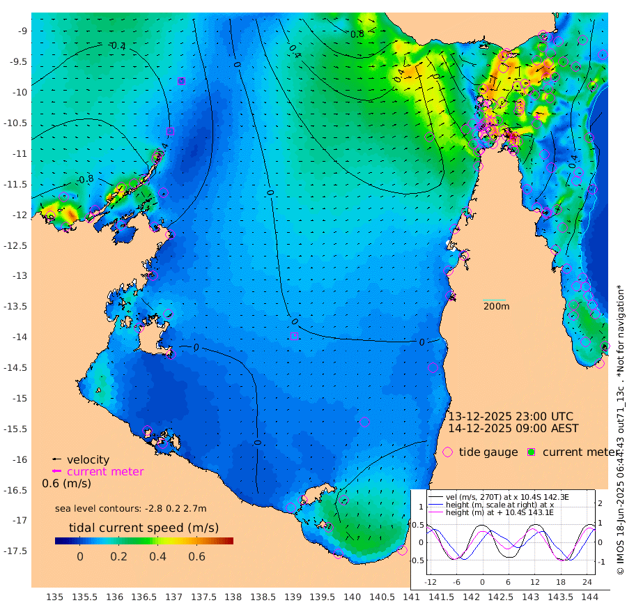 4cm/s -62T +3cm/s rms + 7cm/s -42T. ARA-GOC87 57m 10cm/s 37T +3cm/s rms + 2cm/s -2T. ARA-GOC87 60m 4cm/s -114T +2cm/s rms + 3cm/s 61T. ARA-GOC87 47m 62cm Daru 67cm Bobo Island 33cm Meer Island Barge 42cm Bramble Cay 60cm Unnamed Cay 62cm Pearce Cay 60cm Stephens Island 60cm Merrie England Shoals 63cm Mutacomal Reef 54cm Darnley Island Barge 36cm East Cay 60cm Yorke Island Barge 65cm Rennel Island 68cm Aureed Island 65cm Dungeness Reef 54cm Zagai Island 51cm Yam Island 1cm Dauan Island 8cm Saibai Island 16cm Phipi Reef 41cm Warrior Reef - West 20cm Mabuiag Island Barge 68cm Half Way Island 74cm Coconut Island 72cm Dugong Islet 64cm Poll Island 69cm Kirkcaldie Reef 75cm Suarji Island 60cm Sue Islet -3cm Hawkesbury Island 64cm Alert Patches 65cm Twin Island 4cm Badu Island 60cm St Pauls (Moa Island) 17cm Kubin (Moa Island) 47cm Ince Point 41cm Thursday Island 41cm Nardana Patches 26cm Turtle Head 18cm Round Island 11cm Goods Island 11cm Booby Island 18cm White Rocks Area 42cm Carpentaria 57cm Papou Point 32cm Bampfield Head 6cm Crab Island 10cm Red Wallis Island 13cm Packe Island 88cm Harrington Reef 3cm Herald Camp 17cm Sharp Point 23cm Red Island Point 52cm Possession Island 57cm Alpha Rock 70cm Frederick Point 67cm Wyborn Reef Light 65cm Tetley Island 30cm Triangle Reef 79cm Turtle Head Island 37cm Maclennan Cay 20cm Raine Island 58cm Mcsweeny Reef 50cm Collette Reef 29cm Shadwell Reef 55cm Hannibal Island 42cm Round Point 11cm Vrilya Point 44cm Cape Grenville 38cm Hicks Island 34cm Sir Charles Hardy Island 14cm Harvey Island 34cm Kay Reef 24cm Rocky Island 15cm Chapman Island 18cm Ham Reef 24cm Jubilee Reef 25cm Night Island 21cm Unnamed Reef No. 3 28cm Morris Island 29cm 1st 3 Mile Opening 28cm Creech Reef 19cm Fife Island 25cm Eden Reef 28cm Stanley Island 30cm Normanby River -95cm Yabooma Island -89cm Hutchison River -83cm Elcho Island -86cm North West Crocodile Island -42cm Cape Wessel -81cm Stevens Island -29cm Guluwuru Island -80cm Hopeful Bay -51cm Auster Point -62cm Two Island Bay -93cm Cadell Strait -89cm Mallison Island -36cm Melville Bay (Gove Harbour) -33cm Truant Island -18cm Cape Arnhem -3cm Cape Grey -9cm Hawk Island 6cm Milner Bay (Groote Eylandt) 6cm Cape Beatrice 24cm West Island 31cm Centre Island -8cm Mornington Island -5cm West Wellesley Islands -31cm Bountiful Island -48cm Albert River Mouth -47cm Sweers Island -52cm Karumba -29cm Nassau River Offshore -22cm Christmas Creek -14cm Archer River -1cm Boyd Point -13cm Weipa (Humbug Point) 5cm Pennefather River 0cm Cullen Point