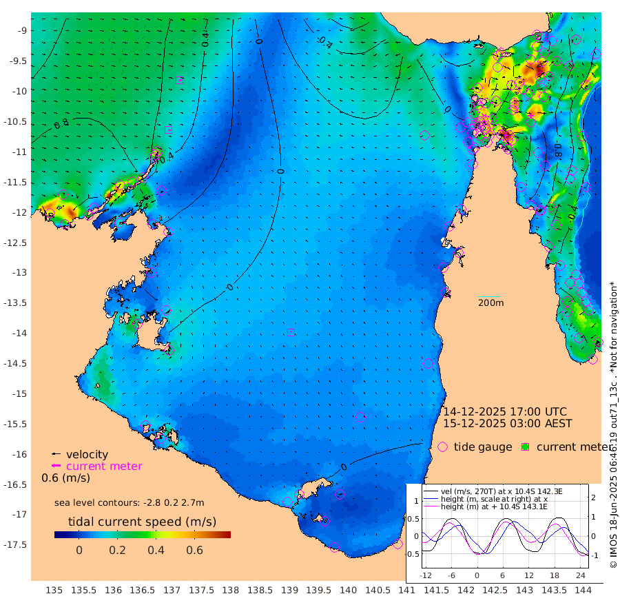 16cm/s 111T +3cm/s rms + 7cm/s -42T. ARA-GOC87 57m 9cm/s -25T +3cm/s rms + 2cm/s -2T. ARA-GOC87 60m 18cm/s 98T +2cm/s rms + 3cm/s 61T. ARA-GOC87 47m -99cm Daru -100cm Bobo Island -53cm Meer Island Barge -70cm Bramble Cay -94cm Unnamed Cay -91cm Pearce Cay -90cm Stephens Island -91cm Merrie England Shoals -105cm Mutacomal Reef -81cm Darnley Island Barge -62cm East Cay -90cm Yorke Island Barge -98cm Rennel Island -99cm Aureed Island -99cm Dungeness Reef -91cm Zagai Island -101cm Yam Island -52cm Dauan Island -55cm Saibai Island -59cm Phipi Reef -91cm Warrior Reef - West -47cm Mabuiag Island Barge -100cm Half Way Island -102cm Coconut Island -109cm Dugong Islet -100cm Poll Island -105cm Kirkcaldie Reef -105cm Suarji Island -93cm Sue Islet -24cm Hawkesbury Island -86cm Alert Patches -95cm Twin Island -19cm Badu Island -91cm St Pauls (Moa Island) -50cm Kubin (Moa Island) -73cm Ince Point -63cm Thursday Island -65cm Nardana Patches -48cm Turtle Head -43cm Round Island -26cm Goods Island -14cm Booby Island -26cm White Rocks Area -30cm Carpentaria -83cm Papou Point -35cm Bampfield Head -4cm Crab Island -25cm Red Wallis Island -48cm Packe Island -118cm Harrington Reef -48cm Herald Camp -28cm Sharp Point -42cm Red Island Point -71cm Possession Island -92cm Alpha Rock -102cm Frederick Point -102cm Wyborn Reef Light -102cm Tetley Island -54cm Triangle Reef -97cm Turtle Head Island -62cm Maclennan Cay -33cm Raine Island -86cm Mcsweeny Reef -76cm Collette Reef -49cm Shadwell Reef -83cm Hannibal Island -71cm Round Point 2cm Vrilya Point -71cm Cape Grenville -64cm Hicks Island -73cm Sir Charles Hardy Island -23cm Harvey Island -58cm Kay Reef -45cm Rocky Island -36cm Chapman Island -38cm Ham Reef -42cm Jubilee Reef -44cm Night Island -40cm Unnamed Reef No. 3 -47cm Morris Island -40cm 1st 3 Mile Opening -45cm Creech Reef -41cm Fife Island -45cm Eden Reef -47cm Stanley Island -55cm Normanby River 91cm Yabooma Island 96cm Hutchison River 93cm Elcho Island 89cm North West Crocodile Island 40cm Cape Wessel 85cm Stevens Island 29cm Guluwuru Island 81cm Hopeful Bay 61cm Auster Point 58cm Two Island Bay 90cm Cadell Strait 43cm Mallison Island 38cm Melville Bay (Gove Harbour) 36cm Truant Island 22cm Cape Arnhem 18cm Cape Grey 16cm Hawk Island 13cm Milner Bay (Groote Eylandt) 7cm Cape Beatrice -11cm West Island -12cm Centre Island -5cm Mornington Island -8cm West Wellesley Islands 1cm Bountiful Island 35cm Albert River Mouth 54cm Sweers Island 31cm Karumba -10cm Nassau River Offshore -21cm Christmas Creek -2cm Archer River -13cm Boyd Point -7cm Weipa (Humbug Point) 11cm Pennefather River -11cm Cullen Point
