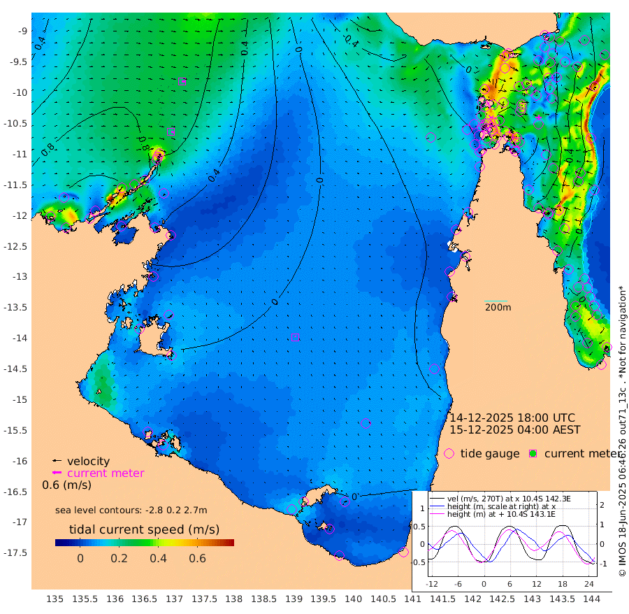 22cm/s 104T +3cm/s rms + 7cm/s -42T. ARA-GOC87 57m 7cm/s -21T +3cm/s rms + 2cm/s -2T. ARA-GOC87 60m 23cm/s 93T +2cm/s rms + 3cm/s 61T. ARA-GOC87 47m -77cm Daru -71cm Bobo Island -20cm Meer Island Barge -35cm Bramble Cay -63cm Unnamed Cay -61cm Pearce Cay -57cm Stephens Island -57cm Merrie England Shoals -81cm Mutacomal Reef -47cm Darnley Island Barge -25cm East Cay -64cm Yorke Island Barge -72cm Rennel Island -72cm Aureed Island -85cm Dungeness Reef -90cm Zagai Island -105cm Yam Island -75cm Dauan Island -72cm Saibai Island -78cm Phipi Reef -94cm Warrior Reef - West -69cm Mabuiag Island Barge -77cm Half Way Island -82cm Coconut Island -90cm Dugong Islet -94cm Poll Island -98cm Kirkcaldie Reef -109cm Suarji Island -87cm Sue Islet -50cm Hawkesbury Island -92cm Alert Patches -99cm Twin Island -43cm Badu Island -103cm St Pauls (Moa Island) -70cm Kubin (Moa Island) -87cm Ince Point -80cm Thursday Island -82cm Nardana Patches -66cm Turtle Head -63cm Round Island -46cm Goods Island -38cm Booby Island -47cm White Rocks Area -43cm Carpentaria -91cm Papou Point -50cm Bampfield Head -24cm Crab Island -47cm Red Wallis Island -67cm Packe Island -97cm Harrington Reef -72cm Herald Camp -34cm Sharp Point -56cm Red Island Point -81cm Possession Island -93cm Alpha Rock -95cm Frederick Point -79cm Wyborn Reef Light -84cm Tetley Island -28cm Triangle Reef -76cm Turtle Head Island -32cm Maclennan Cay -3cm Raine Island -56cm Mcsweeny Reef -45cm Collette Reef -19cm Shadwell Reef -47cm Hannibal Island -34cm Round Point -17cm Vrilya Point -37cm Cape Grenville -31cm Hicks Island -38cm Sir Charles Hardy Island -13cm Harvey Island -20cm Kay Reef -12cm Rocky Island -2cm Chapman Island -5cm Ham Reef -9cm Jubilee Reef -15cm Night Island -6cm Unnamed Reef No. 3 -11cm Morris Island -9cm 1st 3 Mile Opening -12cm Creech Reef -4cm Fife Island -4cm Eden Reef -11cm Stanley Island -15cm Normanby River 93cm Yabooma Island 108cm Hutchison River 101cm Elcho Island 92cm North West Crocodile Island 61cm Cape Wessel 98cm Stevens Island 61cm Guluwuru Island 94cm Hopeful Bay 75cm Auster Point 69cm Two Island Bay 108cm Cadell Strait 114cm Mallison Island 62cm Melville Bay (Gove Harbour) 62cm Truant Island 41cm Cape Arnhem 30cm Cape Grey 23cm Hawk Island 11cm Milner Bay (Groote Eylandt) 4cm Cape Beatrice -22cm West Island -24cm Centre Island -12cm Mornington Island -15cm West Wellesley Islands -9cm Bountiful Island 18cm Albert River Mouth 38cm Sweers Island 13cm Karumba -18cm Nassau River Offshore -25cm Christmas Creek -6cm Archer River -18cm Boyd Point -14cm Weipa (Humbug Point) 1cm Pennefather River -28cm Cullen Point