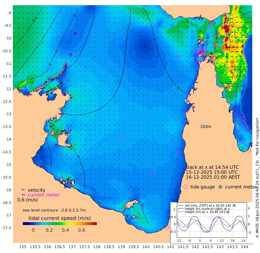 2cm/s -115T +3cm/s rms + 7cm/s -42T. ARA-GOC87 57m 11cm/s -5T +3cm/s rms + 2cm/s -2T. ARA-GOC87 60m 1cm/s -166T +2cm/s rms + 3cm/s 61T. ARA-GOC87 47m -81cm Daru -89cm Bobo Island -85cm Meer Island Barge -97cm Bramble Cay -95cm Unnamed Cay -87cm Pearce Cay -95cm Stephens Island -98cm Merrie England Shoals -86cm Mutacomal Reef -92cm Darnley Island Barge -98cm East Cay -84cm Yorke Island Barge -86cm Rennel Island -84cm Aureed Island -66cm Dungeness Reef -42cm Zagai Island -40cm Yam Island -5cm Dauan Island -15cm Saibai Island -14cm Phipi Reef -42cm Warrior Reef - West -1cm Mabuiag Island Barge -77cm Half Way Island -76cm Coconut Island -73cm Dugong Islet -50cm Poll Island -57cm Kirkcaldie Reef -40cm Suarji Island -50cm Sue Islet 2cm Hawkesbury Island -31cm Alert Patches -34cm Twin Island -2cm Badu Island -20cm St Pauls (Moa Island) -6cm Kubin (Moa Island) -17cm Ince Point -10cm Thursday Island -12cm Nardana Patches -14cm Turtle Head -9cm Round Island -9cm Goods Island 2cm Booby Island -5cm White Rocks Area -3cm Carpentaria -24cm Papou Point -22cm Bampfield Head 7cm Crab Island 0cm Red Wallis Island -12cm Packe Island -79cm Harrington Reef -9cm Herald Camp 0cm Sharp Point -13cm Red Island Point -20cm Possession Island -39cm Alpha Rock -53cm Frederick Point -80cm Wyborn Reef Light -72cm Tetley Island -75cm Triangle Reef -71cm Turtle Head Island -84cm Maclennan Cay -81cm Raine Island -89cm Mcsweeny Reef -90cm Collette Reef -82cm Shadwell Reef -100cm Hannibal Island -100cm Round Point 17cm Vrilya Point -95cm Cape Grenville -92cm Hicks Island -105cm Sir Charles Hardy Island -28cm Harvey Island -100cm Kay Reef -89cm Rocky Island -90cm Chapman Island -87cm Ham Reef -86cm Jubilee Reef -76cm Night Island -89cm Unnamed Reef No. 3 -93cm Morris Island -82cm 1st 3 Mile Opening -87cm Creech Reef -90cm Fife Island -103cm Eden Reef -93cm Stanley Island -101cm Normanby River 4cm Yabooma Island -14cm Hutchison River 0cm Elcho Island 8cm North West Crocodile Island -26cm Cape Wessel -6cm Stevens Island -53cm Guluwuru Island -8cm Hopeful Bay -11cm Auster Point -1cm Two Island Bay -13cm Cadell Strait -124cm Mallison Island -36cm Melville Bay (Gove Harbour) -39cm Truant Island -29cm Cape Arnhem -16cm Cape Grey -3cm Hawk Island 19cm Milner Bay (Groote Eylandt) 16cm Cape Beatrice 33cm West Island 34cm Centre Island 7cm Mornington Island 6cm West Wellesley Islands 0cm Bountiful Island 28cm Albert River Mouth 44cm Sweers Island 30cm Karumba -6cm Nassau River Offshore -24cm Christmas Creek -19cm Archer River -18cm Boyd Point -20cm Weipa (Humbug Point) 11cm Pennefather River 5cm Cullen Point