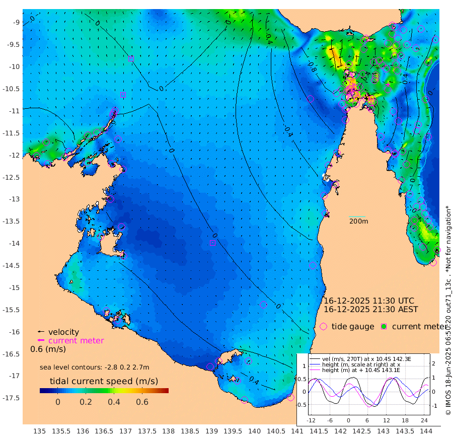 10cm/s -10T +3cm/s rms + 7cm/s -42T. ARA-GOC87 57m 4cm/s -36T +3cm/s rms + 2cm/s -2T. ARA-GOC87 60m 11cm/s -5T +2cm/s rms + 3cm/s 61T. ARA-GOC87 47m 40cm Daru 46cm Bobo Island 9cm Meer Island Barge 28cm Bramble Cay 37cm Unnamed Cay 40cm Pearce Cay 35cm Stephens Island 42cm Merrie England Shoals 50cm Mutacomal Reef 28cm Darnley Island Barge 16cm East Cay 33cm Yorke Island Barge 35cm Rennel Island 42cm Aureed Island 31cm Dungeness Reef 22cm Zagai Island 24cm Yam Island -24cm Dauan Island -17cm Saibai Island -15cm Phipi Reef 21cm Warrior Reef - West -34cm Mabuiag Island Barge 41cm Half Way Island 35cm Coconut Island 40cm Dugong Islet 31cm Poll Island 28cm Kirkcaldie Reef 13cm Suarji Island 22cm Sue Islet -89cm Hawkesbury Island -7cm Alert Patches 8cm Twin Island -86cm Badu Island 3cm St Pauls (Moa Island) -54cm Kubin (Moa Island) -20cm Ince Point -35cm Thursday Island -31cm Nardana Patches -59cm Turtle Head -70cm Round Island -91cm Goods Island -111cm Booby Island -94cm White Rocks Area -91cm Carpentaria 1cm Papou Point -121cm Bampfield Head -96cm Crab Island -89cm Red Wallis Island -55cm Packe Island 46cm Harrington Reef -87cm Herald Camp 9cm Sharp Point -50cm Red Island Point -28cm Possession Island 20cm Alpha Rock 24cm Frederick Point 41cm Wyborn Reef Light 40cm Tetley Island 12cm Triangle Reef 26cm Turtle Head Island 10cm Maclennan Cay -8cm Raine Island 32cm Mcsweeny Reef 26cm Collette Reef 6cm Shadwell Reef 33cm Hannibal Island 29cm Round Point -92cm Vrilya Point 24cm Cape Grenville 14cm Hicks Island 12cm Sir Charles Hardy Island 7cm Harvey Island 15cm Kay Reef 2cm Rocky Island -2cm Chapman Island -3cm Ham Reef -2cm Jubilee Reef 7cm Night Island 0cm Unnamed Reef No. 3 3cm Morris Island -13cm 1st 3 Mile Opening -1cm Creech Reef 7cm Fife Island 3cm Eden Reef 3cm Stanley Island 15cm Normanby River -24cm Yabooma Island -22cm Hutchison River -17cm Elcho Island -11cm North West Crocodile Island 5cm Cape Wessel -3cm Stevens Island 4cm Guluwuru Island -6cm Hopeful Bay -10cm Auster Point 0cm Two Island Bay -4cm Cadell Strait 45cm Mallison Island 2cm Melville Bay (Gove Harbour) 0cm Truant Island 3cm Cape Arnhem 3cm Cape Grey 20cm Hawk Island 29cm Milner Bay (Groote Eylandt) 34cm Cape Beatrice 49cm West Island 47cm Centre Island 54cm Mornington Island 51cm West Wellesley Islands 52cm Bountiful Island 71cm Albert River Mouth 71cm Sweers Island 66cm Karumba 35cm Nassau River Offshore 2cm Christmas Creek -42cm Archer River -55cm Boyd Point -63cm Weipa (Humbug Point) -64cm Pennefather River -75cm Cullen Point