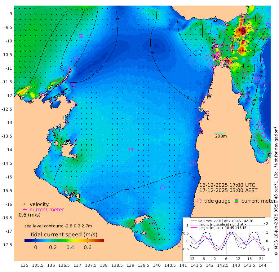 9cm/s 120T +3cm/s rms + 7cm/s -42T. ARA-GOC87 57m 15cm/s 3T +3cm/s rms + 2cm/s -2T. ARA-GOC87 60m 11cm/s 112T +2cm/s rms + 3cm/s 61T. ARA-GOC87 47m -116cm Daru -121cm Bobo Island -79cm Meer Island Barge -102cm Bramble Cay -117cm Unnamed Cay -116cm Pearce Cay -112cm Stephens Island -118cm Merrie England Shoals -124cm Mutacomal Reef -104cm Darnley Island Barge -93cm East Cay -109cm Yorke Island Barge -115cm Rennel Island -117cm Aureed Island -109cm Dungeness Reef -92cm Zagai Island -95cm Yam Island -53cm Dauan Island -60cm Saibai Island -70cm Phipi Reef -98cm Warrior Reef - West -38cm Mabuiag Island Barge -109cm Half Way Island -115cm Coconut Island -114cm Dugong Islet -100cm Poll Island -105cm Kirkcaldie Reef -98cm Suarji Island -95cm Sue Islet -8cm Hawkesbury Island -78cm Alert Patches -85cm Twin Island -15cm Badu Island -76cm St Pauls (Moa Island) -29cm Kubin (Moa Island) -59cm Ince Point -46cm Thursday Island -49cm Nardana Patches -37cm Turtle Head -21cm Round Island -13cm Goods Island 8cm Booby Island -6cm White Rocks Area 10cm Carpentaria -70cm Papou Point -4cm Bampfield Head 15cm Crab Island -2cm Red Wallis Island -31cm Packe Island -124cm Harrington Reef -15cm Herald Camp -22cm Sharp Point -37cm Red Island Point -53cm Possession Island -84cm Alpha Rock -101cm Frederick Point -116cm Wyborn Reef Light -112cm Tetley Island -77cm Triangle Reef -103cm Turtle Head Island -83cm Maclennan Cay -63cm Raine Island -107cm Mcsweeny Reef -103cm Collette Reef -77cm Shadwell Reef -112cm Hannibal Island -104cm Round Point 26cm Vrilya Point -98cm Cape Grenville -90cm Hicks Island -102cm Sir Charles Hardy Island -29cm Harvey Island -92cm Kay Reef -76cm Rocky Island -74cm Chapman Island -69cm Ham Reef -71cm Jubilee Reef -68cm Night Island -73cm Unnamed Reef No. 3 -78cm Morris Island -65cm 1st 3 Mile Opening -73cm Creech Reef -73cm Fife Island -83cm Eden Reef -77cm Stanley Island -88cm Normanby River 59cm Yabooma Island 47cm Hutchison River 55cm Elcho Island 55cm North West Crocodile Island 16cm Cape Wessel 46cm Stevens Island -11cm Guluwuru Island 43cm Hopeful Bay 35cm Auster Point 43cm Two Island Bay 40cm Cadell Strait -54cm Mallison Island 2cm Melville Bay (Gove Harbour) 3cm Truant Island -2cm Cape Arnhem -1cm Cape Grey 1cm Hawk Island 12cm Milner Bay (Groote Eylandt) 3cm Cape Beatrice 2cm West Island 2cm Centre Island -30cm Mornington Island -32cm West Wellesley Islands -42cm Bountiful Island -14cm Albert River Mouth 6cm Sweers Island -15cm Karumba -42cm Nassau River Offshore -48cm Christmas Creek -21cm Archer River -14cm Boyd Point -15cm Weipa (Humbug Point) 18cm Pennefather River 10cm Cullen Point