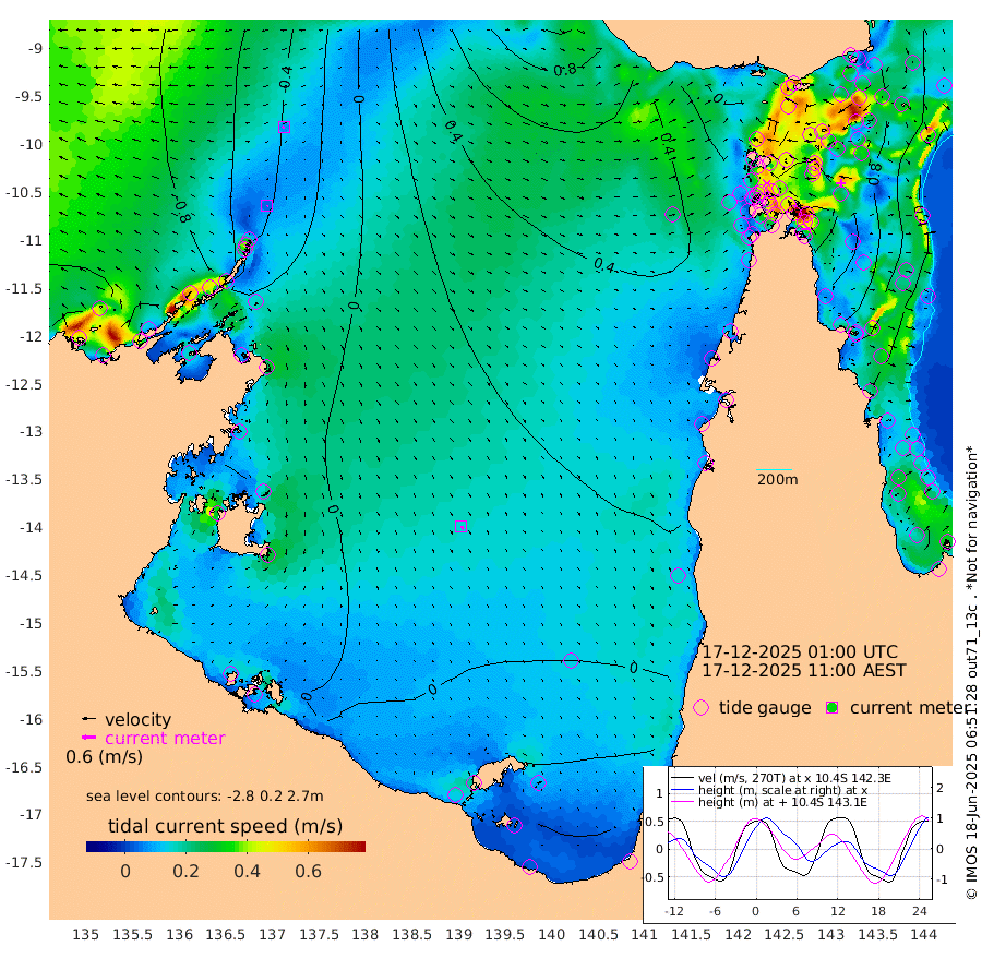 4cm/s -175T +3cm/s rms + 7cm/s -42T. ARA-GOC87 57m 15cm/s 152T +3cm/s rms + 2cm/s -2T. ARA-GOC87 60m 6cm/s -129T +2cm/s rms + 3cm/s 61T. ARA-GOC87 47m 107cm Daru 111cm Bobo Island 55cm Meer Island Barge 71cm Bramble Cay 94cm Unnamed Cay 109cm Pearce Cay 92cm Stephens Island 89cm Merrie England Shoals 107cm Mutacomal Reef 86cm Darnley Island Barge 62cm East Cay 100cm Yorke Island Barge 105cm Rennel Island 113cm Aureed Island 115cm Dungeness Reef 114cm Zagai Island 111cm Yam Island 90cm Dauan Island 91cm Saibai Island 100cm Phipi Reef 115cm Warrior Reef - West 87cm Mabuiag Island Barge 103cm Half Way Island 121cm Coconut Island 114cm Dugong Islet 118cm Poll Island 117cm Kirkcaldie Reef 137cm Suarji Island 114cm Sue Islet 74cm Hawkesbury Island 125cm Alert Patches 125cm Twin Island 78cm Badu Island 123cm St Pauls (Moa Island) 83cm Kubin (Moa Island) 108cm Ince Point 102cm Thursday Island 103cm Nardana Patches 92cm Turtle Head 78cm Round Island 75cm Goods Island 68cm Booby Island 73cm White Rocks Area 70cm Carpentaria 110cm Papou Point 87cm Bampfield Head 50cm Crab Island 69cm Red Wallis Island 81cm Packe Island 130cm Harrington Reef 72cm Herald Camp 33cm Sharp Point 85cm Red Island Point 107cm Possession Island 108cm Alpha Rock 124cm Frederick Point 112cm Wyborn Reef Light 114cm Tetley Island 63cm Triangle Reef 119cm Turtle Head Island 63cm Maclennan Cay 38cm Raine Island 93cm Mcsweeny Reef 83cm Collette Reef 55cm Shadwell Reef 87cm Hannibal Island 74cm Round Point 45cm Vrilya Point 68cm Cape Grenville 64cm Hicks Island 68cm Sir Charles Hardy Island 21cm Harvey Island 56cm Kay Reef 47cm Rocky Island 45cm Chapman Island 42cm Ham Reef 45cm Jubilee Reef 44cm Night Island 45cm Unnamed Reef No. 3 47cm Morris Island 46cm 1st 3 Mile Opening 49cm Creech Reef 42cm Fife Island 46cm Eden Reef 45cm Stanley Island 49cm Normanby River -103cm Yabooma Island -99cm Hutchison River -102cm Elcho Island -103cm North West Crocodile Island -42cm Cape Wessel -91cm Stevens Island -22cm Guluwuru Island -87cm Hopeful Bay -56cm Auster Point -69cm Two Island Bay -84cm Cadell Strait -39cm Mallison Island -31cm Melville Bay (Gove Harbour) -26cm Truant Island -14cm Cape Arnhem -14cm Cape Grey -19cm Hawk Island -32cm Milner Bay (Groote Eylandt) -29cm Cape Beatrice -25cm West Island -19cm Centre Island -28cm Mornington Island -23cm West Wellesley Islands -46cm Bountiful Island -93cm Albert River Mouth -98cm Sweers Island -83cm Karumba -13cm Nassau River Offshore 15cm Christmas Creek 27cm Archer River 40cm Boyd Point 32cm Weipa (Humbug Point) 32cm Pennefather River 41cm Cullen Point