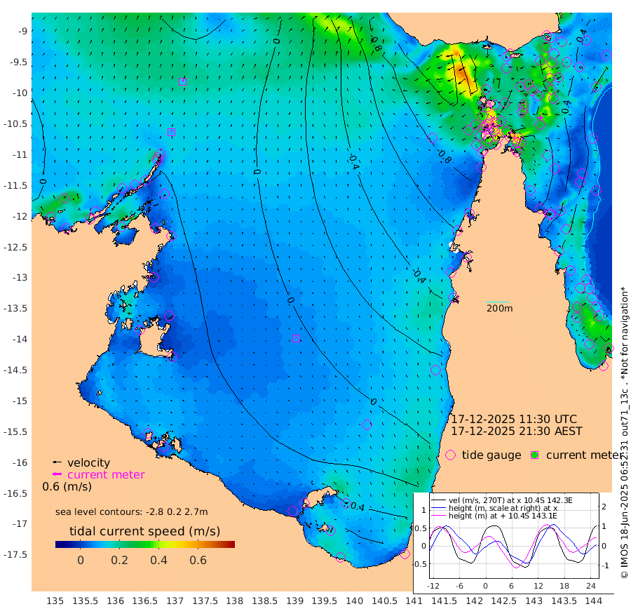 11cm/s 13T +3cm/s rms + 7cm/s -42T. ARA-GOC87 57m 8cm/s -40T +3cm/s rms + 2cm/s -2T. ARA-GOC87 60m 13cm/s 19T +2cm/s rms + 3cm/s 61T. ARA-GOC87 47m 37cm Daru 44cm Bobo Island 12cm Meer Island Barge 33cm Bramble Cay 38cm Unnamed Cay 38cm Pearce Cay 33cm Stephens Island 45cm Merrie England Shoals 49cm Mutacomal Reef 28cm Darnley Island Barge 19cm East Cay 31cm Yorke Island Barge 32cm Rennel Island 37cm Aureed Island 23cm Dungeness Reef 14cm Zagai Island 13cm Yam Island -33cm Dauan Island -23cm Saibai Island -22cm Phipi Reef 13cm Warrior Reef - West -45cm Mabuiag Island Barge 34cm Half Way Island 30cm Coconut Island 32cm Dugong Islet 21cm Poll Island 17cm Kirkcaldie Reef -1cm Suarji Island 13cm Sue Islet -110cm Hawkesbury Island -21cm Alert Patches -7cm Twin Island -99cm Badu Island -14cm St Pauls (Moa Island) -74cm Kubin (Moa Island) -36cm Ince Point -54cm Thursday Island -49cm Nardana Patches -76cm Turtle Head -91cm Round Island -108cm Goods Island -133cm Booby Island -113cm White Rocks Area -118cm Carpentaria -14cm Papou Point -147cm Bampfield Head -115cm Crab Island -111cm Red Wallis Island -76cm Packe Island 36cm Harrington Reef -115cm Herald Camp 4cm Sharp Point -66cm Red Island Point -47cm Possession Island 9cm Alpha Rock 12cm Frederick Point 38cm Wyborn Reef Light 35cm Tetley Island 12cm Triangle Reef 16cm Turtle Head Island 10cm Maclennan Cay -3cm Raine Island 31cm Mcsweeny Reef 28cm Collette Reef 10cm Shadwell Reef 36cm Hannibal Island 32cm Round Point -113cm Vrilya Point 26cm Cape Grenville 16cm Hicks Island 15cm Sir Charles Hardy Island 6cm Harvey Island 21cm Kay Reef 7cm Rocky Island 5cm Chapman Island 1cm Ham Reef 3cm Jubilee Reef 9cm Night Island 5cm Unnamed Reef No. 3 8cm Morris Island -10cm 1st 3 Mile Opening 2cm Creech Reef 11cm Fife Island 10cm Eden Reef 8cm Stanley Island 20cm Normanby River 6cm Yabooma Island 15cm Hutchison River 16cm Elcho Island 20cm North West Crocodile Island 25cm Cape Wessel 29cm Stevens Island 29cm Guluwuru Island 23cm Hopeful Bay 12cm Auster Point 18cm Two Island Bay 27cm Cadell Strait 92cm Mallison Island 25cm Melville Bay (Gove Harbour) 21cm Truant Island 18cm Cape Arnhem 18cm Cape Grey 32cm Hawk Island 40cm Milner Bay (Groote Eylandt) 44cm Cape Beatrice 52cm West Island 49cm Centre Island 67cm Mornington Island 66cm West Wellesley Islands 77cm Bountiful Island 106cm Albert River Mouth 105cm Sweers Island 94cm Karumba 44cm Nassau River Offshore 4cm Christmas Creek -45cm Archer River -66cm Boyd Point -70cm Weipa (Humbug Point) -77cm Pennefather River -95cm Cullen Point