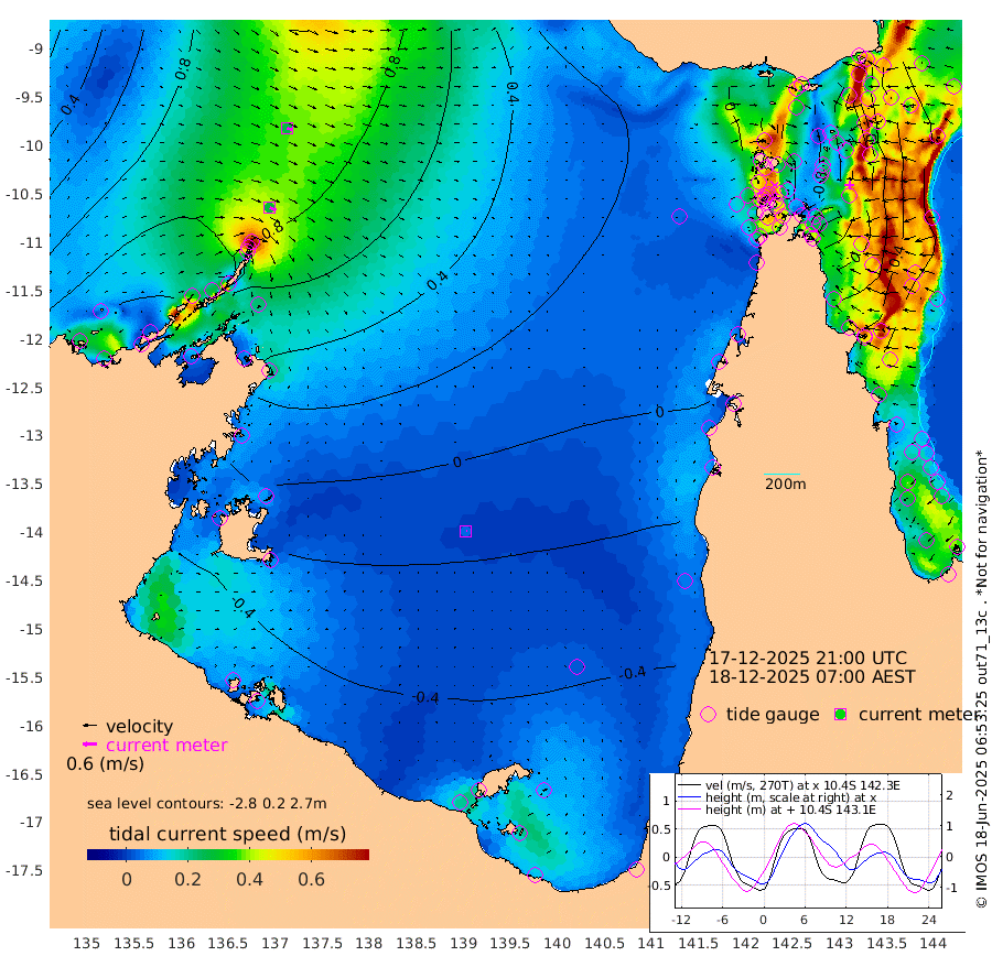 29cm/s 117T +3cm/s rms + 7cm/s -42T. ARA-GOC87 57m 4cm/s 72T +3cm/s rms + 2cm/s -2T. ARA-GOC87 60m 27cm/s 111T +2cm/s rms + 3cm/s 61T. ARA-GOC87 47m 2cm Daru 11cm Bobo Island 48cm Meer Island Barge 48cm Bramble Cay 30cm Unnamed Cay 20cm Pearce Cay 31cm Stephens Island 40cm Merrie England Shoals 9cm Mutacomal Reef 33cm Darnley Island Barge 51cm East Cay 14cm Yorke Island Barge 13cm Rennel Island 2cm Aureed Island -13cm Dungeness Reef -44cm Zagai Island -49cm Yam Island -72cm Dauan Island -66cm Saibai Island -62cm Phipi Reef -57cm Warrior Reef - West -43cm Mabuiag Island Barge 8cm Half Way Island -2cm Coconut Island -7cm Dugong Islet -29cm Poll Island -23cm Kirkcaldie Reef -54cm Suarji Island -27cm Sue Islet 21cm Hawkesbury Island -30cm Alert Patches -35cm Twin Island 5cm Badu Island -51cm St Pauls (Moa Island) -5cm Kubin (Moa Island) -31cm Ince Point -24cm Thursday Island -27cm Nardana Patches -9cm Turtle Head 13cm Round Island 19cm Goods Island 30cm Booby Island 21cm White Rocks Area 28cm Carpentaria -34cm Papou Point 54cm Bampfield Head 28cm Crab Island 17cm Red Wallis Island 2cm Packe Island -6cm Harrington Reef 12cm Herald Camp -26cm Sharp Point -5cm Red Island Point -11cm Possession Island -29cm Alpha Rock -21cm Frederick Point 11cm Wyborn Reef Light 2cm Tetley Island 33cm Triangle Reef 24cm Turtle Head Island 38cm Maclennan Cay 56cm Raine Island 25cm Mcsweeny Reef 34cm Collette Reef 47cm Shadwell Reef 42cm Hannibal Island 53cm Round Point 31cm Vrilya Point 48cm Cape Grenville 47cm Hicks Island 42cm Sir Charles Hardy Island 13cm Harvey Island 61cm Kay Reef 54cm Rocky Island 57cm Chapman Island 55cm Ham Reef 54cm Jubilee Reef 45cm Night Island 55cm Unnamed Reef No. 3 59cm Morris Island 56cm 1st 3 Mile Opening 54cm Creech Reef 52cm Fife Island 72cm Eden Reef 62cm Stanley Island 63cm Normanby River 116cm Yabooma Island 143cm Hutchison River 123cm Elcho Island 108cm North West Crocodile Island 87cm Cape Wessel 119cm Stevens Island 90cm Guluwuru Island 113cm Hopeful Bay 100cm Auster Point 96cm Two Island Bay 121cm Cadell Strait 137cm Mallison Island 79cm Melville Bay (Gove Harbour) 87cm Truant Island 51cm Cape Arnhem 23cm Cape Grey 10cm Hawk Island -27cm Milner Bay (Groote Eylandt) -38cm Cape Beatrice -82cm West Island -78cm Centre Island -87cm Mornington Island -95cm West Wellesley Islands -107cm Bountiful Island -112cm Albert River Mouth -104cm Sweers Island -108cm Karumba -75cm Nassau River Offshore -46cm Christmas Creek 4cm Archer River 9cm Boyd Point 10cm Weipa (Humbug Point) 29cm Pennefather River 17cm Cullen Point