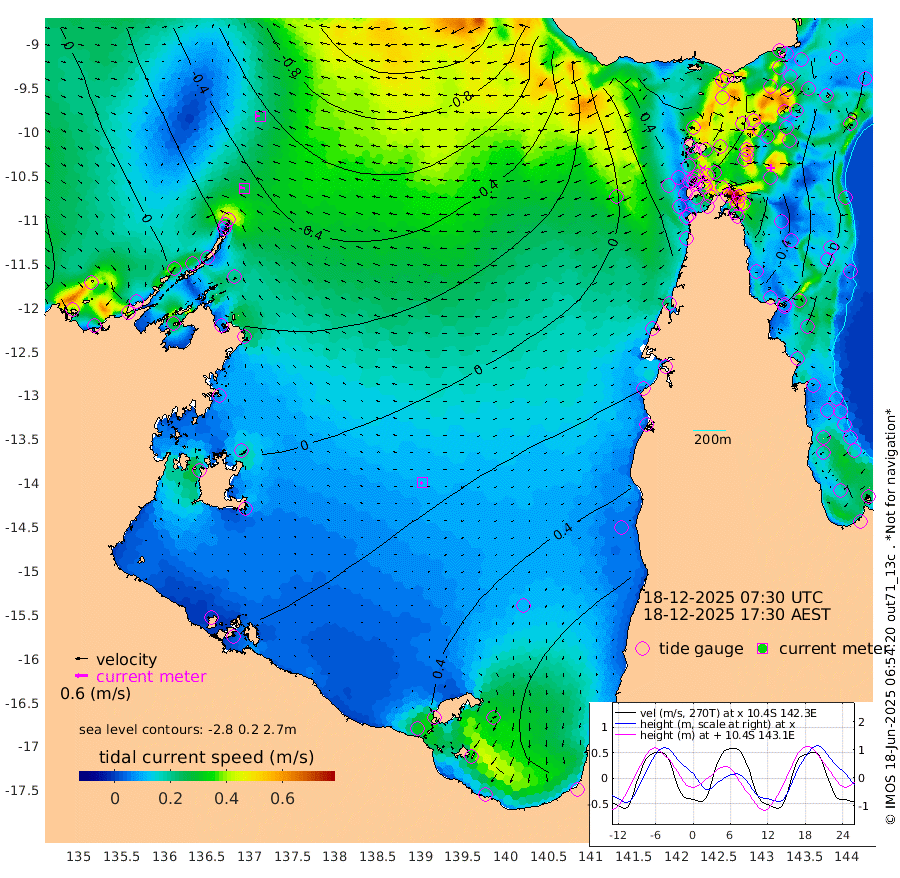 25cm/s -81T +3cm/s rms + 7cm/s -42T. ARA-GOC87 57m 12cm/s -128T +3cm/s rms + 2cm/s -2T. ARA-GOC87 60m 24cm/s -88T +2cm/s rms + 3cm/s 61T. ARA-GOC87 47m -34cm Daru -45cm Bobo Island -7cm Meer Island Barge -19cm Bramble Cay -30cm Unnamed Cay -44cm Pearce Cay -29cm Stephens Island -32cm Merrie England Shoals -40cm Mutacomal Reef -26cm Darnley Island Barge -7cm East Cay -34cm Yorke Island Barge -34cm Rennel Island -44cm Aureed Island -32cm Dungeness Reef -34cm Zagai Island -22cm Yam Island 8cm Dauan Island 0cm Saibai Island 13cm Phipi Reef -21cm Warrior Reef - West -5cm Mabuiag Island Barge -37cm Half Way Island -47cm Coconut Island -38cm Dugong Islet -41cm Poll Island -28cm Kirkcaldie Reef -37cm Suarji Island -35cm Sue Islet 20cm Hawkesbury Island -32cm Alert Patches -38cm Twin Island 19cm Badu Island -34cm St Pauls (Moa Island) 4cm Kubin (Moa Island) -20cm Ince Point -12cm Thursday Island -13cm Nardana Patches 7cm Turtle Head 10cm Round Island 22cm Goods Island 25cm Booby Island 18cm White Rocks Area -5cm Carpentaria -29cm Papou Point 11cm Bampfield Head 24cm Crab Island 16cm Red Wallis Island 8cm Packe Island -51cm Harrington Reef 34cm Herald Camp -9cm Sharp Point 11cm Red Island Point -20cm Possession Island -41cm Alpha Rock -43cm Frederick Point -50cm Wyborn Reef Light -52cm Tetley Island -16cm Triangle Reef -53cm Turtle Head Island -6cm Maclennan Cay 7cm Raine Island -32cm Mcsweeny Reef -25cm Collette Reef -6cm Shadwell Reef -28cm Hannibal Island -23cm Round Point 13cm Vrilya Point -15cm Cape Grenville -7cm Hicks Island 1cm Sir Charles Hardy Island -3cm Harvey Island -6cm Kay Reef 4cm Rocky Island 2cm Chapman Island 4cm Ham Reef 3cm Jubilee Reef -3cm Night Island 1cm Unnamed Reef No. 3 2cm Morris Island 7cm 1st 3 Mile Opening 2cm Creech Reef -2cm Fife Island 3cm Eden Reef 3cm Stanley Island -1cm Normanby River 8cm Yabooma Island 0cm Hutchison River 0cm Elcho Island 7cm North West Crocodile Island -43cm Cape Wessel -23cm Stevens Island -39cm Guluwuru Island -14cm Hopeful Bay -32cm Auster Point -29cm Two Island Bay -22cm Cadell Strait -83cm Mallison Island -32cm Melville Bay (Gove Harbour) -43cm Truant Island -29cm Cape Arnhem -8cm Cape Grey -10cm Hawk Island 2cm Milner Bay (Groote Eylandt) 14cm Cape Beatrice 24cm West Island 18cm Centre Island 65cm Mornington Island 63cm West Wellesley Islands 110cm Bountiful Island 115cm Albert River Mouth 98cm Sweers Island 118cm Karumba 78cm Nassau River Offshore 69cm Christmas Creek 46cm Archer River 30cm Boyd Point 49cm Weipa (Humbug Point) 11cm Pennefather River 22cm Cullen Point