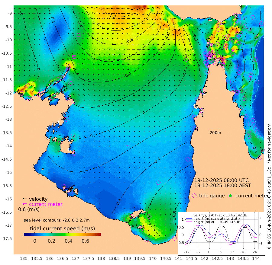 29cm/s -82T +3cm/s rms + 7cm/s -42T. ARA-GOC87 57m 13cm/s -124T +3cm/s rms + 2cm/s -2T. ARA-GOC87 60m 27cm/s -88T +2cm/s rms + 3cm/s 61T. ARA-GOC87 47m -36cm Daru -45cm Bobo Island -6cm Meer Island Barge -19cm Bramble Cay -31cm Unnamed Cay -41cm Pearce Cay -28cm Stephens Island -33cm Merrie England Shoals -43cm Mutacomal Reef -25cm Darnley Island Barge -5cm East Cay -34cm Yorke Island Barge -34cm Rennel Island -43cm Aureed Island -31cm Dungeness Reef -38cm Zagai Island -25cm Yam Island 0cm Dauan Island -9cm Saibai Island 13cm Phipi Reef -25cm Warrior Reef - West -11cm Mabuiag Island Barge -35cm Half Way Island -48cm Coconut Island -37cm Dugong Islet -43cm Poll Island -27cm Kirkcaldie Reef -38cm Suarji Island -38cm Sue Islet 19cm Hawkesbury Island -33cm Alert Patches -40cm Twin Island 15cm Badu Island -37cm St Pauls (Moa Island) 2cm Kubin (Moa Island) -22cm Ince Point -14cm Thursday Island -16cm Nardana Patches 5cm Turtle Head 9cm Round Island 21cm Goods Island 24cm Booby Island 15cm White Rocks Area -8cm Carpentaria -30cm Papou Point 7cm Bampfield Head 25cm Crab Island 14cm Red Wallis Island 6cm Packe Island -50cm Harrington Reef 34cm Herald Camp -10cm Sharp Point 14cm Red Island Point -19cm Possession Island -46cm Alpha Rock -45cm Frederick Point -54cm Wyborn Reef Light -56cm Tetley Island -16cm Triangle Reef -52cm Turtle Head Island -4cm Maclennan Cay 8cm Raine Island -33cm Mcsweeny Reef -26cm Collette Reef -6cm Shadwell Reef -28cm Hannibal Island -23cm Round Point 15cm Vrilya Point -14cm Cape Grenville -5cm Hicks Island 0cm Sir Charles Hardy Island -3cm Harvey Island -6cm Kay Reef 5cm Rocky Island 1cm Chapman Island 4cm Ham Reef 3cm Jubilee Reef -2cm Night Island 1cm Unnamed Reef No. 3 3cm Morris Island 8cm 1st 3 Mile Opening 4cm Creech Reef -2cm Fife Island 5cm Eden Reef 4cm Stanley Island 1cm Normanby River -2cm Yabooma Island -11cm Hutchison River -9cm Elcho Island 1cm North West Crocodile Island -57cm Cape Wessel -38cm Stevens Island -56cm Guluwuru Island -25cm Hopeful Bay -43cm Auster Point -39cm Two Island Bay -34cm Cadell Strait -129cm Mallison Island -46cm Melville Bay (Gove Harbour) -59cm Truant Island -40cm Cape Arnhem -12cm Cape Grey -10cm Hawk Island 4cm Milner Bay (Groote Eylandt) 18cm Cape Beatrice 33cm West Island 29cm Centre Island 79cm Mornington Island 74cm West Wellesley Islands 126cm Bountiful Island 131cm Albert River Mouth 118cm Sweers Island 140cm Karumba 91cm Nassau River Offshore 78cm Christmas Creek 51cm Archer River 31cm Boyd Point 51cm Weipa (Humbug Point) 15cm Pennefather River 22cm Cullen Point