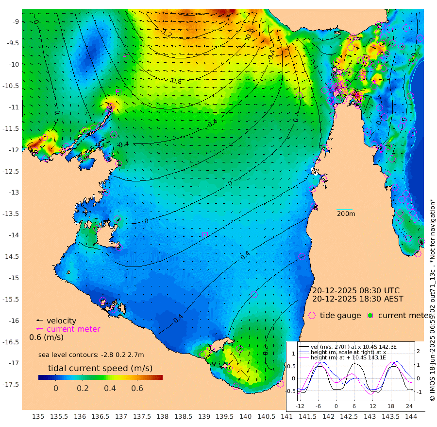 33cm/s -83T +3cm/s rms + 7cm/s -42T. ARA-GOC87 57m 14cm/s -120T +3cm/s rms + 2cm/s -2T. ARA-GOC87 60m 30cm/s -88T +2cm/s rms + 3cm/s 61T. ARA-GOC87 47m -38cm Daru -45cm Bobo Island -5cm Meer Island Barge -19cm Bramble Cay -32cm Unnamed Cay -39cm Pearce Cay -27cm Stephens Island -34cm Merrie England Shoals -45cm Mutacomal Reef -25cm Darnley Island Barge -4cm East Cay -34cm Yorke Island Barge -34cm Rennel Island -42cm Aureed Island -31cm Dungeness Reef -42cm Zagai Island -29cm Yam Island -8cm Dauan Island -18cm Saibai Island 13cm Phipi Reef -29cm Warrior Reef - West -17cm Mabuiag Island Barge -34cm Half Way Island -49cm Coconut Island -37cm Dugong Islet -44cm Poll Island -28cm Kirkcaldie Reef -39cm Suarji Island -41cm Sue Islet 19cm Hawkesbury Island -35cm Alert Patches -41cm Twin Island 12cm Badu Island -39cm St Pauls (Moa Island) 1cm Kubin (Moa Island) -24cm Ince Point -16cm Thursday Island -18cm Nardana Patches 4cm Turtle Head 10cm Round Island 20cm Goods Island 24cm Booby Island 14cm White Rocks Area -11cm Carpentaria -32cm Papou Point 6cm Bampfield Head 25cm Crab Island 13cm Red Wallis Island 7cm Packe Island -49cm Harrington Reef 37cm Herald Camp -11cm Sharp Point 15cm Red Island Point -16cm Possession Island -51cm Alpha Rock -46cm Frederick Point -58cm Wyborn Reef Light -60cm Tetley Island -16cm Triangle Reef -52cm Turtle Head Island -3cm Maclennan Cay 8cm Raine Island -34cm Mcsweeny Reef -27cm Collette Reef -7cm Shadwell Reef -29cm Hannibal Island -22cm Round Point 16cm Vrilya Point -13cm Cape Grenville -4cm Hicks Island -2cm Sir Charles Hardy Island -2cm Harvey Island -6cm Kay Reef 5cm Rocky Island 1cm Chapman Island 4cm Ham Reef 3cm Jubilee Reef 0cm Night Island 1cm Unnamed Reef No. 3 4cm Morris Island 8cm 1st 3 Mile Opening 4cm Creech Reef -3cm Fife Island 6cm Eden Reef 4cm Stanley Island 3cm Normanby River -8cm Yabooma Island -17cm Hutchison River -14cm Elcho Island -3cm North West Crocodile Island -68cm Cape Wessel -47cm Stevens Island -70cm Guluwuru Island -31cm Hopeful Bay -51cm Auster Point -46cm Two Island Bay -43cm Cadell Strait -169cm Mallison Island -57cm Melville Bay (Gove Harbour) -72cm Truant Island -49cm Cape Arnhem -17cm Cape Grey -10cm Hawk Island 5cm Milner Bay (Groote Eylandt) 20cm Cape Beatrice 39cm West Island 38cm Centre Island 90cm Mornington Island 81cm West Wellesley Islands 136cm Bountiful Island 142cm Albert River Mouth 134cm Sweers Island 156cm Karumba 101cm Nassau River Offshore 84cm Christmas Creek 55cm Archer River 32cm Boyd Point 52cm Weipa (Humbug Point) 18cm Pennefather River 24cm Cullen Point