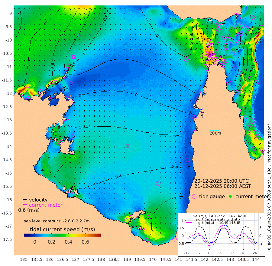 13cm/s 131T +3cm/s rms + 7cm/s -42T. ARA-GOC87 57m 21cm/s 15T +3cm/s rms + 2cm/s -2T. ARA-GOC87 60m 19cm/s 132T +2cm/s rms + 3cm/s 61T. ARA-GOC87 47m -110cm Daru -103cm Bobo Island -36cm Meer Island Barge -65cm Bramble Cay -91cm Unnamed Cay -93cm Pearce Cay -76cm Stephens Island -89cm Merrie England Shoals -114cm Mutacomal Reef -71cm Darnley Island Barge -45cm East Cay -89cm Yorke Island Barge -93cm Rennel Island -98cm Aureed Island -106cm Dungeness Reef -114cm Zagai Island -113cm Yam Island -116cm Dauan Island -116cm Saibai Island -134cm Phipi Reef -133cm Warrior Reef - West -74cm Mabuiag Island Barge -85cm Half Way Island -104cm Coconut Island -97cm Dugong Islet -106cm Poll Island -103cm Kirkcaldie Reef -113cm Suarji Island -108cm Sue Islet -4cm Hawkesbury Island -93cm Alert Patches -95cm Twin Island -21cm Badu Island -98cm St Pauls (Moa Island) -26cm Kubin (Moa Island) -70cm Ince Point -51cm Thursday Island -57cm Nardana Patches -36cm Turtle Head -14cm Round Island 8cm Goods Island 42cm Booby Island 29cm White Rocks Area 68cm Carpentaria -77cm Papou Point 44cm Bampfield Head 40cm Crab Island 29cm Red Wallis Island -18cm Packe Island -103cm Harrington Reef 3cm Herald Camp -38cm Sharp Point -36cm Red Island Point -57cm Possession Island -93cm Alpha Rock -101cm Frederick Point -106cm Wyborn Reef Light -108cm Tetley Island -48cm Triangle Reef -83cm Turtle Head Island -38cm Maclennan Cay -16cm Raine Island -82cm Mcsweeny Reef -77cm Collette Reef -45cm Shadwell Reef -80cm Hannibal Island -65cm Round Point 53cm Vrilya Point -55cm Cape Grenville -47cm Hicks Island -53cm Sir Charles Hardy Island -16cm Harvey Island -43cm Kay Reef -31cm Rocky Island -31cm Chapman Island -23cm Ham Reef -25cm Jubilee Reef -27cm Night Island -25cm Unnamed Reef No. 3 -27cm Morris Island -14cm 1st 3 Mile Opening -23cm Creech Reef -30cm Fife Island -23cm Eden Reef -26cm Stanley Island -31cm Normanby River 89cm Yabooma Island 92cm Hutchison River 94cm Elcho Island 85cm North West Crocodile Island 52cm Cape Wessel 69cm Stevens Island 20cm Guluwuru Island 62cm Hopeful Bay 63cm Auster Point 71cm Two Island Bay 59cm Cadell Strait -78cm Mallison Island 19cm Melville Bay (Gove Harbour) 27cm Truant Island 10cm Cape Arnhem -1cm Cape Grey -15cm Hawk Island -5cm Milner Bay (Groote Eylandt) -17cm Cape Beatrice -28cm West Island -26cm Centre Island -89cm Mornington Island -90cm West Wellesley Islands -117cm Bountiful Island -99cm Albert River Mouth -100cm Sweers Island -111cm Karumba -96cm Nassau River Offshore -79cm Christmas Creek -27cm Archer River -4cm Boyd Point -6cm Weipa (Humbug Point) 24cm Pennefather River 31cm Cullen Point