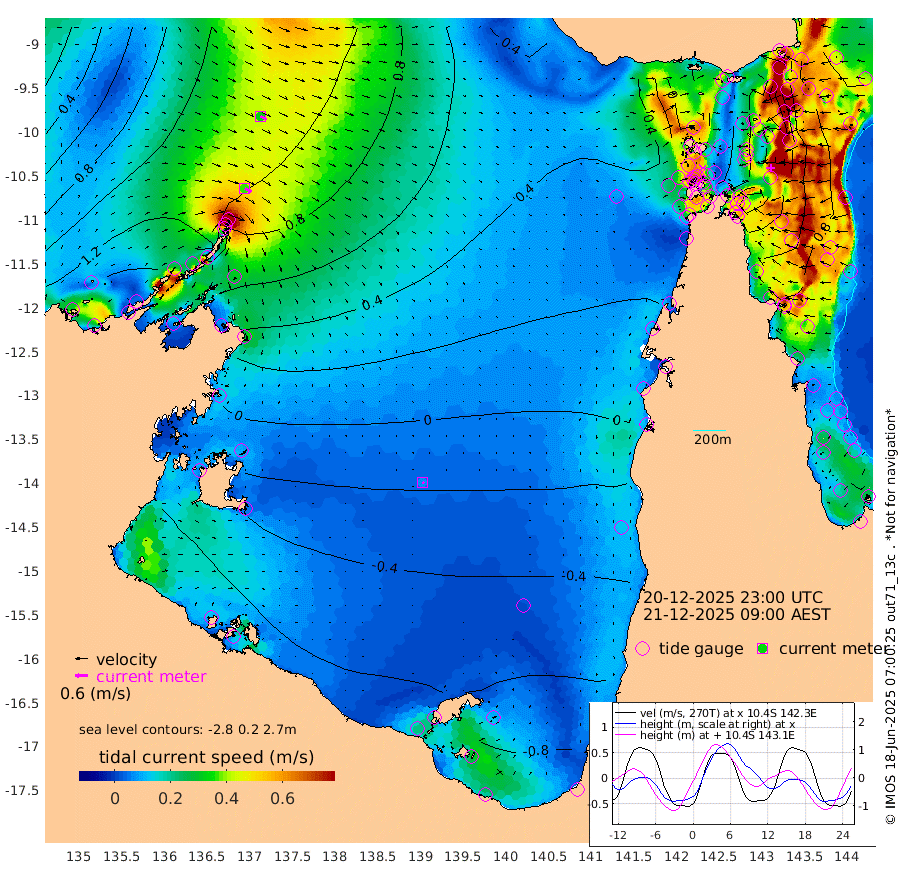 36cm/s 121T +3cm/s rms + 7cm/s -42T. ARA-GOC87 57m 7cm/s 135T +3cm/s rms + 2cm/s -2T. ARA-GOC87 60m 33cm/s 117T +2cm/s rms + 3cm/s 61T. ARA-GOC87 47m 56cm Daru 61cm Bobo Island 79cm Meer Island Barge 88cm Bramble Cay 83cm Unnamed Cay 72cm Pearce Cay 81cm Stephens Island 90cm Merrie England Shoals 67cm Mutacomal Reef 76cm Darnley Island Barge 82cm East Cay 63cm Yorke Island Barge 69cm Rennel Island 53cm Aureed Island 47cm Dungeness Reef 10cm Zagai Island 14cm Yam Island -23cm Dauan Island -29cm Saibai Island -17cm Phipi Reef -2cm Warrior Reef - West 1cm Mabuiag Island Barge 68cm Half Way Island 53cm Coconut Island 58cm Dugong Islet 33cm Poll Island 40cm Kirkcaldie Reef 8cm Suarji Island 25cm Sue Islet 80cm Hawkesbury Island 29cm Alert Patches 28cm Twin Island 58cm Badu Island 14cm St Pauls (Moa Island) 60cm Kubin (Moa Island) 29cm Ince Point 36cm Thursday Island 33cm Nardana Patches 51cm Turtle Head 70cm Round Island 79cm Goods Island 85cm Booby Island 82cm White Rocks Area 69cm Carpentaria 23cm Papou Point 114cm Bampfield Head 67cm Crab Island 73cm Red Wallis Island 65cm Packe Island 58cm Harrington Reef 75cm Herald Camp -13cm Sharp Point 37cm Red Island Point 43cm Possession Island 28cm Alpha Rock 39cm Frederick Point 69cm Wyborn Reef Light 61cm Tetley Island 64cm Triangle Reef 88cm Turtle Head Island 73cm Maclennan Cay 77cm Raine Island 72cm Mcsweeny Reef 74cm Collette Reef 74cm Shadwell Reef 86cm Hannibal Island 92cm Round Point 62cm Vrilya Point 85cm Cape Grenville 82cm Hicks Island 82cm Sir Charles Hardy Island 24cm Harvey Island 89cm Kay Reef 78cm Rocky Island 76cm Chapman Island 74cm Ham Reef 78cm Jubilee Reef 70cm Night Island 74cm Unnamed Reef No. 3 85cm Morris Island 85cm 1st 3 Mile Opening 80cm Creech Reef 69cm Fife Island 100cm Eden Reef 88cm Stanley Island 92cm Normanby River 151cm Yabooma Island 184cm Hutchison River 151cm Elcho Island 135cm North West Crocodile Island 107cm Cape Wessel 143cm Stevens Island 114cm Guluwuru Island 127cm Hopeful Bay 121cm Auster Point 123cm Two Island Bay 148cm Cadell Strait 116cm Mallison Island 94cm Melville Bay (Gove Harbour) 106cm Truant Island 59cm Cape Arnhem 18cm Cape Grey -1cm Hawk Island -48cm Milner Bay (Groote Eylandt) -59cm Cape Beatrice -115cm West Island -111cm Centre Island -127cm Mornington Island -129cm West Wellesley Islands -151cm Bountiful Island -163cm Albert River Mouth -181cm Sweers Island -167cm Karumba -96cm Nassau River Offshore -48cm Christmas Creek 8cm Archer River 27cm Boyd Point 30cm Weipa (Humbug Point) 41cm Pennefather River 47cm Cullen Point