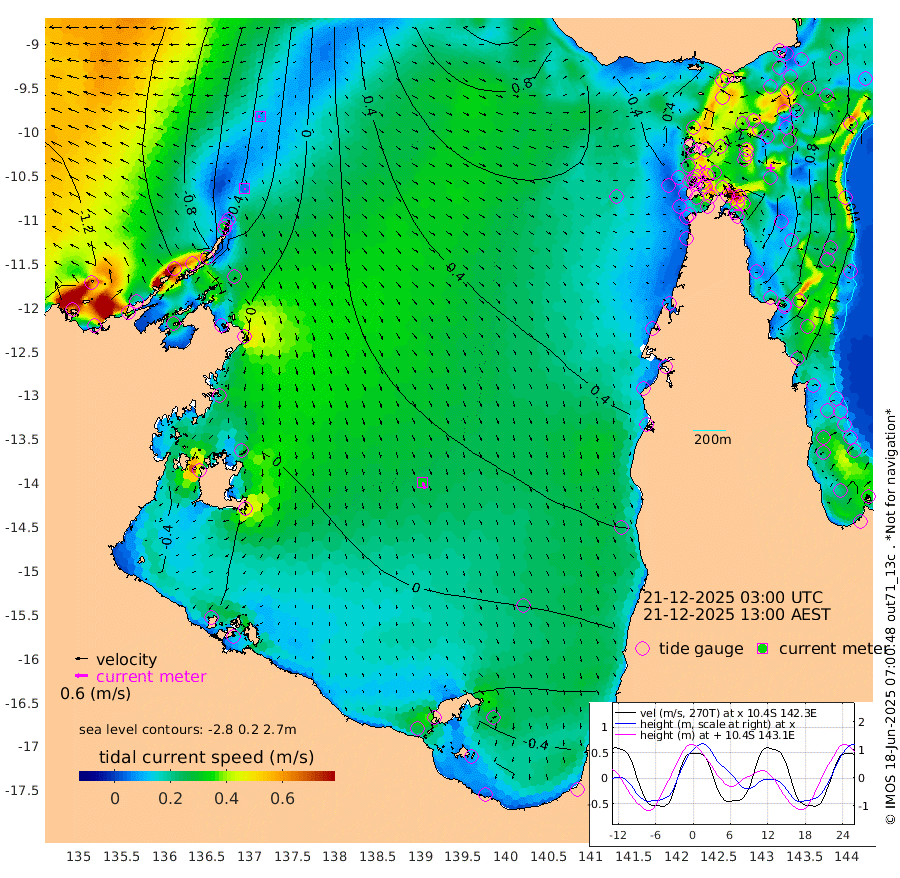 5cm/s 162T +3cm/s rms + 7cm/s -42T. ARA-GOC87 57m 32cm/s 164T +3cm/s rms + 2cm/s -2T. ARA-GOC87 60m 9cm/s -106T +2cm/s rms + 3cm/s 61T. ARA-GOC87 47m 128cm Daru 120cm Bobo Island 57cm Meer Island Barge 79cm Bramble Cay 109cm Unnamed Cay 112cm Pearce Cay 97cm Stephens Island 104cm Merrie England Shoals 132cm Mutacomal Reef 92cm Darnley Island Barge 64cm East Cay 110cm Yorke Island Barge 117cm Rennel Island 119cm Aureed Island 128cm Dungeness Reef 142cm Zagai Island 142cm Yam Island 152cm Dauan Island 149cm Saibai Island 144cm Phipi Reef 155cm Warrior Reef - West 128cm Mabuiag Island Barge 108cm Half Way Island 134cm Coconut Island 124cm Dugong Islet 138cm Poll Island 131cm Kirkcaldie Reef 153cm Suarji Island 138cm Sue Islet 115cm Hawkesbury Island 148cm Alert Patches 147cm Twin Island 114cm Badu Island 150cm St Pauls (Moa Island) 119cm Kubin (Moa Island) 136cm Ince Point 128cm Thursday Island 130cm Nardana Patches 122cm Turtle Head 116cm Round Island 102cm Goods Island 89cm Booby Island 91cm White Rocks Area 76cm Carpentaria 126cm Papou Point 119cm Bampfield Head 69cm Crab Island 96cm Red Wallis Island 120cm Packe Island 134cm Harrington Reef 119cm Herald Camp 43cm Sharp Point 100cm Red Island Point 127cm Possession Island 140cm Alpha Rock 144cm Frederick Point 138cm Wyborn Reef Light 144cm Tetley Island 75cm Triangle Reef 126cm Turtle Head Island 64cm Maclennan Cay 40cm Raine Island 105cm Mcsweeny Reef 97cm Collette Reef 66cm Shadwell Reef 98cm Hannibal Island 85cm Round Point 58cm Vrilya Point 76cm Cape Grenville 67cm Hicks Island 80cm Sir Charles Hardy Island 22cm Harvey Island 62cm Kay Reef 51cm Rocky Island 54cm Chapman Island 48cm Ham Reef 48cm Jubilee Reef 48cm Night Island 50cm Unnamed Reef No. 3 48cm Morris Island 44cm 1st 3 Mile Opening 49cm Creech Reef 53cm Fife Island 44cm Eden Reef 48cm Stanley Island 47cm Normanby River -101cm Yabooma Island -109cm Hutchison River -112cm Elcho Island -115cm North West Crocodile Island -32cm Cape Wessel -77cm Stevens Island -6cm Guluwuru Island -73cm Hopeful Bay -52cm Auster Point -61cm Two Island Bay -72cm Cadell Strait 117cm Mallison Island -14cm Melville Bay (Gove Harbour) -6cm Truant Island -1cm Cape Arnhem -24cm Cape Grey -22cm Hawk Island -59cm Milner Bay (Groote Eylandt) -57cm Cape Beatrice -67cm West Island -65cm Centre Island -50cm Mornington Island -46cm West Wellesley Islands -74cm Bountiful Island -134cm Albert River Mouth -146cm Sweers Island -116cm Karumba -10cm Nassau River Offshore 35cm Christmas Creek 45cm Archer River 62cm Boyd Point 56cm Weipa (Humbug Point) 43cm Pennefather River 67cm Cullen Point