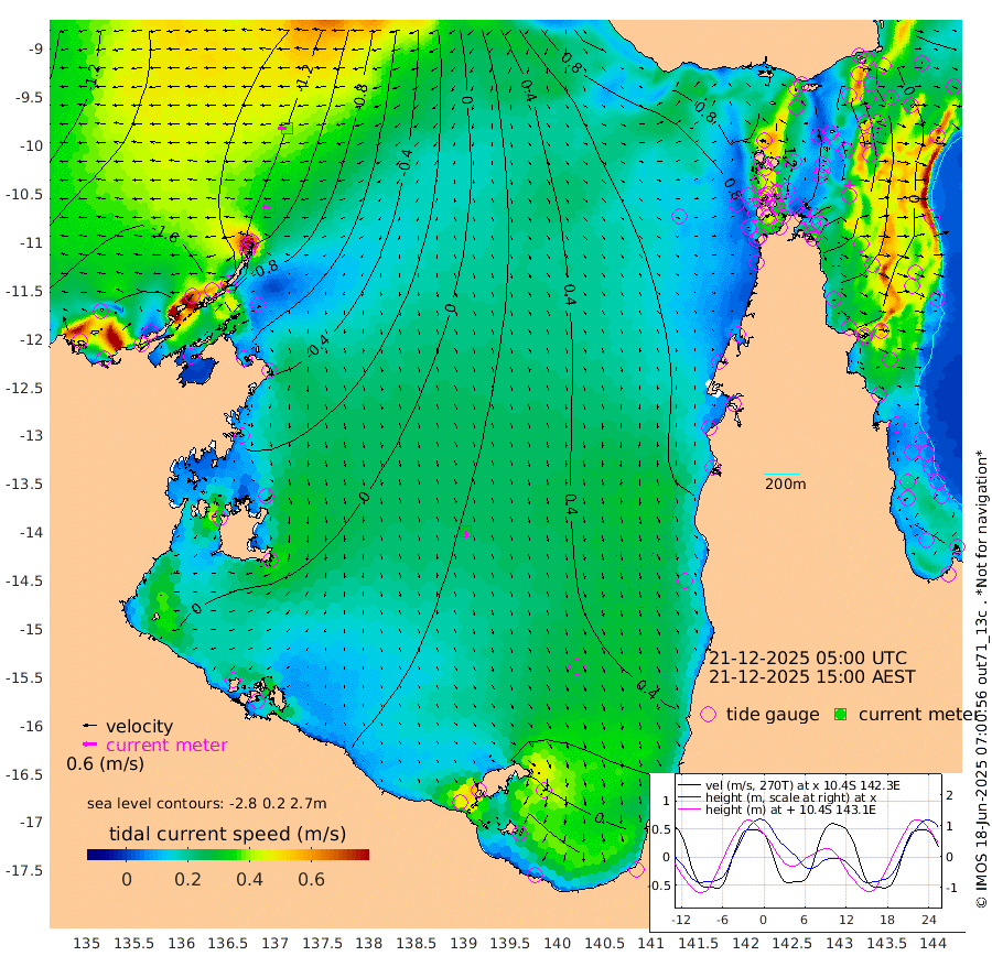 30cm/s -87T +3cm/s rms + 7cm/s -42T. ARA-GOC87 57m 29cm/s 171T +3cm/s rms + 2cm/s -2T. ARA-GOC87 60m 38cm/s -92T +2cm/s rms + 3cm/s 61T. ARA-GOC87 47m 44cm Daru 33cm Bobo Island 0cm Meer Island Barge -1cm Bramble Cay 17cm Unnamed Cay 25cm Pearce Cay 16cm Stephens Island 8cm Merrie England Shoals 36cm Mutacomal Reef 16cm Darnley Island Barge 4cm East Cay 31cm Yorke Island Barge 35cm Rennel Island 42cm Aureed Island 57cm Dungeness Reef 86cm Zagai Island 91cm Yam Island 135cm Dauan Island 129cm Saibai Island 124cm Phipi Reef 107cm Warrior Reef - West 110cm Mabuiag Island Barge 29cm Half Way Island 54cm Coconut Island 46cm Dugong Islet 71cm Poll Island 69cm Kirkcaldie Reef 105cm Suarji Island 76cm Sue Islet 108cm Hawkesbury Island 100cm Alert Patches 96cm Twin Island 104cm Badu Island 106cm St Pauls (Moa Island) 103cm Kubin (Moa Island) 104cm Ince Point 105cm Thursday Island 105cm Nardana Patches 108cm Turtle Head 106cm Round Island 99cm Goods Island 102cm Booby Island 93cm White Rocks Area 93cm Carpentaria 85cm Papou Point 116cm Bampfield Head 86cm Crab Island 105cm Red Wallis Island 111cm Packe Island 50cm Harrington Reef 133cm Herald Camp 35cm Sharp Point 94cm Red Island Point 97cm Possession Island 81cm Alpha Rock 78cm Frederick Point 42cm Wyborn Reef Light 51cm Tetley Island 20cm Triangle Reef 31cm Turtle Head Island 13cm Maclennan Cay -1cm Raine Island 24cm Mcsweeny Reef 19cm Collette Reef 9cm Shadwell Reef 10cm Hannibal Island 3cm Round Point 78cm Vrilya Point 6cm Cape Grenville 6cm Hicks Island 19cm Sir Charles Hardy Island 3cm Harvey Island -3cm Kay Reef 2cm Rocky Island 6cm Chapman Island 6cm Ham Reef 0cm Jubilee Reef 4cm Night Island 6cm Unnamed Reef No. 3 -3cm Morris Island -1cm 1st 3 Mile Opening 3cm Creech Reef 7cm Fife Island -15cm Eden Reef -5cm Stanley Island -12cm Normanby River -184cm Yabooma Island -217cm Hutchison River -197cm Elcho Island -189cm North West Crocodile Island -120cm Cape Wessel -180cm Stevens Island -112cm Guluwuru Island -158cm Hopeful Bay -138cm Auster Point -143cm Two Island Bay -182cm Cadell Strait -71cm Mallison Island -102cm Melville Bay (Gove Harbour) -103cm Truant Island -63cm Cape Arnhem -56cm Cape Grey -43cm Hawk Island -48cm Milner Bay (Groote Eylandt) -36cm Cape Beatrice -10cm West Island -8cm Centre Island 12cm Mornington Island 13cm West Wellesley Islands 3cm Bountiful Island -54cm Albert River Mouth -62cm Sweers Island -26cm Karumba 46cm Nassau River Offshore 76cm Christmas Creek 70cm Archer River 80cm Boyd Point 80cm Weipa (Humbug Point) 56cm Pennefather River 92cm Cullen Point