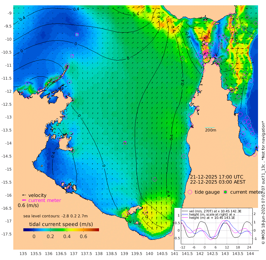 14cm/s 28T +3cm/s rms + 7cm/s -42T. ARA-GOC87 57m 29cm/s 12T +3cm/s rms + 2cm/s -2T. ARA-GOC87 60m 15cm/s 47T +2cm/s rms + 3cm/s 61T. ARA-GOC87 47m -90cm Daru -83cm Bobo Island -90cm Meer Island Barge -101cm Bramble Cay -103cm Unnamed Cay -94cm Pearce Cay -99cm Stephens Island -104cm Merrie England Shoals -94cm Mutacomal Reef -93cm Darnley Island Barge -98cm East Cay -87cm Yorke Island Barge -95cm Rennel Island -79cm Aureed Island -92cm Dungeness Reef -56cm Zagai Island -72cm Yam Island -66cm Dauan Island -45cm Saibai Island -92cm Phipi Reef -69cm Warrior Reef - West -53cm Mabuiag Island Barge -92cm Half Way Island -80cm Coconut Island -90cm Dugong Islet -72cm Poll Island -87cm Kirkcaldie Reef -65cm Suarji Island -64cm Sue Islet -134cm Hawkesbury Island -77cm Alert Patches -71cm Twin Island -110cm Badu Island -64cm St Pauls (Moa Island) -111cm Kubin (Moa Island) -77cm Ince Point -83cm Thursday Island -81cm Nardana Patches -107cm Turtle Head -122cm Round Island -126cm Goods Island -120cm Booby Island -114cm White Rocks Area -60cm Carpentaria -62cm Papou Point -138cm Bampfield Head -98cm Crab Island -109cm Red Wallis Island -120cm Packe Island -85cm Harrington Reef -149cm Herald Camp -7cm Sharp Point -94cm Red Island Point -89cm Possession Island -57cm Alpha Rock -75cm Frederick Point -85cm Wyborn Reef Light -79cm Tetley Island -79cm Triangle Reef -98cm Turtle Head Island -91cm Maclennan Cay -87cm Raine Island -89cm Mcsweeny Reef -91cm Collette Reef -89cm Shadwell Reef -101cm Hannibal Island -105cm Round Point -77cm Vrilya Point -100cm Cape Grenville -101cm Hicks Island -108cm Sir Charles Hardy Island -31cm Harvey Island -99cm Kay Reef -94cm Rocky Island -89cm Chapman Island -85cm Ham Reef -89cm Jubilee Reef -82cm Night Island -85cm Unnamed Reef No. 3 -96cm Morris Island -95cm 1st 3 Mile Opening -93cm Creech Reef -81cm Fife Island -109cm Eden Reef -99cm Stanley Island -103cm Normanby River -58cm Yabooma Island -72cm Hutchison River -46cm Elcho Island -45cm North West Crocodile Island 1cm Cape Wessel -26cm Stevens Island -15cm Guluwuru Island -32cm Hopeful Bay -17cm Auster Point -20cm Two Island Bay -40cm Cadell Strait 20cm Mallison Island -11cm Melville Bay (Gove Harbour) -8cm Truant Island 2cm Cape Arnhem 16cm Cape Grey 16cm Hawk Island 58cm Milner Bay (Groote Eylandt) 49cm Cape Beatrice 78cm West Island 74cm Centre Island 17cm Mornington Island 26cm West Wellesley Islands 1cm Bountiful Island 30cm Albert River Mouth 56cm Sweers Island 9cm Karumba -37cm Nassau River Offshore -74cm Christmas Creek -83cm Archer River -78cm Boyd Point -98cm Weipa (Humbug Point) -63cm Pennefather River -83cm Cullen Point