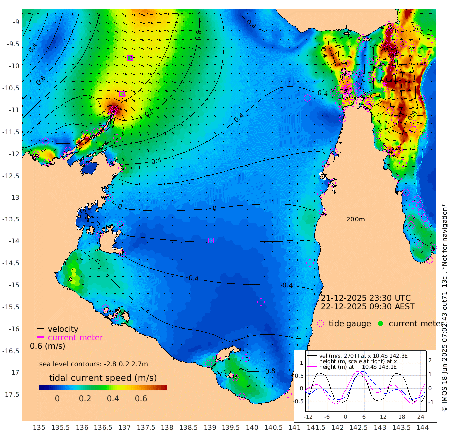 38cm/s 121T +3cm/s rms + 7cm/s -42T. ARA-GOC87 57m 7cm/s 137T +3cm/s rms + 2cm/s -2T. ARA-GOC87 60m 35cm/s 118T +2cm/s rms + 3cm/s 61T. ARA-GOC87 47m 58cm Daru 63cm Bobo Island 80cm Meer Island Barge 88cm Bramble Cay 84cm Unnamed Cay 76cm Pearce Cay 83cm Stephens Island 88cm Merrie England Shoals 68cm Mutacomal Reef 77cm Darnley Island Barge 82cm East Cay 66cm Yorke Island Barge 71cm Rennel Island 56cm Aureed Island 53cm Dungeness Reef 16cm Zagai Island 22cm Yam Island -13cm Dauan Island -23cm Saibai Island -12cm Phipi Reef 4cm Warrior Reef - West 7cm Mabuiag Island Barge 73cm Half Way Island 55cm Coconut Island 64cm Dugong Islet 39cm Poll Island 45cm Kirkcaldie Reef 16cm Suarji Island 29cm Sue Islet 89cm Hawkesbury Island 35cm Alert Patches 35cm Twin Island 67cm Badu Island 22cm St Pauls (Moa Island) 70cm Kubin (Moa Island) 37cm Ince Point 44cm Thursday Island 41cm Nardana Patches 60cm Turtle Head 75cm Round Island 89cm Goods Island 95cm Booby Island 94cm White Rocks Area 75cm Carpentaria 31cm Papou Point 119cm Bampfield Head 74cm Crab Island 84cm Red Wallis Island 74cm Packe Island 63cm Harrington Reef 82cm Herald Camp -12cm Sharp Point 44cm Red Island Point 47cm Possession Island 32cm Alpha Rock 44cm Frederick Point 69cm Wyborn Reef Light 62cm Tetley Island 65cm Triangle Reef 91cm Turtle Head Island 75cm Maclennan Cay 77cm Raine Island 73cm Mcsweeny Reef 73cm Collette Reef 73cm Shadwell Reef 84cm Hannibal Island 91cm Round Point 67cm Vrilya Point 83cm Cape Grenville 83cm Hicks Island 84cm Sir Charles Hardy Island 25cm Harvey Island 87cm Kay Reef 77cm Rocky Island 74cm Chapman Island 73cm Ham Reef 78cm Jubilee Reef 69cm Night Island 73cm Unnamed Reef No. 3 84cm Morris Island 87cm 1st 3 Mile Opening 80cm Creech Reef 68cm Fife Island 101cm Eden Reef 87cm Stanley Island 92cm Normanby River 165cm Yabooma Island 198cm Hutchison River 162cm Elcho Island 146cm North West Crocodile Island 115cm Cape Wessel 149cm Stevens Island 119cm Guluwuru Island 131cm Hopeful Bay 128cm Auster Point 132cm Two Island Bay 160cm Cadell Strait 96cm Mallison Island 98cm Melville Bay (Gove Harbour) 110cm Truant Island 61cm Cape Arnhem 19cm Cape Grey -5cm Hawk Island -50cm Milner Bay (Groote Eylandt) -61cm Cape Beatrice -118cm West Island -116cm Centre Island -133cm Mornington Island -132cm West Wellesley Islands -155cm Bountiful Island -167cm Albert River Mouth -191cm Sweers Island -175cm Karumba -99cm Nassau River Offshore -49cm Christmas Creek 7cm Archer River 29cm Boyd Point 33cm Weipa (Humbug Point) 40cm Pennefather River 51cm Cullen Point