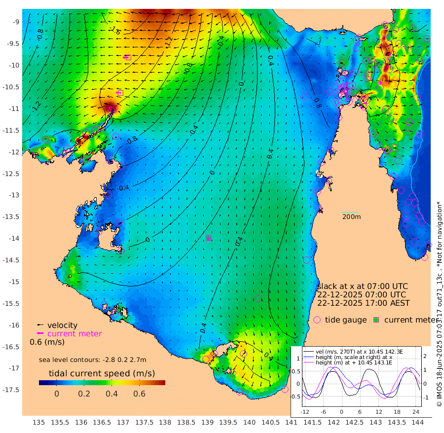 47cm/s -85T +3cm/s rms + 7cm/s -42T. ARA-GOC87 57m 23cm/s -175T +3cm/s rms + 2cm/s -2T. ARA-GOC87 60m 52cm/s -93T +2cm/s rms + 3cm/s 61T. ARA-GOC87 47m -18cm Daru -30cm Bobo Island -24cm Meer Island Barge -38cm Bramble Cay -36cm Unnamed Cay -33cm Pearce Cay -31cm Stephens Island -43cm Merrie England Shoals -28cm Mutacomal Reef -29cm Darnley Island Barge -21cm East Cay -25cm Yorke Island Barge -21cm Rennel Island -18cm Aureed Island -3cm Dungeness Reef 17cm Zagai Island 28cm Yam Island 74cm Dauan Island 66cm Saibai Island 73cm Phipi Reef 37cm Warrior Reef - West 58cm Mabuiag Island Barge -24cm Half Way Island -12cm Coconut Island -14cm Dugong Islet 5cm Poll Island 10cm Kirkcaldie Reef 36cm Suarji Island 8cm Sue Islet 85cm Hawkesbury Island 37cm Alert Patches 30cm Twin Island 74cm Badu Island 39cm St Pauls (Moa Island) 71cm Kubin (Moa Island) 51cm Ince Point 60cm Thursday Island 58cm Nardana Patches 74cm Turtle Head 81cm Round Island 82cm Goods Island 95cm Booby Island 80cm White Rocks Area 83cm Carpentaria 29cm Papou Point 95cm Bampfield Head 86cm Crab Island 94cm Red Wallis Island 87cm Packe Island -17cm Harrington Reef 122cm Herald Camp 16cm Sharp Point 70cm Red Island Point 52cm Possession Island 15cm Alpha Rock 11cm Frederick Point -29cm Wyborn Reef Light -21cm Tetley Island -11cm Triangle Reef -36cm Turtle Head Island -12cm Maclennan Cay -13cm Raine Island -28cm Mcsweeny Reef -27cm Collette Reef -19cm Shadwell Reef -37cm Hannibal Island -35cm Round Point 80cm Vrilya Point -25cm Cape Grenville -20cm Hicks Island -11cm Sir Charles Hardy Island -5cm Harvey Island -26cm Kay Reef -14cm Rocky Island -12cm Chapman Island -10cm Ham Reef -17cm Jubilee Reef -11cm Night Island -10cm Unnamed Reef No. 3 -19cm Morris Island -16cm 1st 3 Mile Opening -13cm Creech Reef -12cm Fife Island -29cm Eden Reef -20cm Stanley Island -29cm Normanby River -172cm Yabooma Island -209cm Hutchison River -181cm Elcho Island -168cm North West Crocodile Island -146cm Cape Wessel -188cm Stevens Island -154cm Guluwuru Island -157cm Hopeful Bay -154cm Auster Point -153cm Two Island Bay -198cm Cadell Strait -181cm Mallison Island -134cm Melville Bay (Gove Harbour) -143cm Truant Island -91cm Cape Arnhem -68cm Cape Grey -47cm Hawk Island -34cm Milner Bay (Groote Eylandt) -16cm Cape Beatrice 23cm West Island 26cm Centre Island 56cm Mornington Island 49cm West Wellesley Islands 60cm Bountiful Island 25cm Albert River Mouth 17cm Sweers Island 57cm Karumba 85cm Nassau River Offshore 98cm Christmas Creek 82cm Archer River 80cm Boyd Point 89cm Weipa (Humbug Point) 60cm Pennefather River 94cm Cullen Point