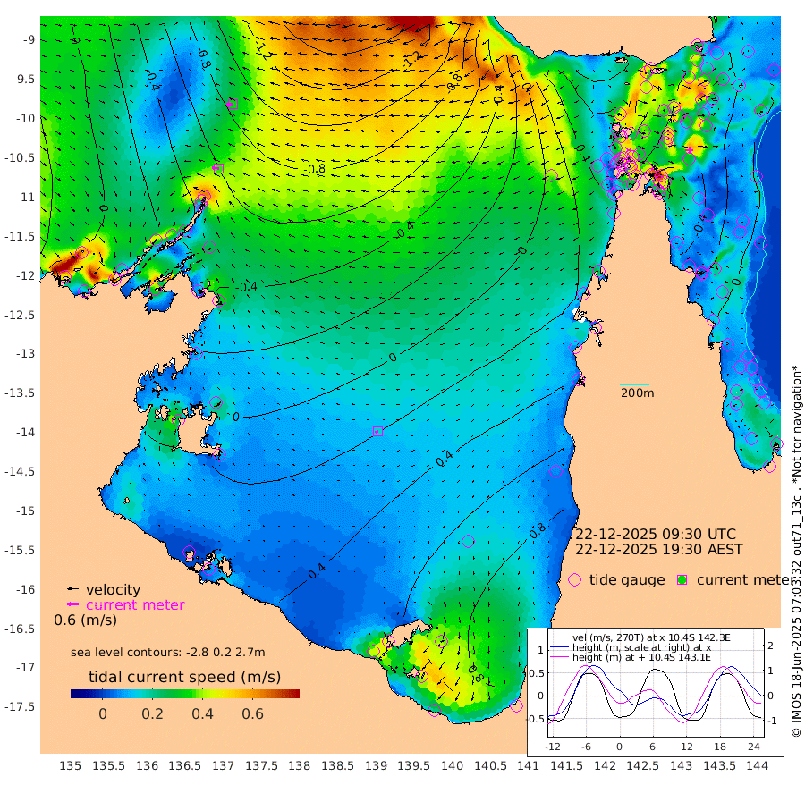 36cm/s -86T +3cm/s rms + 7cm/s -42T. ARA-GOC87 57m 16cm/s -116T +3cm/s rms + 2cm/s -2T. ARA-GOC87 60m 33cm/s -90T +2cm/s rms + 3cm/s 61T. ARA-GOC87 47m -45cm Daru -48cm Bobo Island -10cm Meer Island Barge -24cm Bramble Cay -40cm Unnamed Cay -38cm Pearce Cay -31cm Stephens Island -40cm Merrie England Shoals -51cm Mutacomal Reef -30cm Darnley Island Barge -7cm East Cay -40cm Yorke Island Barge -39cm Rennel Island -42cm Aureed Island -33cm Dungeness Reef -49cm Zagai Island -36cm Yam Island -18cm Dauan Island -31cm Saibai Island 12cm Phipi Reef -36cm Warrior Reef - West -25cm Mabuiag Island Barge -37cm Half Way Island -51cm Coconut Island -41cm Dugong Islet -46cm Poll Island -33cm Kirkcaldie Reef -38cm Suarji Island -50cm Sue Islet 22cm Hawkesbury Island -35cm Alert Patches -42cm Twin Island 9cm Badu Island -41cm St Pauls (Moa Island) 5cm Kubin (Moa Island) -25cm Ince Point -15cm Thursday Island -18cm Nardana Patches 6cm Turtle Head 17cm Round Island 24cm Goods Island 29cm Booby Island 20cm White Rocks Area -7cm Carpentaria -35cm Papou Point 13cm Bampfield Head 30cm Crab Island 21cm Red Wallis Island 16cm Packe Island -51cm Harrington Reef 46cm Herald Camp -12cm Sharp Point 16cm Red Island Point -11cm Possession Island -55cm Alpha Rock -48cm Frederick Point -64cm Wyborn Reef Light -65cm Tetley Island -18cm Triangle Reef -56cm Turtle Head Island -7cm Maclennan Cay 3cm Raine Island -40cm Mcsweeny Reef -33cm Collette Reef -13cm Shadwell Reef -34cm Hannibal Island -25cm Round Point 21cm Vrilya Point -16cm Cape Grenville -8cm Hicks Island -10cm Sir Charles Hardy Island -3cm Harvey Island -11cm Kay Reef 1cm Rocky Island -1cm Chapman Island -1cm Ham Reef -3cm Jubilee Reef -1cm Night Island -2cm Unnamed Reef No. 3 0cm Morris Island 2cm 1st 3 Mile Opening 1cm Creech Reef -7cm Fife Island 3cm Eden Reef 0cm Stanley Island -1cm Normanby River -16cm Yabooma Island -26cm Hutchison River -19cm Elcho Island -7cm North West Crocodile Island -80cm Cape Wessel -58cm Stevens Island -94cm Guluwuru Island -36cm Hopeful Bay -60cm Auster Point -54cm Two Island Bay -58cm Cadell Strait -223cm Mallison Island -73cm Melville Bay (Gove Harbour) -89cm Truant Island -61cm Cape Arnhem -30cm Cape Grey -10cm Hawk Island 5cm Milner Bay (Groote Eylandt) 22cm Cape Beatrice 44cm West Island 48cm Centre Island 101cm Mornington Island 88cm West Wellesley Islands 140cm Bountiful Island 151cm Albert River Mouth 149cm Sweers Island 171cm Karumba 111cm Nassau River Offshore 91cm Christmas Creek 61cm Archer River 35cm Boyd Point 56cm Weipa (Humbug Point) 24cm Pennefather River 31cm Cullen Point