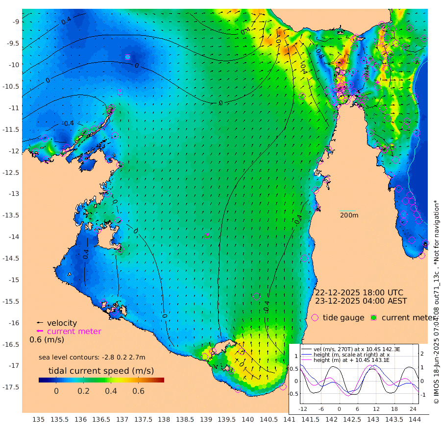 12cm/s 15T +3cm/s rms + 7cm/s -42T. ARA-GOC87 57m 31cm/s 14T +3cm/s rms + 2cm/s -2T. ARA-GOC87 60m 11cm/s 45T +2cm/s rms + 3cm/s 61T. ARA-GOC87 47m -101cm Daru -94cm Bobo Island -89cm Meer Island Barge -103cm Bramble Cay -110cm Unnamed Cay -105cm Pearce Cay -105cm Stephens Island -109cm Merrie England Shoals -105cm Mutacomal Reef -98cm Darnley Island Barge -96cm East Cay -95cm Yorke Island Barge -103cm Rennel Island -90cm Aureed Island -104cm Dungeness Reef -70cm Zagai Island -85cm Yam Island -82cm Dauan Island -57cm Saibai Island -107cm Phipi Reef -86cm Warrior Reef - West -57cm Mabuiag Island Barge -101cm Half Way Island -89cm Coconut Island -102cm Dugong Islet -86cm Poll Island -97cm Kirkcaldie Reef -77cm Suarji Island -74cm Sue Islet -121cm Hawkesbury Island -84cm Alert Patches -80cm Twin Island -102cm Badu Island -75cm St Pauls (Moa Island) -108cm Kubin (Moa Island) -81cm Ince Point -83cm Thursday Island -83cm Nardana Patches -104cm Turtle Head -111cm Round Island -114cm Goods Island -100cm Booby Island -98cm White Rocks Area -35cm Carpentaria -68cm Papou Point -110cm Bampfield Head -80cm Crab Island -94cm Red Wallis Island -115cm Packe Island -95cm Harrington Reef -133cm Herald Camp -12cm Sharp Point -87cm Red Island Point -88cm Possession Island -66cm Alpha Rock -85cm Frederick Point -95cm Wyborn Reef Light -90cm Tetley Island -80cm Triangle Reef -105cm Turtle Head Island -89cm Maclennan Cay -81cm Raine Island -96cm Mcsweeny Reef -95cm Collette Reef -87cm Shadwell Reef -105cm Hannibal Island -107cm Round Point -58cm Vrilya Point -99cm Cape Grenville -100cm Hicks Island -106cm Sir Charles Hardy Island -31cm Harvey Island -95cm Kay Reef -89cm Rocky Island -85cm Chapman Island -79cm Ham Reef -84cm Jubilee Reef -80cm Night Island -79cm Unnamed Reef No. 3 -91cm Morris Island -89cm 1st 3 Mile Opening -87cm Creech Reef -79cm Fife Island -104cm Eden Reef -94cm Stanley Island -99cm Normanby River -65cm Yabooma Island -80cm Hutchison River -52cm Elcho Island -51cm North West Crocodile Island -5cm Cape Wessel -36cm Stevens Island -24cm Guluwuru Island -38cm Hopeful Bay -22cm Auster Point -28cm Two Island Bay -56cm Cadell Strait 0cm Mallison Island -20cm Melville Bay (Gove Harbour) -17cm Truant Island -5cm Cape Arnhem 12cm Cape Grey 10cm Hawk Island 52cm Milner Bay (Groote Eylandt) 42cm Cape Beatrice 72cm West Island 70cm Centre Island 4cm Mornington Island 10cm West Wellesley Islands -15cm Bountiful Island 5cm Albert River Mouth 34cm Sweers Island -12cm Karumba -50cm Nassau River Offshore -79cm Christmas Creek -76cm Archer River -68cm Boyd Point -88cm Weipa (Humbug Point) -50cm Pennefather River -67cm Cullen Point