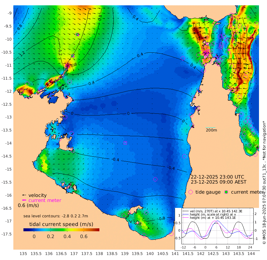 31cm/s 127T +3cm/s rms + 7cm/s -42T. ARA-GOC87 57m 7cm/s 38T +3cm/s rms + 2cm/s -2T. ARA-GOC87 60m 33cm/s 124T +2cm/s rms + 3cm/s 61T. ARA-GOC87 47m -6cm Daru 4cm Bobo Island 46cm Meer Island Barge 38cm Bramble Cay 21cm Unnamed Cay 21cm Pearce Cay 30cm Stephens Island 24cm Merrie England Shoals -1cm Mutacomal Reef 27cm Darnley Island Barge 44cm East Cay 10cm Yorke Island Barge 14cm Rennel Island 3cm Aureed Island -3cm Dungeness Reef -36cm Zagai Island -28cm Yam Island -56cm Dauan Island -64cm Saibai Island -61cm Phipi Reef -51cm Warrior Reef - West -22cm Mabuiag Island Barge 19cm Half Way Island -3cm Coconut Island 9cm Dugong Islet -14cm Poll Island -8cm Kirkcaldie Reef -29cm Suarji Island -24cm Sue Islet 74cm Hawkesbury Island -11cm Alert Patches -11cm Twin Island 51cm Badu Island -22cm St Pauls (Moa Island) 49cm Kubin (Moa Island) 2cm Ince Point 17cm Thursday Island 12cm Nardana Patches 38cm Turtle Head 54cm Round Island 81cm Goods Island 100cm Booby Island 97cm White Rocks Area 91cm Carpentaria -4cm Papou Point 112cm Bampfield Head 79cm Crab Island 86cm Red Wallis Island 55cm Packe Island 5cm Harrington Reef 70cm Herald Camp -25cm Sharp Point 29cm Red Island Point 14cm Possession Island -17cm Alpha Rock -8cm Frederick Point 2cm Wyborn Reef Light -4cm Tetley Island 29cm Triangle Reef 30cm Turtle Head Island 43cm Maclennan Cay 52cm Raine Island 18cm Mcsweeny Reef 19cm Collette Reef 34cm Shadwell Reef 26cm Hannibal Island 39cm Round Point 75cm Vrilya Point 38cm Cape Grenville 43cm Hicks Island 44cm Sir Charles Hardy Island 12cm Harvey Island 47cm Kay Reef 46cm Rocky Island 45cm Chapman Island 47cm Ham Reef 49cm Jubilee Reef 41cm Night Island 46cm Unnamed Reef No. 3 53cm Morris Island 61cm 1st 3 Mile Opening 52cm Creech Reef 37cm Fife Island 68cm Eden Reef 55cm Stanley Island 59cm Normanby River 173cm Yabooma Island 201cm Hutchison River 172cm Elcho Island 159cm North West Crocodile Island 109cm Cape Wessel 142cm Stevens Island 93cm Guluwuru Island 125cm Hopeful Bay 124cm Auster Point 129cm Two Island Bay 148cm Cadell Strait -16cm Mallison Island 77cm Melville Bay (Gove Harbour) 88cm Truant Island 44cm Cape Arnhem 12cm Cape Grey -14cm Hawk Island -40cm Milner Bay (Groote Eylandt) -51cm Cape Beatrice -96cm West Island -94cm Centre Island -132cm Mornington Island -129cm West Wellesley Islands -149cm Bountiful Island -152cm Albert River Mouth -176cm Sweers Island -164cm Karumba -106cm Nassau River Offshore -63cm Christmas Creek -1cm Archer River 23cm Boyd Point 29cm Weipa (Humbug Point) 38cm Pennefather River 54cm Cullen Point