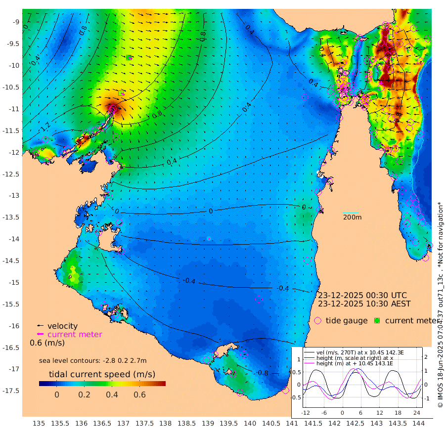 40cm/s 119T +3cm/s rms + 7cm/s -42T. ARA-GOC87 57m 11cm/s 153T +3cm/s rms + 2cm/s -2T. ARA-GOC87 60m 35cm/s 115T +2cm/s rms + 3cm/s 61T. ARA-GOC87 47m 82cm Daru 85cm Bobo Island 88cm Meer Island Barge 99cm Bramble Cay 101cm Unnamed Cay 97cm Pearce Cay 99cm Stephens Island 102cm Merrie England Shoals 90cm Mutacomal Reef 93cm Darnley Island Barge 90cm East Cay 86cm Yorke Island Barge 92cm Rennel Island 78cm Aureed Island 78cm Dungeness Reef 45cm Zagai Island 52cm Yam Island 22cm Dauan Island 10cm Saibai Island 19cm Phipi Reef 38cm Warrior Reef - West 31cm Mabuiag Island Barge 93cm Half Way Island 78cm Coconut Island 89cm Dugong Islet 66cm Poll Island 70cm Kirkcaldie Reef 45cm Suarji Island 56cm Sue Islet 100cm Hawkesbury Island 59cm Alert Patches 61cm Twin Island 83cm Badu Island 51cm St Pauls (Moa Island) 87cm Kubin (Moa Island) 59cm Ince Point 64cm Thursday Island 62cm Nardana Patches 77cm Turtle Head 84cm Round Island 99cm Goods Island 98cm Booby Island 101cm White Rocks Area 71cm Carpentaria 55cm Papou Point 119cm Bampfield Head 74cm Crab Island 90cm Red Wallis Island 87cm Packe Island 86cm Harrington Reef 90cm Herald Camp -3cm Sharp Point 57cm Red Island Point 63cm Possession Island 56cm Alpha Rock 69cm Frederick Point 91cm Wyborn Reef Light 85cm Tetley Island 75cm Triangle Reef 112cm Turtle Head Island 84cm Maclennan Cay 80cm Raine Island 90cm Mcsweeny Reef 87cm Collette Reef 81cm Shadwell Reef 98cm Hannibal Island 102cm Round Point 63cm Vrilya Point 92cm Cape Grenville 92cm Hicks Island 97cm Sir Charles Hardy Island 28cm Harvey Island 92cm Kay Reef 82cm Rocky Island 79cm Chapman Island 77cm Ham Reef 83cm Jubilee Reef 74cm Night Island 77cm Unnamed Reef No. 3 89cm Morris Island 91cm 1st 3 Mile Opening 85cm Creech Reef 74cm Fife Island 104cm Eden Reef 91cm Stanley Island 98cm Normanby River 164cm Yabooma Island 197cm Hutchison River 157cm Elcho Island 142cm North West Crocodile Island 119cm Cape Wessel 149cm Stevens Island 129cm Guluwuru Island 126cm Hopeful Bay 129cm Auster Point 133cm Two Island Bay 168cm Cadell Strait 115cm Mallison Island 105cm Melville Bay (Gove Harbour) 118cm Truant Island 67cm Cape Arnhem 21cm Cape Grey -6cm Hawk Island -55cm Milner Bay (Groote Eylandt) -65cm Cape Beatrice -124cm West Island -125cm Centre Island -134cm Mornington Island -129cm West Wellesley Islands -151cm Bountiful Island -169cm Albert River Mouth -200cm Sweers Island -178cm Karumba -93cm Nassau River Offshore -41cm Christmas Creek 9cm Archer River 32cm Boyd Point 36cm Weipa (Humbug Point) 35cm Pennefather River 50cm Cullen Point