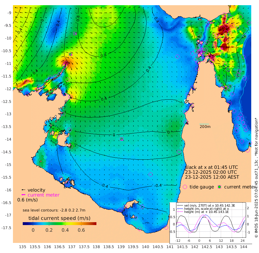 34cm/s 115T +3cm/s rms + 7cm/s -42T. ARA-GOC87 57m 25cm/s 163T +3cm/s rms + 2cm/s -2T. ARA-GOC87 60m 25cm/s 110T +2cm/s rms + 3cm/s 61T. ARA-GOC87 47m 139cm Daru 133cm Bobo Island 97cm Meer Island Barge 121cm Bramble Cay 142cm Unnamed Cay 135cm Pearce Cay 130cm Stephens Island 140cm Merrie England Shoals 146cm Mutacomal Reef 123cm Darnley Island Barge 101cm East Cay 128cm Yorke Island Barge 136cm Rennel Island 124cm Aureed Island 130cm Dungeness Reef 114cm Zagai Island 118cm Yam Island 100cm Dauan Island 89cm Saibai Island 92cm Phipi Reef 117cm Warrior Reef - West 85cm Mabuiag Island Barge 132cm Half Way Island 132cm Coconut Island 137cm Dugong Islet 125cm Poll Island 125cm Kirkcaldie Reef 110cm Suarji Island 119cm Sue Islet 108cm Hawkesbury Island 116cm Alert Patches 118cm Twin Island 100cm Badu Island 114cm St Pauls (Moa Island) 109cm Kubin (Moa Island) 106cm Ince Point 101cm Thursday Island 102cm Nardana Patches 103cm Turtle Head 100cm Round Island 99cm Goods Island 84cm Booby Island 89cm White Rocks Area 57cm Carpentaria 102cm Papou Point 109cm Bampfield Head 62cm Crab Island 84cm Red Wallis Island 105cm Packe Island 138cm Harrington Reef 98cm Herald Camp 22cm Sharp Point 77cm Red Island Point 98cm Possession Island 117cm Alpha Rock 127cm Frederick Point 149cm Wyborn Reef Light 146cm Tetley Island 94cm Triangle Reef 154cm Turtle Head Island 95cm Maclennan Cay 78cm Raine Island 128cm Mcsweeny Reef 121cm Collette Reef 97cm Shadwell Reef 131cm Hannibal Island 124cm Round Point 49cm Vrilya Point 110cm Cape Grenville 105cm Hicks Island 114cm Sir Charles Hardy Island 33cm Harvey Island 102cm Kay Reef 87cm Rocky Island 84cm Chapman Island 79cm Ham Reef 87cm Jubilee Reef 79cm Night Island 80cm Unnamed Reef No. 3 90cm Morris Island 88cm 1st 3 Mile Opening 87cm Creech Reef 85cm Fife Island 99cm Eden Reef 93cm Stanley Island 98cm Normanby River 78cm Yabooma Island 99cm Hutchison River 66cm Elcho Island 54cm North West Crocodile Island 81cm Cape Wessel 86cm Stevens Island 113cm Guluwuru Island 67cm Hopeful Bay 77cm Auster Point 78cm Two Island Bay 108cm Cadell Strait 208cm Mallison Island 87cm Melville Bay (Gove Harbour) 101cm Truant Island 61cm Cape Arnhem 14cm Cape Grey -7cm Hawk Island -62cm Milner Bay (Groote Eylandt) -68cm Cape Beatrice -120cm West Island -123cm Centre Island -112cm Mornington Island -104cm West Wellesley Islands -133cm Bountiful Island -168cm Albert River Mouth -198cm Sweers Island -171cm Karumba -65cm Nassau River Offshore -11cm Christmas Creek 19cm Archer River 40cm Boyd Point 39cm Weipa (Humbug Point) 32cm Pennefather River 47cm Cullen Point