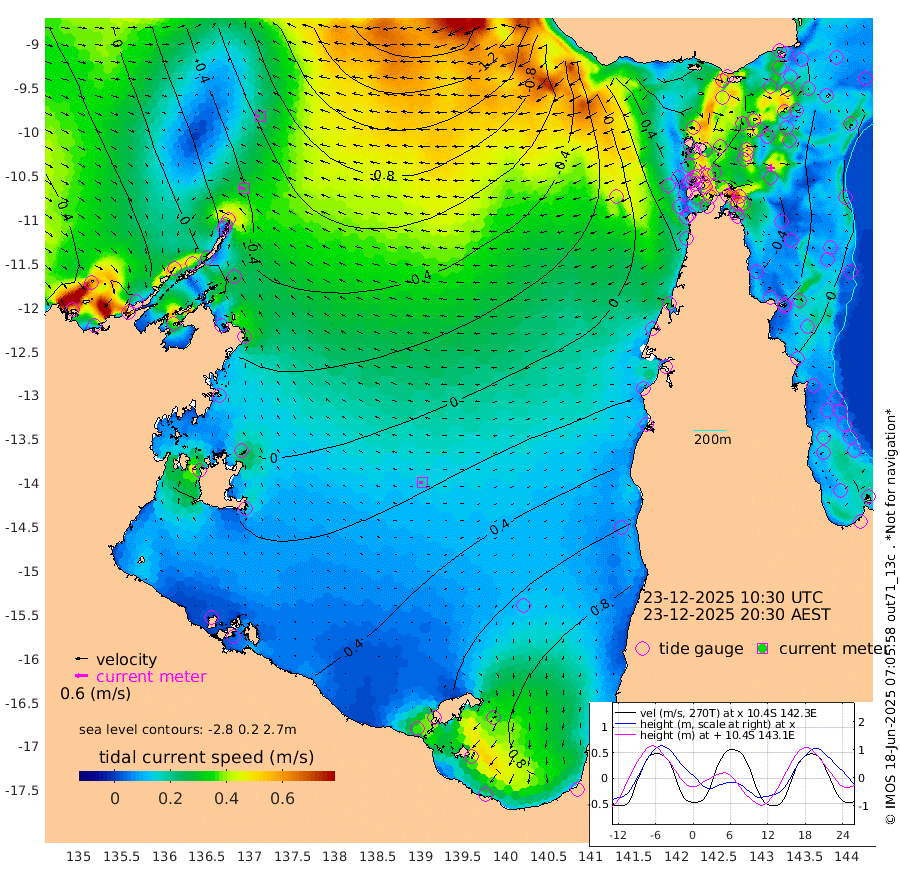 30cm/s -87T +3cm/s rms + 7cm/s -42T. ARA-GOC87 57m 16cm/s -102T +3cm/s rms + 2cm/s -2T. ARA-GOC87 60m 26cm/s -90T +2cm/s rms + 3cm/s 61T. ARA-GOC87 47m -44cm Daru -44cm Bobo Island -9cm Meer Island Barge -20cm Bramble Cay -36cm Unnamed Cay -32cm Pearce Cay -28cm Stephens Island -35cm Merrie England Shoals -47cm Mutacomal Reef -29cm Darnley Island Barge -7cm East Cay -39cm Yorke Island Barge -37cm Rennel Island -39cm Aureed Island -31cm Dungeness Reef -52cm Zagai Island -41cm Yam Island -27cm Dauan Island -44cm Saibai Island 6cm Phipi Reef -40cm Warrior Reef - West -36cm Mabuiag Island Barge -34cm Half Way Island -49cm Coconut Island -39cm Dugong Islet -45cm Poll Island -36cm Kirkcaldie Reef -41cm Suarji Island -54cm Sue Islet 9cm Hawkesbury Island -40cm Alert Patches -45cm Twin Island -3cm Badu Island -46cm St Pauls (Moa Island) -5cm Kubin (Moa Island) -31cm Ince Point -24cm Thursday Island -25cm Nardana Patches -4cm Turtle Head 5cm Round Island 12cm Goods Island 13cm Booby Island 8cm White Rocks Area -27cm Carpentaria -40cm Papou Point -5cm Bampfield Head 15cm Crab Island 7cm Red Wallis Island 7cm Packe Island -48cm Harrington Reef 27cm Herald Camp -14cm Sharp Point 4cm Red Island Point -17cm Possession Island -58cm Alpha Rock -49cm Frederick Point -60cm Wyborn Reef Light -63cm Tetley Island -17cm Triangle Reef -52cm Turtle Head Island -8cm Maclennan Cay 2cm Raine Island -37cm Mcsweeny Reef -31cm Collette Reef -13cm Shadwell Reef -31cm Hannibal Island -20cm Round Point 6cm Vrilya Point -14cm Cape Grenville -8cm Hicks Island -13cm Sir Charles Hardy Island -3cm Harvey Island -10cm Kay Reef 0cm Rocky Island -2cm Chapman Island -4cm Ham Reef -5cm Jubilee Reef 0cm Night Island -4cm Unnamed Reef No. 3 -1cm Morris Island 0cm 1st 3 Mile Opening -1cm Creech Reef -8cm Fife Island 5cm Eden Reef -1cm Stanley Island 0cm Normanby River 16cm Yabooma Island 12cm Hutchison River 15cm Elcho Island 25cm North West Crocodile Island -60cm Cape Wessel -25cm Stevens Island -77cm Guluwuru Island -7cm Hopeful Bay -35cm Auster Point -29cm Two Island Bay -26cm Cadell Strait -213cm Mallison Island -55cm Melville Bay (Gove Harbour) -71cm Truant Island -49cm Cape Arnhem -23cm Cape Grey 1cm Hawk Island 13cm Milner Bay (Groote Eylandt) 28cm Cape Beatrice 45cm West Island 50cm Centre Island 104cm Mornington Island 91cm West Wellesley Islands 143cm Bountiful Island 166cm Albert River Mouth 167cm Sweers Island 183cm Karumba 110cm Nassau River Offshore 83cm Christmas Creek 51cm Archer River 22cm Boyd Point 44cm Weipa (Humbug Point) 15cm Pennefather River 16cm Cullen Point