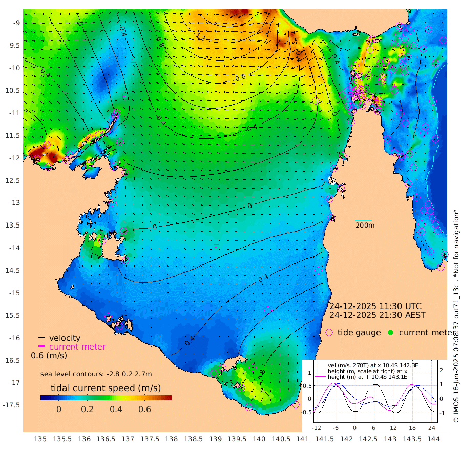 21cm/s -91T +3cm/s rms + 7cm/s -42T. ARA-GOC87 57m 17cm/s -92T +3cm/s rms + 2cm/s -2T. ARA-GOC87 60m 16cm/s -90T +2cm/s rms + 3cm/s 61T. ARA-GOC87 47m -44cm Daru -42cm Bobo Island -12cm Meer Island Barge -21cm Bramble Cay -37cm Unnamed Cay -28cm Pearce Cay -29cm Stephens Island -35cm Merrie England Shoals -46cm Mutacomal Reef -31cm Darnley Island Barge -12cm East Cay -39cm Yorke Island Barge -37cm Rennel Island -37cm Aureed Island -30cm Dungeness Reef -51cm Zagai Island -44cm Yam Island -29cm Dauan Island -49cm Saibai Island 3cm Phipi Reef -41cm Warrior Reef - West -41cm Mabuiag Island Barge -34cm Half Way Island -48cm Coconut Island -40cm Dugong Islet -43cm Poll Island -40cm Kirkcaldie Reef -41cm Suarji Island -56cm Sue Islet -3cm Hawkesbury Island -42cm Alert Patches -46cm Twin Island -11cm Badu Island -47cm St Pauls (Moa Island) -12cm Kubin (Moa Island) -35cm Ince Point -29cm Thursday Island -30cm Nardana Patches -12cm Turtle Head -5cm Round Island 2cm Goods Island 0cm Booby Island -2cm White Rocks Area -44cm Carpentaria -43cm Papou Point -22cm Bampfield Head 2cm Crab Island -4cm Red Wallis Island -1cm Packe Island -48cm Harrington Reef 8cm Herald Camp -15cm Sharp Point -7cm Red Island Point -23cm Possession Island -59cm Alpha Rock -50cm Frederick Point -58cm Wyborn Reef Light -61cm Tetley Island -18cm Triangle Reef -50cm Turtle Head Island -12cm Maclennan Cay -3cm Raine Island -37cm Mcsweeny Reef -32cm Collette Reef -16cm Shadwell Reef -31cm Hannibal Island -20cm Round Point -7cm Vrilya Point -18cm Cape Grenville -12cm Hicks Island -19cm Sir Charles Hardy Island -5cm Harvey Island -15cm Kay Reef -5cm Rocky Island -5cm Chapman Island -10cm Ham Reef -10cm Jubilee Reef -4cm Night Island -9cm Unnamed Reef No. 3 -5cm Morris Island -5cm 1st 3 Mile Opening -6cm Creech Reef -12cm Fife Island 1cm Eden Reef -6cm Stanley Island -4cm Normanby River 46cm Yabooma Island 48cm Hutchison River 46cm Elcho Island 54cm North West Crocodile Island -37cm Cape Wessel 8cm Stevens Island -56cm Guluwuru Island 21cm Hopeful Bay -9cm Auster Point -4cm Two Island Bay 8cm Cadell Strait -189cm Mallison Island -34cm Melville Bay (Gove Harbour) -48cm Truant Island -34cm Cape Arnhem -14cm Cape Grey 10cm Hawk Island 20cm Milner Bay (Groote Eylandt) 32cm Cape Beatrice 42cm West Island 48cm Centre Island 100cm Mornington Island 88cm West Wellesley Islands 137cm Bountiful Island 171cm Albert River Mouth 174cm Sweers Island 182cm Karumba 103cm Nassau River Offshore 71cm Christmas Creek 40cm Archer River 9cm Boyd Point 31cm Weipa (Humbug Point) 7cm Pennefather River 3cm Cullen Point