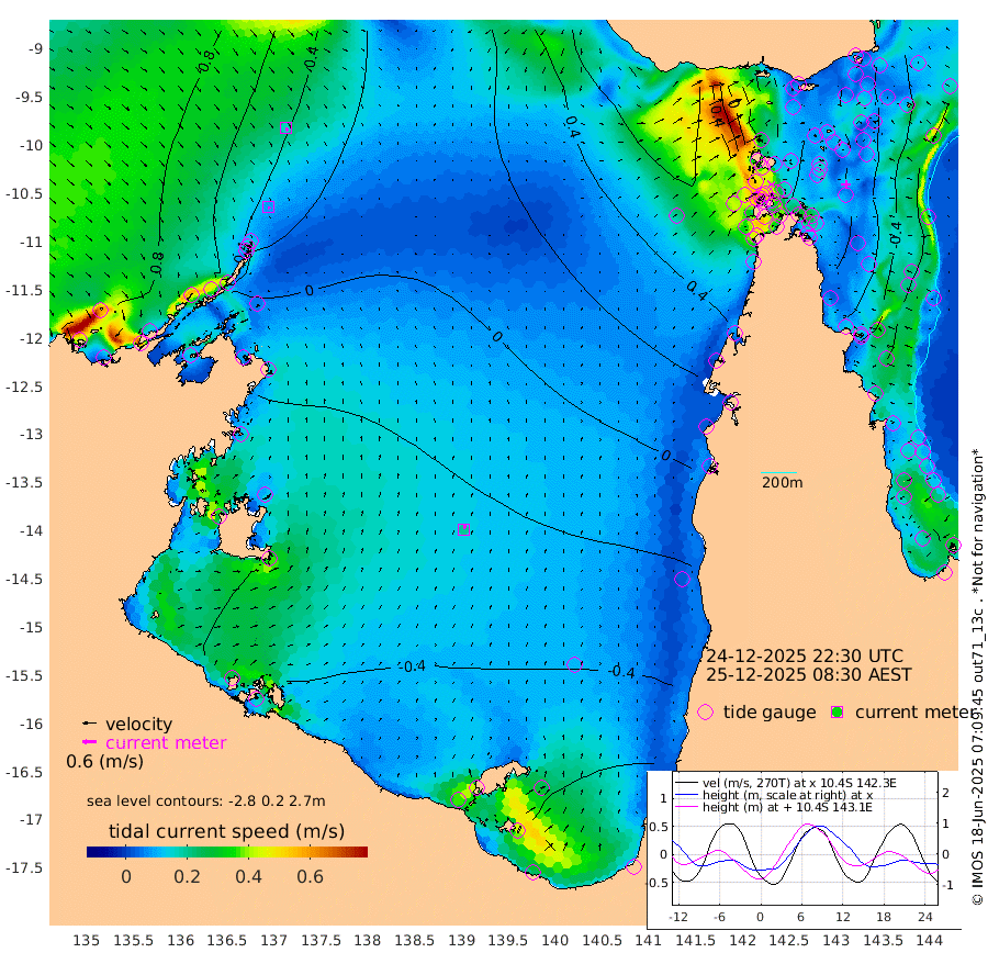 9cm/s 166T +3cm/s rms + 7cm/s -42T. ARA-GOC87 57m 20cm/s 14T +3cm/s rms + 2cm/s -2T. ARA-GOC87 60m 17cm/s 149T +2cm/s rms + 3cm/s 61T. ARA-GOC87 47m -78cm Daru -63cm Bobo Island -22cm Meer Island Barge -40cm Bramble Cay -60cm Unnamed Cay -53cm Pearce Cay -49cm Stephens Island -59cm Merrie England Shoals -74cm Mutacomal Reef -48cm Darnley Island Barge -23cm East Cay -59cm Yorke Island Barge -57cm Rennel Island -57cm Aureed Island -65cm Dungeness Reef -70cm Zagai Island -67cm Yam Island -80cm Dauan Island -71cm Saibai Island -90cm Phipi Reef -88cm Warrior Reef - West -28cm Mabuiag Island Barge -54cm Half Way Island -59cm Coconut Island -59cm Dugong Islet -62cm Poll Island -61cm Kirkcaldie Reef -51cm Suarji Island -65cm Sue Islet 46cm Hawkesbury Island -41cm Alert Patches -42cm Twin Island 28cm Badu Island -50cm St Pauls (Moa Island) 15cm Kubin (Moa Island) -22cm Ince Point -5cm Thursday Island -10cm Nardana Patches 10cm Turtle Head 27cm Round Island 53cm Goods Island 83cm Booby Island 81cm White Rocks Area 101cm Carpentaria -28cm Papou Point 92cm Bampfield Head 65cm Crab Island 72cm Red Wallis Island 24cm Packe Island -58cm Harrington Reef 43cm Herald Camp -26cm Sharp Point 17cm Red Island Point -9cm Possession Island -49cm Alpha Rock -53cm Frederick Point -67cm Wyborn Reef Light -67cm Tetley Island -25cm Triangle Reef -50cm Turtle Head Island -17cm Maclennan Cay -5cm Raine Island -54cm Mcsweeny Reef -51cm Collette Reef -30cm Shadwell Reef -53cm Hannibal Island -39cm Round Point 68cm Vrilya Point -32cm Cape Grenville -26cm Hicks Island -25cm Sir Charles Hardy Island -10cm Harvey Island -20cm Kay Reef -14cm Rocky Island -9cm Chapman Island -6cm Ham Reef -11cm Jubilee Reef -16cm Night Island -6cm Unnamed Reef No. 3 -11cm Morris Island -3cm 1st 3 Mile Opening -9cm Creech Reef -24cm Fife Island -7cm Eden Reef -13cm Stanley Island -12cm Normanby River 84cm Yabooma Island 92cm Hutchison River 88cm Elcho Island 83cm North West Crocodile Island 50cm Cape Wessel 54cm Stevens Island 6cm Guluwuru Island 52cm Hopeful Bay 55cm Auster Point 51cm Two Island Bay 36cm Cadell Strait -154cm Mallison Island 5cm Melville Bay (Gove Harbour) 11cm Truant Island -4cm Cape Arnhem -5cm Cape Grey -22cm Hawk Island -13cm Milner Bay (Groote Eylandt) -22cm Cape Beatrice -31cm West Island -26cm Centre Island -92cm Mornington Island -88cm West Wellesley Islands -102cm Bountiful Island -107cm Albert River Mouth -114cm Sweers Island -117cm Karumba -93cm Nassau River Offshore -69cm Christmas Creek -12cm Archer River 12cm Boyd Point 13cm Weipa (Humbug Point) 25cm Pennefather River 48cm Cullen Point