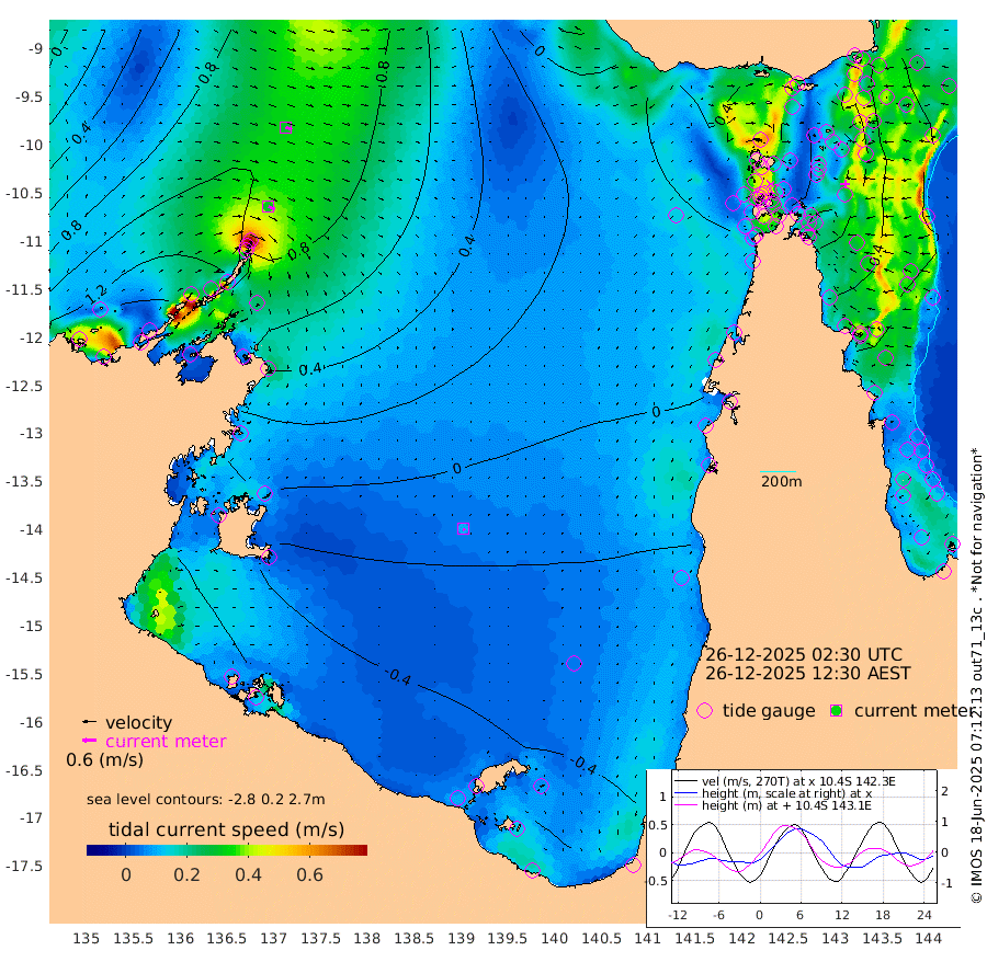 31cm/s 115T +3cm/s rms + 7cm/s -42T. ARA-GOC87 57m 10cm/s 166T +3cm/s rms + 2cm/s -2T. ARA-GOC87 60m 29cm/s 108T +2cm/s rms + 3cm/s 61T. ARA-GOC87 47m 51cm Daru 56cm Bobo Island 61cm Meer Island Barge 62cm Bramble Cay 59cm Unnamed Cay 67cm Pearce Cay 64cm Stephens Island 52cm Merrie England Shoals 48cm Mutacomal Reef 61cm Darnley Island Barge 63cm East Cay 57cm Yorke Island Barge 59cm Rennel Island 54cm Aureed Island 55cm Dungeness Reef 39cm Zagai Island 45cm Yam Island 47cm Dauan Island 34cm Saibai Island 30cm Phipi Reef 41cm Warrior Reef - West 39cm Mabuiag Island Barge 58cm Half Way Island 47cm Coconut Island 59cm Dugong Islet 46cm Poll Island 46cm Kirkcaldie Reef 38cm Suarji Island 40cm Sue Islet 86cm Hawkesbury Island 39cm Alert Patches 43cm Twin Island 75cm Badu Island 41cm St Pauls (Moa Island) 74cm Kubin (Moa Island) 46cm Ince Point 50cm Thursday Island 49cm Nardana Patches 64cm Turtle Head 64cm Round Island 82cm Goods Island 78cm Booby Island 82cm White Rocks Area 45cm Carpentaria 45cm Papou Point 87cm Bampfield Head 55cm Crab Island 71cm Red Wallis Island 66cm Packe Island 52cm Harrington Reef 76cm Herald Camp -4cm Sharp Point 52cm Red Island Point 44cm Possession Island 34cm Alpha Rock 46cm Frederick Point 52cm Wyborn Reef Light 49cm Tetley Island 52cm Triangle Reef 69cm Turtle Head Island 61cm Maclennan Cay 57cm Raine Island 56cm Mcsweeny Reef 51cm Collette Reef 52cm Shadwell Reef 56cm Hannibal Island 62cm Round Point 38cm Vrilya Point 53cm Cape Grenville 63cm Hicks Island 72cm Sir Charles Hardy Island 18cm Harvey Island 55cm Kay Reef 58cm Rocky Island 58cm Chapman Island 56cm Ham Reef 60cm Jubilee Reef 48cm Night Island 54cm Unnamed Reef No. 3 60cm Morris Island 65cm 1st 3 Mile Opening 60cm Creech Reef 54cm Fife Island 72cm Eden Reef 59cm Stanley Island 68cm Normanby River 168cm Yabooma Island 192cm Hutchison River 152cm Elcho Island 143cm North West Crocodile Island 120cm Cape Wessel 139cm Stevens Island 124cm Guluwuru Island 119cm Hopeful Bay 125cm Auster Point 131cm Two Island Bay 174cm Cadell Strait 77cm Mallison Island 103cm Melville Bay (Gove Harbour) 114cm Truant Island 65cm Cape Arnhem 28cm Cape Grey -4cm Hawk Island -45cm Milner Bay (Groote Eylandt) -54cm Cape Beatrice -105cm West Island -112cm Centre Island -108cm Mornington Island -98cm West Wellesley Islands -99cm Bountiful Island -122cm Albert River Mouth -151cm Sweers Island -131cm Karumba -69cm Nassau River Offshore -28cm Christmas Creek 6cm Archer River 26cm Boyd Point 33cm Weipa (Humbug Point) 11cm Pennefather River 35cm Cullen Point