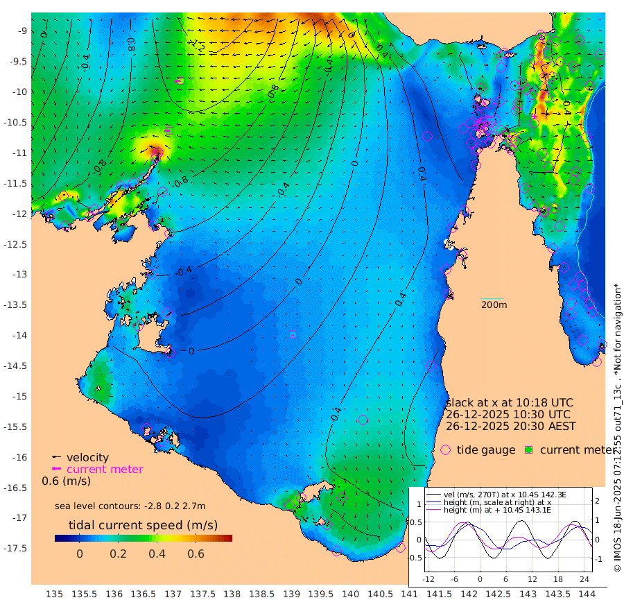 37cm/s -92T +3cm/s rms + 7cm/s -42T. ARA-GOC87 57m 11cm/s -151T +3cm/s rms + 2cm/s -2T. ARA-GOC87 60m 39cm/s -101T +2cm/s rms + 3cm/s 61T. ARA-GOC87 47m -42cm Daru -49cm Bobo Island -46cm Meer Island Barge -48cm Bramble Cay -49cm Unnamed Cay -47cm Pearce Cay -50cm Stephens Island -45cm Merrie England Shoals -35cm Mutacomal Reef -54cm Darnley Island Barge -43cm East Cay -51cm Yorke Island Barge -41cm Rennel Island -42cm Aureed Island -28cm Dungeness Reef -19cm Zagai Island -4cm Yam Island 14cm Dauan Island 6cm Saibai Island 22cm Phipi Reef -7cm Warrior Reef - West 18cm Mabuiag Island Barge -37cm Half Way Island -32cm Coconut Island -34cm Dugong Islet -16cm Poll Island -14cm Kirkcaldie Reef -2cm Suarji Island -25cm Sue Islet 54cm Hawkesbury Island 6cm Alert Patches 4cm Twin Island 45cm Badu Island 6cm St Pauls (Moa Island) 42cm Kubin (Moa Island) 22cm Ince Point 32cm Thursday Island 29cm Nardana Patches 42cm Turtle Head 43cm Round Island 56cm Goods Island 68cm Booby Island 64cm White Rocks Area 55cm Carpentaria 3cm Papou Point 41cm Bampfield Head 66cm Crab Island 76cm Red Wallis Island 67cm Packe Island -35cm Harrington Reef 68cm Herald Camp 8cm Sharp Point 42cm Red Island Point 15cm Possession Island -5cm Alpha Rock -14cm Frederick Point -44cm Wyborn Reef Light -37cm Tetley Island -31cm Triangle Reef -55cm Turtle Head Island -35cm Maclennan Cay -34cm Raine Island -47cm Mcsweeny Reef -46cm Collette Reef -40cm Shadwell Reef -51cm Hannibal Island -46cm Round Point 66cm Vrilya Point -38cm Cape Grenville -43cm Hicks Island -42cm Sir Charles Hardy Island -13cm Harvey Island -40cm Kay Reef -38cm Rocky Island -33cm Chapman Island -35cm Ham Reef -40cm Jubilee Reef -28cm Night Island -31cm Unnamed Reef No. 3 -39cm Morris Island -41cm 1st 3 Mile Opening -37cm Creech Reef -40cm Fife Island -46cm Eden Reef -39cm Stanley Island -45cm Normanby River -101cm Yabooma Island -127cm Hutchison River -100cm Elcho Island -86cm North West Crocodile Island -113cm Cape Wessel -115cm Stevens Island -142cm Guluwuru Island -98cm Hopeful Bay -114cm Auster Point -110cm Two Island Bay -143cm Cadell Strait -198cm Mallison Island -120cm Melville Bay (Gove Harbour) -131cm Truant Island -89cm Cape Arnhem -69cm Cape Grey -38cm Hawk Island -14cm Milner Bay (Groote Eylandt) 5cm Cape Beatrice 39cm West Island 45cm Centre Island 61cm Mornington Island 53cm West Wellesley Islands 57cm Bountiful Island 71cm Albert River Mouth 52cm Sweers Island 84cm Karumba 81cm Nassau River Offshore 75cm Christmas Creek 60cm Archer River 47cm Boyd Point 58cm Weipa (Humbug Point) 51cm Pennefather River 68cm Cullen Point