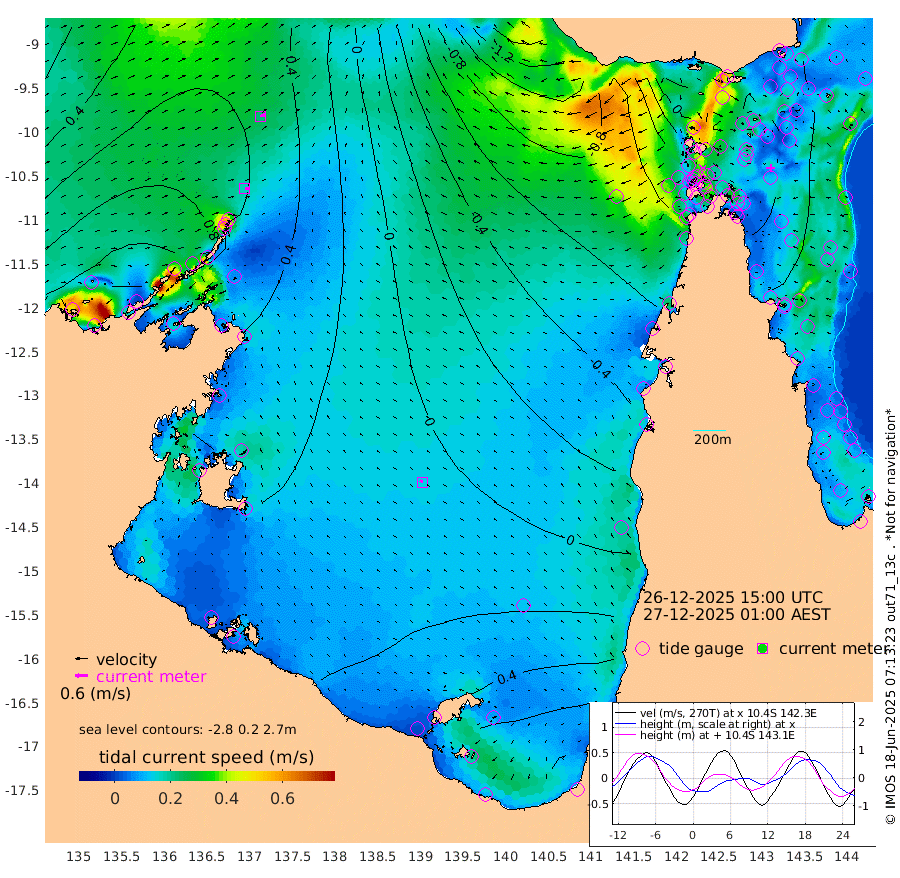 17cm/s 92T +3cm/s rms + 7cm/s -42T. ARA-GOC87 57m 14cm/s -58T +3cm/s rms + 2cm/s -2T. ARA-GOC87 60m 23cm/s 72T +2cm/s rms + 3cm/s 61T. ARA-GOC87 47m -28cm Daru -23cm Bobo Island -3cm Meer Island Barge -10cm Bramble Cay -24cm Unnamed Cay -11cm Pearce Cay -16cm Stephens Island -25cm Merrie England Shoals -38cm Mutacomal Reef -14cm Darnley Island Barge -10cm East Cay -22cm Yorke Island Barge -28cm Rennel Island -21cm Aureed Island -27cm Dungeness Reef -43cm Zagai Island -55cm Yam Island -35cm Dauan Island -55cm Saibai Island -19cm Phipi Reef -39cm Warrior Reef - West -65cm Mabuiag Island Barge -27cm Half Way Island -39cm Coconut Island -35cm Dugong Islet -42cm Poll Island -50cm Kirkcaldie Reef -54cm Suarji Island -50cm Sue Islet -86cm Hawkesbury Island -62cm Alert Patches -64cm Twin Island -71cm Badu Island -61cm St Pauls (Moa Island) -71cm Kubin (Moa Island) -68cm Ince Point -72cm Thursday Island -70cm Nardana Patches -68cm Turtle Head -75cm Round Island -76cm Goods Island -91cm Booby Island -89cm White Rocks Area -120cm Carpentaria -63cm Papou Point -107cm Bampfield Head -76cm Crab Island -94cm Red Wallis Island -78cm Packe Island -43cm Harrington Reef -93cm Herald Camp -20cm Sharp Point -72cm Red Island Point -61cm Possession Island -66cm Alpha Rock -55cm Frederick Point -41cm Wyborn Reef Light -46cm Tetley Island -14cm Triangle Reef -31cm Turtle Head Island -14cm Maclennan Cay -3cm Raine Island -21cm Mcsweeny Reef -19cm Collette Reef -9cm Shadwell Reef -16cm Hannibal Island -11cm Round Point -80cm Vrilya Point -18cm Cape Grenville -9cm Hicks Island -23cm Sir Charles Hardy Island -4cm Harvey Island -17cm Kay Reef -6cm Rocky Island -6cm Chapman Island -12cm Ham Reef -8cm Jubilee Reef -3cm Night Island -13cm Unnamed Reef No. 3 -5cm Morris Island -3cm 1st 3 Mile Opening -7cm Creech Reef 1cm Fife Island 3cm Eden Reef -7cm Stanley Island -5cm Normanby River 110cm Yabooma Island 129cm Hutchison River 113cm Elcho Island 108cm North West Crocodile Island 53cm Cape Wessel 102cm Stevens Island 59cm Guluwuru Island 96cm Hopeful Bay 77cm Auster Point 80cm Two Island Bay 126cm Cadell Strait 35cm Mallison Island 67cm Melville Bay (Gove Harbour) 63cm Truant Island 46cm Cape Arnhem 41cm Cape Grey 49cm Hawk Island 43cm Milner Bay (Groote Eylandt) 40cm Cape Beatrice 22cm West Island 22cm Centre Island 67cm Mornington Island 62cm West Wellesley Islands 92cm Bountiful Island 139cm Albert River Mouth 163cm Sweers Island 132cm Karumba 47cm Nassau River Offshore 9cm Christmas Creek -20cm Archer River -44cm Boyd Point -35cm Weipa (Humbug Point) -39cm Pennefather River -73cm Cullen Point