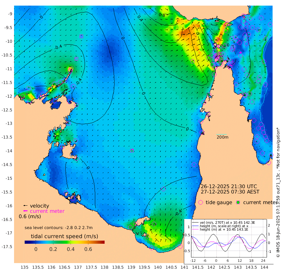 15cm/s -63T +3cm/s rms + 7cm/s -42T. ARA-GOC87 57m 21cm/s 20T +3cm/s rms + 2cm/s -2T. ARA-GOC87 60m 10cm/s -87T +2cm/s rms + 3cm/s 61T. ARA-GOC87 47m -31cm Daru -26cm Bobo Island -31cm Meer Island Barge -32cm Bramble Cay -27cm Unnamed Cay -36cm Pearce Cay -32cm Stephens Island -23cm Merrie England Shoals -22cm Mutacomal Reef -30cm Darnley Island Barge -31cm East Cay -27cm Yorke Island Barge -28cm Rennel Island -26cm Aureed Island -32cm Dungeness Reef -20cm Zagai Island -26cm Yam Island -51cm Dauan Island -25cm Saibai Island -47cm Phipi Reef -38cm Warrior Reef - West -6cm Mabuiag Island Barge -30cm Half Way Island -14cm Coconut Island -29cm Dugong Islet -21cm Poll Island -22cm Kirkcaldie Reef -3cm Suarji Island -11cm Sue Islet -17cm Hawkesbury Island -2cm Alert Patches -7cm Twin Island -19cm Badu Island -11cm St Pauls (Moa Island) -23cm Kubin (Moa Island) -8cm Ince Point -7cm Thursday Island -8cm Nardana Patches -18cm Turtle Head -3cm Round Island -16cm Goods Island 0cm Booby Island 0cm White Rocks Area 47cm Carpentaria -5cm Papou Point 27cm Bampfield Head -2cm Crab Island -5cm Red Wallis Island -23cm Packe Island -15cm Harrington Reef -14cm Herald Camp 2cm Sharp Point -7cm Red Island Point 4cm Possession Island 0cm Alpha Rock -11cm Frederick Point -15cm Wyborn Reef Light -14cm Tetley Island -25cm Triangle Reef -21cm Turtle Head Island -28cm Maclennan Cay -28cm Raine Island -26cm Mcsweeny Reef -23cm Collette Reef -26cm Shadwell Reef -26cm Hannibal Island -31cm Round Point 10cm Vrilya Point -23cm Cape Grenville -32cm Hicks Island -34cm Sir Charles Hardy Island -9cm Harvey Island -20cm Kay Reef -28cm Rocky Island -27cm Chapman Island -23cm Ham Reef -28cm Jubilee Reef -28cm Night Island -23cm Unnamed Reef No. 3 -29cm Morris Island -28cm 1st 3 Mile Opening -28cm Creech Reef -37cm Fife Island -37cm Eden Reef -28cm Stanley Island -33cm Normanby River -92cm Yabooma Island -101cm Hutchison River -80cm Elcho Island -81cm North West Crocodile Island -44cm Cape Wessel -75cm Stevens Island -59cm Guluwuru Island -64cm Hopeful Bay -52cm Auster Point -68cm Two Island Bay -117cm Cadell Strait -80cm Mallison Island -54cm Melville Bay (Gove Harbour) -53cm Truant Island -33cm Cape Arnhem -9cm Cape Grey -6cm Hawk Island 21cm Milner Bay (Groote Eylandt) 14cm Cape Beatrice 42cm West Island 50cm Centre Island -14cm Mornington Island -14cm West Wellesley Islands -31cm Bountiful Island -47cm Albert River Mouth -23cm Sweers Island -47cm Karumba -50cm Nassau River Offshore -51cm Christmas Creek -26cm Archer River -14cm Boyd Point -27cm Weipa (Humbug Point) 0cm Pennefather River 0cm Cullen Point