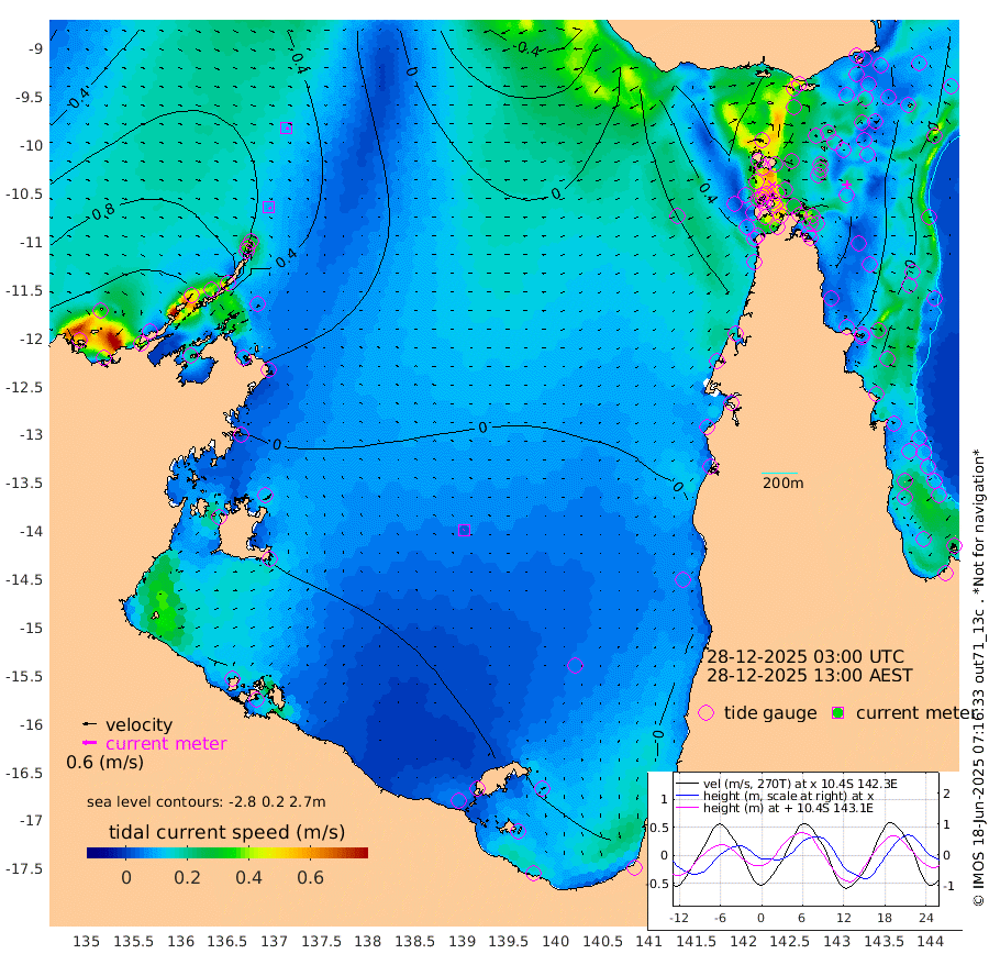 9cm/s 135T +3cm/s rms + 7cm/s -42T. ARA-GOC87 57m 3cm/s -121T +3cm/s rms + 2cm/s -2T. ARA-GOC87 60m 11cm/s 118T +2cm/s rms + 3cm/s 61T. ARA-GOC87 47m -18cm Daru -12cm Bobo Island 8cm Meer Island Barge -4cm Bramble Cay -14cm Unnamed Cay -2cm Pearce Cay -7cm Stephens Island -26cm Merrie England Shoals -25cm Mutacomal Reef -6cm Darnley Island Barge 9cm East Cay -9cm Yorke Island Barge -8cm Rennel Island -7cm Aureed Island -3cm Dungeness Reef 2cm Zagai Island 6cm Yam Island 40cm Dauan Island 31cm Saibai Island 23cm Phipi Reef 8cm Warrior Reef - West 34cm Mabuiag Island Barge -14cm Half Way Island -13cm Coconut Island -9cm Dugong Islet -4cm Poll Island -10cm Kirkcaldie Reef 12cm Suarji Island -6cm Sue Islet 81cm Hawkesbury Island 7cm Alert Patches 7cm Twin Island 70cm Badu Island 10cm St Pauls (Moa Island) 59cm Kubin (Moa Island) 23cm Ince Point 32cm Thursday Island 31cm Nardana Patches 52cm Turtle Head 62cm Round Island 76cm Goods Island 80cm Booby Island 81cm White Rocks Area 47cm Carpentaria 15cm Papou Point 93cm Bampfield Head 56cm Crab Island 71cm Red Wallis Island 54cm Packe Island -17cm Harrington Reef 82cm Herald Camp -10cm Sharp Point 45cm Red Island Point 28cm Possession Island -5cm Alpha Rock -4cm Frederick Point -18cm Wyborn Reef Light -16cm Tetley Island 9cm Triangle Reef -9cm Turtle Head Island 13cm Maclennan Cay 17cm Raine Island -11cm Mcsweeny Reef -11cm Collette Reef 2cm Shadwell Reef -15cm Hannibal Island -4cm Round Point 35cm Vrilya Point -6cm Cape Grenville 8cm Hicks Island 19cm Sir Charles Hardy Island 0cm Harvey Island 0cm Kay Reef 15cm Rocky Island 20cm Chapman Island 18cm Ham Reef 14cm Jubilee Reef 6cm Night Island 14cm Unnamed Reef No. 3 12cm Morris Island 20cm 1st 3 Mile Opening 14cm Creech Reef 9cm Fife Island 18cm Eden Reef 8cm Stanley Island 12cm Normanby River 140cm Yabooma Island 150cm Hutchison River 123cm Elcho Island 119cm North West Crocodile Island 81cm Cape Wessel 97cm Stevens Island 61cm Guluwuru Island 92cm Hopeful Bay 90cm Auster Point 90cm Two Island Bay 114cm Cadell Strait -45cm Mallison Island 57cm Melville Bay (Gove Harbour) 64cm Truant Island 33cm Cape Arnhem 16cm Cape Grey -3cm Hawk Island -26cm Milner Bay (Groote Eylandt) -32cm Cape Beatrice -64cm West Island -67cm Centre Island -63cm Mornington Island -55cm West Wellesley Islands -34cm Bountiful Island -54cm Albert River Mouth -68cm Sweers Island -57cm Karumba -38cm Nassau River Offshore -13cm Christmas Creek 13cm Archer River 28cm Boyd Point 41cm Weipa (Humbug Point) 5cm Pennefather River 41cm Cullen Point