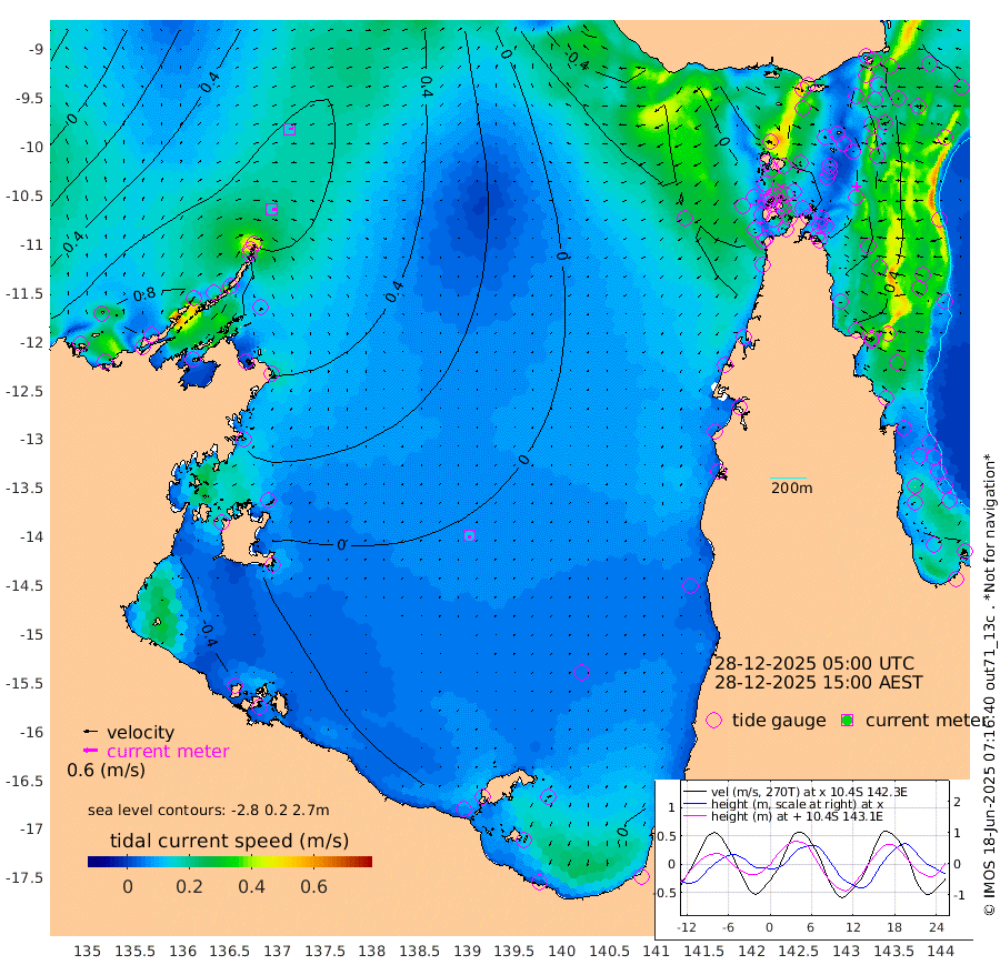 17cm/s 96T +3cm/s rms + 7cm/s -42T. ARA-GOC87 57m 12cm/s -178T +3cm/s rms + 2cm/s -2T. ARA-GOC87 60m 16cm/s 81T +2cm/s rms + 3cm/s 61T. ARA-GOC87 47m 36cm Daru 38cm Bobo Island 50cm Meer Island Barge 46cm Bramble Cay 39cm Unnamed Cay 41cm Pearce Cay 46cm Stephens Island 31cm Merrie England Shoals 25cm Mutacomal Reef 48cm Darnley Island Barge 53cm East Cay 42cm Yorke Island Barge 37cm Rennel Island 34cm Aureed Island 30cm Dungeness Reef 22cm Zagai Island 25cm Yam Island 35cm Dauan Island 30cm Saibai Island 19cm Phipi Reef 30cm Warrior Reef - West 10cm Mabuiag Island Barge 33cm Half Way Island 20cm Coconut Island 33cm Dugong Islet 18cm Poll Island 22cm Kirkcaldie Reef 4cm Suarji Island 21cm Sue Islet 20cm Hawkesbury Island -1cm Alert Patches 5cm Twin Island 13cm Badu Island 6cm St Pauls (Moa Island) 18cm Kubin (Moa Island) 3cm Ince Point 1cm Thursday Island 2cm Nardana Patches 9cm Turtle Head 9cm Round Island 12cm Goods Island 2cm Booby Island 1cm White Rocks Area -19cm Carpentaria 11cm Papou Point 8cm Bampfield Head -4cm Crab Island -1cm Red Wallis Island 6cm Packe Island 23cm Harrington Reef 23cm Herald Camp -6cm Sharp Point 9cm Red Island Point 1cm Possession Island 4cm Alpha Rock 14cm Frederick Point 25cm Wyborn Reef Light 22cm Tetley Island 38cm Triangle Reef 32cm Turtle Head Island 48cm Maclennan Cay 47cm Raine Island 38cm Mcsweeny Reef 36cm Collette Reef 41cm Shadwell Reef 39cm Hannibal Island 44cm Round Point -18cm Vrilya Point 39cm Cape Grenville 51cm Hicks Island 62cm Sir Charles Hardy Island 15cm Harvey Island 43cm Kay Reef 50cm Rocky Island 48cm Chapman Island 49cm Ham Reef 50cm Jubilee Reef 39cm Night Island 45cm Unnamed Reef No. 3 49cm Morris Island 49cm 1st 3 Mile Opening 48cm Creech Reef 53cm Fife Island 58cm Eden Reef 48cm Stanley Island 57cm Normanby River 109cm Yabooma Island 122cm Hutchison River 94cm Elcho Island 90cm North West Crocodile Island 86cm Cape Wessel 91cm Stevens Island 104cm Guluwuru Island 81cm Hopeful Bay 84cm Auster Point 95cm Two Island Bay 134cm Cadell Strait 124cm Mallison Island 85cm Melville Bay (Gove Harbour) 91cm Truant Island 57cm Cape Arnhem 32cm Cape Grey 6cm Hawk Island -26cm Milner Bay (Groote Eylandt) -30cm Cape Beatrice -65cm West Island -75cm Centre Island -45cm Mornington Island -41cm West Wellesley Islands -23cm Bountiful Island -46cm Albert River Mouth -64cm Sweers Island -47cm Karumba -20cm Nassau River Offshore 0cm Christmas Creek -1cm Archer River 7cm Boyd Point 12cm Weipa (Humbug Point) -22cm Pennefather River -6cm Cullen Point
