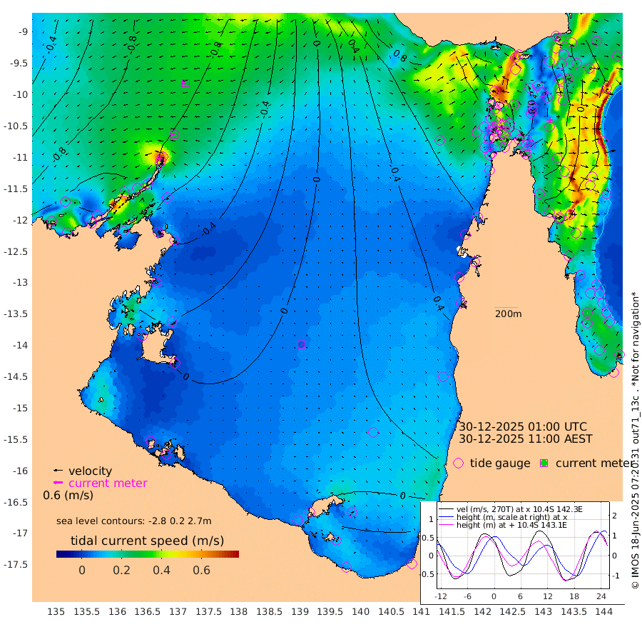 27cm/s -87T +3cm/s rms + 7cm/s -42T. ARA-GOC87 57m 3cm/s 127T +3cm/s rms + 2cm/s -2T. ARA-GOC87 60m 28cm/s -98T +2cm/s rms + 3cm/s 61T. ARA-GOC87 47m 36cm Daru 26cm Bobo Island -16cm Meer Island Barge -6cm Bramble Cay 23cm Unnamed Cay 17cm Pearce Cay 7cm Stephens Island 16cm Merrie England Shoals 44cm Mutacomal Reef 2cm Darnley Island Barge -14cm East Cay 21cm Yorke Island Barge 33cm Rennel Island 31cm Aureed Island 53cm Dungeness Reef 78cm Zagai Island 81cm Yam Island 96cm Dauan Island 95cm Saibai Island 98cm Phipi Reef 79cm Warrior Reef - West 108cm Mabuiag Island Barge 26cm Half Way Island 57cm Coconut Island 43cm Dugong Islet 72cm Poll Island 65cm Kirkcaldie Reef 116cm Suarji Island 72cm Sue Islet 110cm Hawkesbury Island 112cm Alert Patches 102cm Twin Island 109cm Badu Island 108cm St Pauls (Moa Island) 101cm Kubin (Moa Island) 108cm Ince Point 111cm Thursday Island 111cm Nardana Patches 110cm Turtle Head 117cm Round Island 106cm Goods Island 111cm Booby Island 115cm White Rocks Area 105cm Carpentaria 90cm Papou Point 142cm Bampfield Head 84cm Crab Island 108cm Red Wallis Island 104cm Packe Island 54cm Harrington Reef 120cm Herald Camp 33cm Sharp Point 90cm Red Island Point 110cm Possession Island 91cm Alpha Rock 80cm Frederick Point 52cm Wyborn Reef Light 60cm Tetley Island 6cm Triangle Reef 42cm Turtle Head Island -3cm Maclennan Cay -18cm Raine Island 19cm Mcsweeny Reef 14cm Collette Reef -4cm Shadwell Reef 9cm Hannibal Island -3cm Round Point 74cm Vrilya Point 0cm Cape Grenville -8cm Hicks Island -2cm Sir Charles Hardy Island -2cm Harvey Island -10cm Kay Reef -15cm Rocky Island -13cm Chapman Island -15cm Ham Reef -18cm Jubilee Reef -14cm Night Island -15cm Unnamed Reef No. 3 -18cm Morris Island -12cm 1st 3 Mile Opening -16cm Creech Reef -27cm Fife Island -32cm Eden Reef -19cm Stanley Island -28cm Normanby River -107cm Yabooma Island -125cm Hutchison River -112cm Elcho Island -109cm North West Crocodile Island -83cm Cape Wessel -110cm Stevens Island -97cm Guluwuru Island -97cm Hopeful Bay -85cm Auster Point -105cm Two Island Bay -153cm Cadell Strait -154cm Mallison Island -83cm Melville Bay (Gove Harbour) -84cm Truant Island -55cm Cape Arnhem -35cm Cape Grey -24cm Hawk Island -12cm Milner Bay (Groote Eylandt) -10cm Cape Beatrice 14cm West Island 22cm Centre Island -4cm Mornington Island 3cm West Wellesley Islands -6cm Bountiful Island -39cm Albert River Mouth -38cm Sweers Island -31cm Karumba -2cm Nassau River Offshore 17cm Christmas Creek 34cm Archer River 50cm Boyd Point 50cm Weipa (Humbug Point) 44cm Pennefather River 74cm Cullen Point